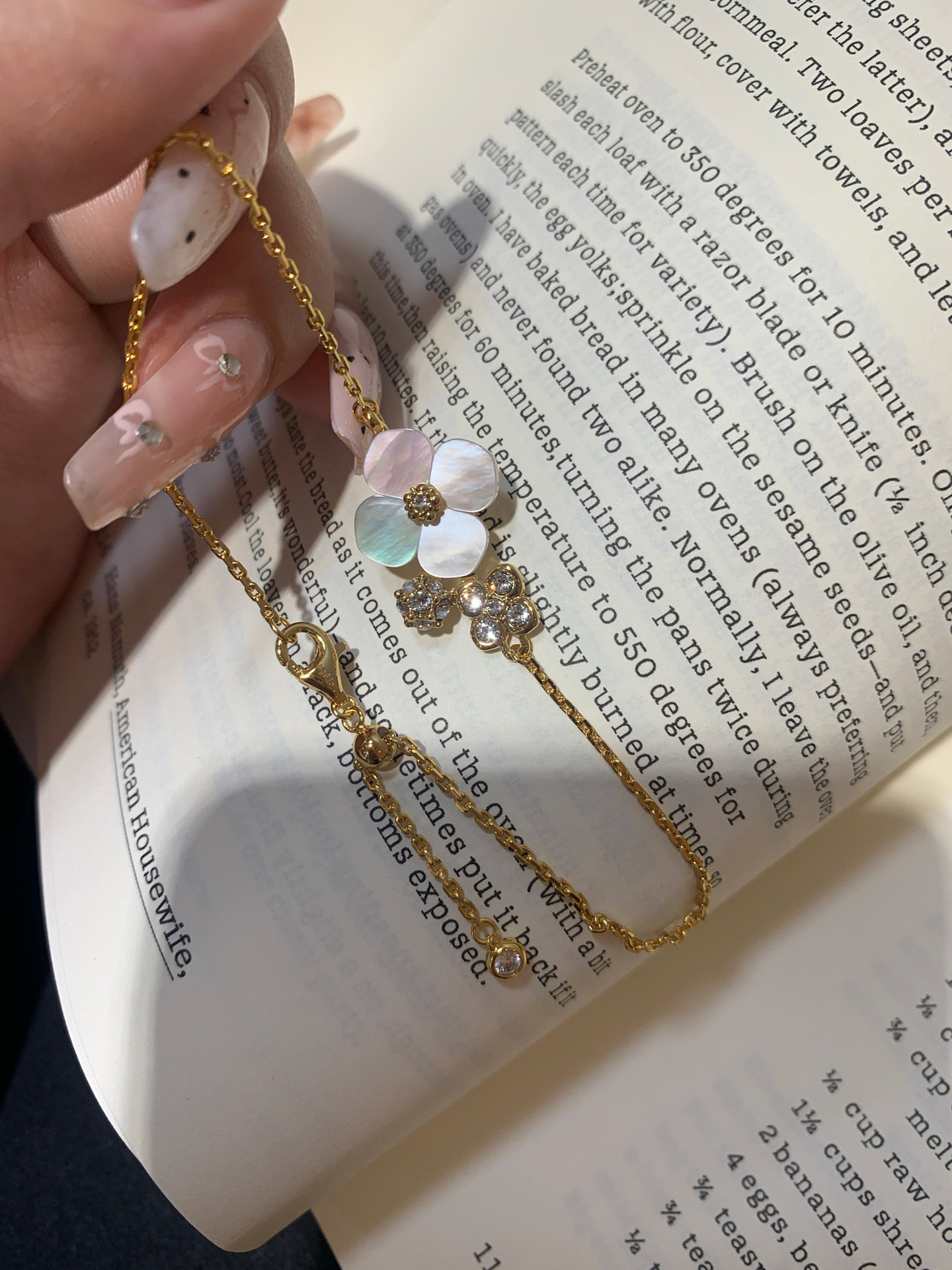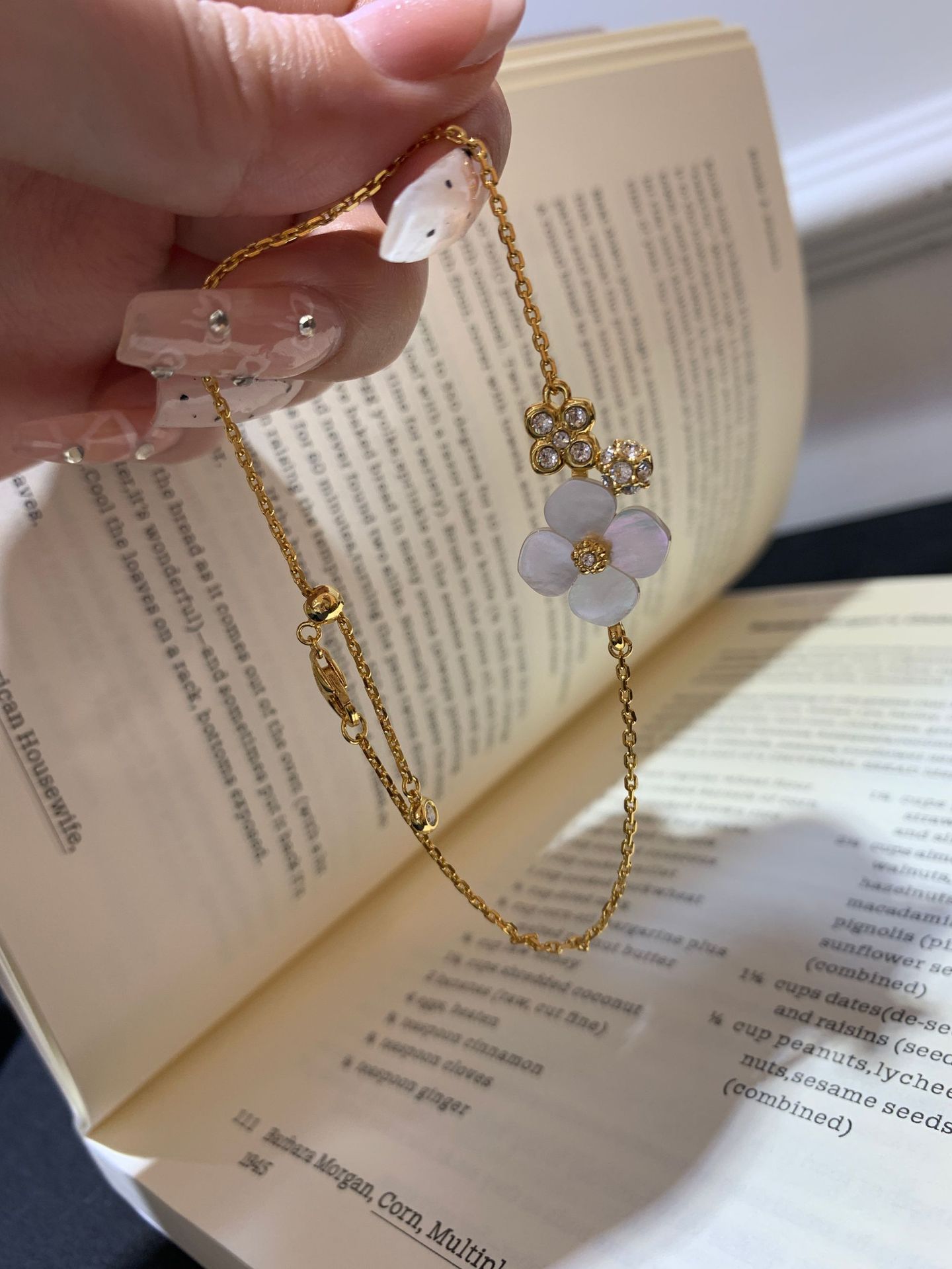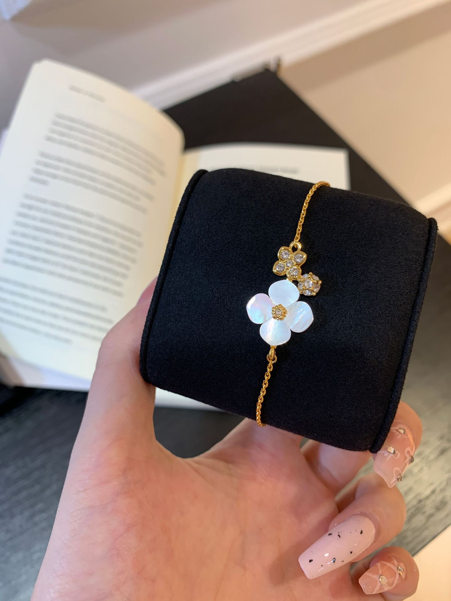 Live broadcast explosive natural white shell flower bracelet Seiko shell four-petal flower explosion flash point diamond stacking to wear versatile hand jewelry