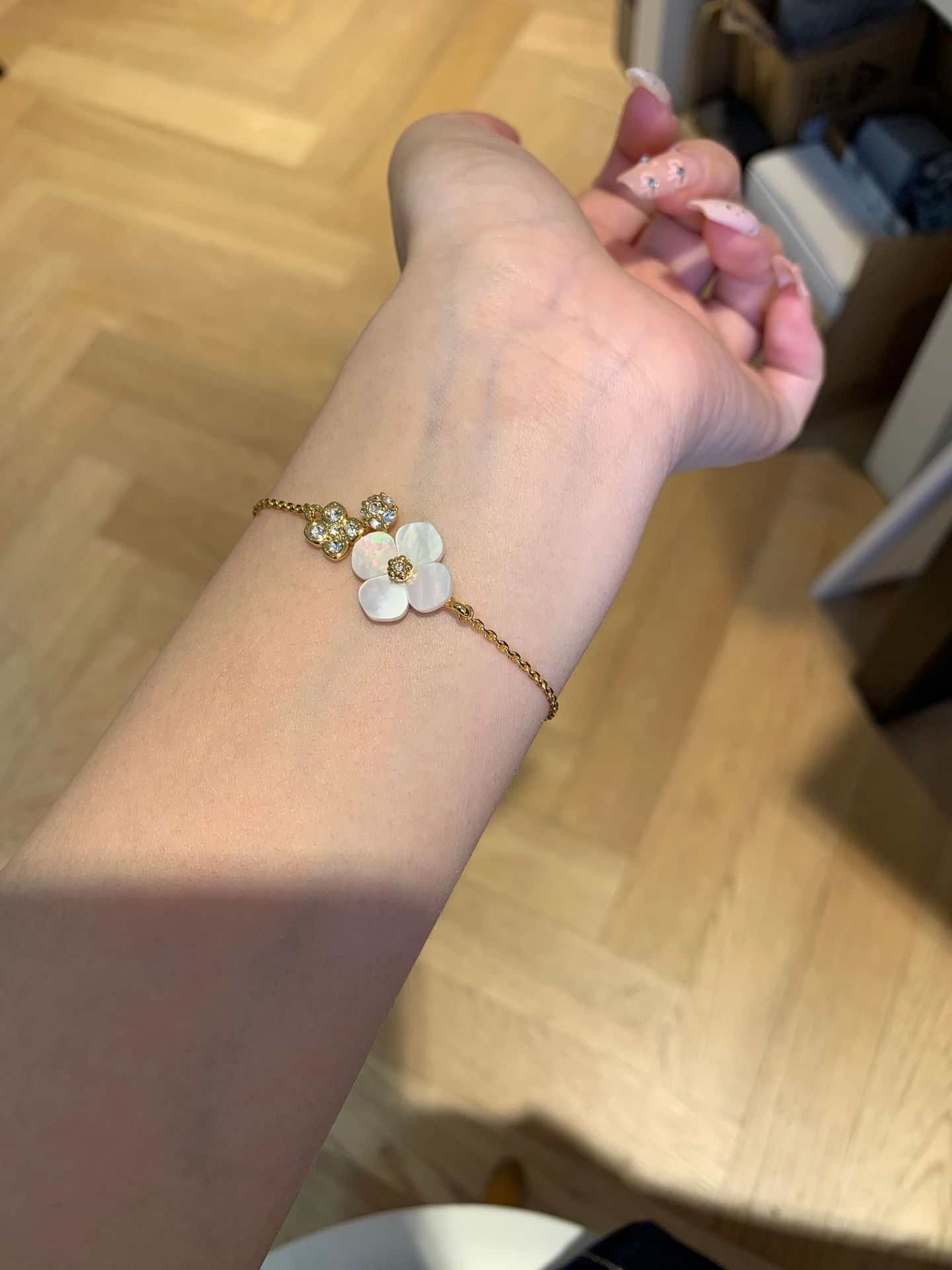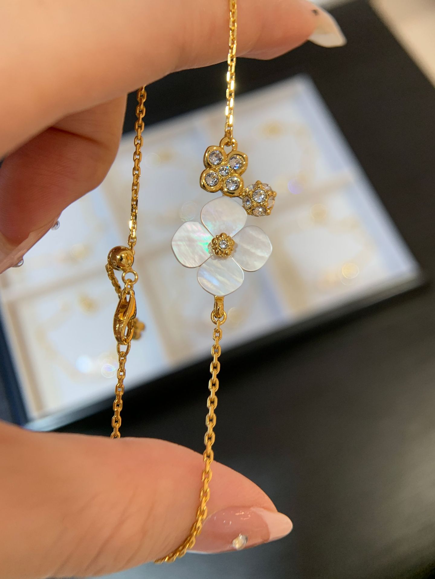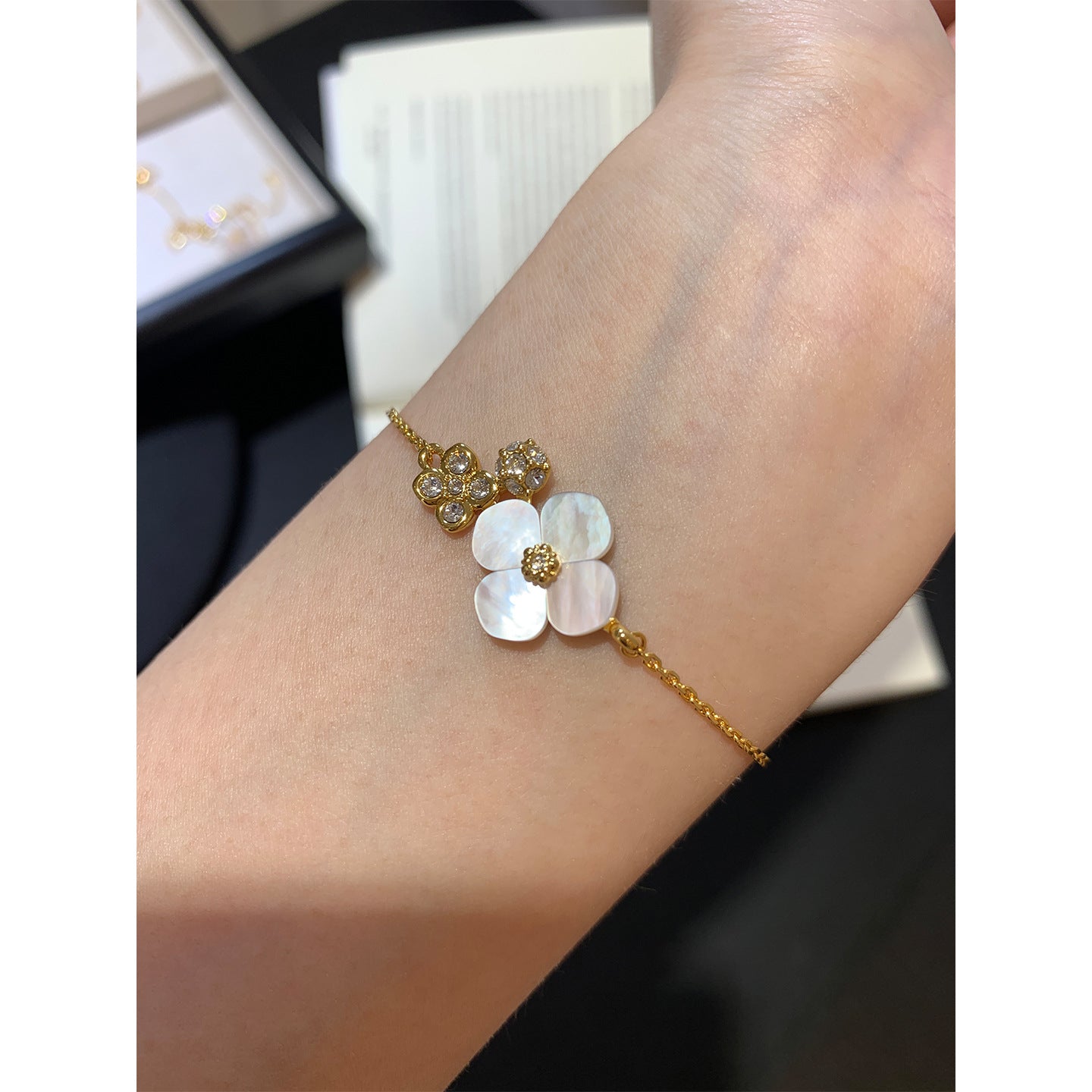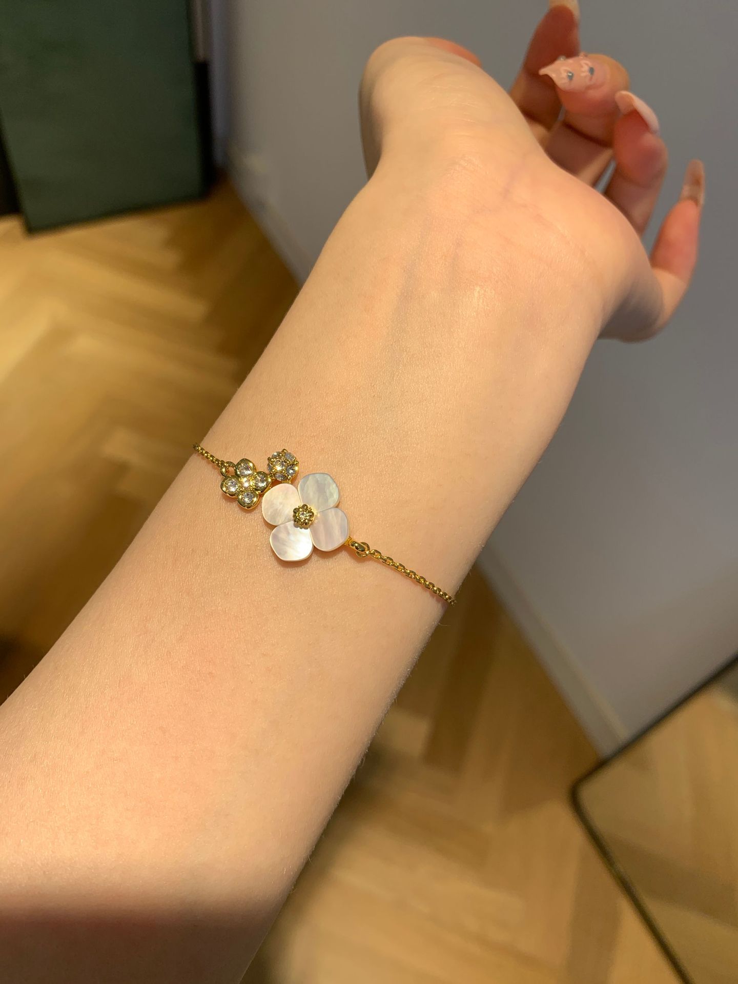Live broadcast explosive natural white shell flower bracelet Seiko shell four-petal flower explosion flash point diamond stacking to wear versatile hand jewelry