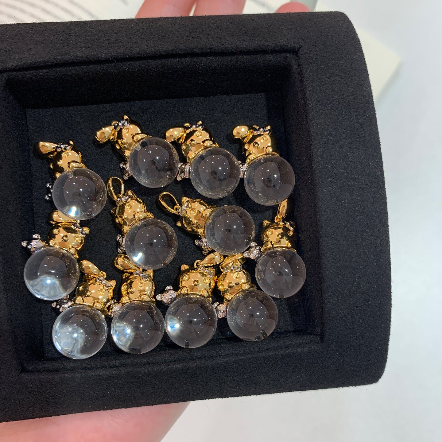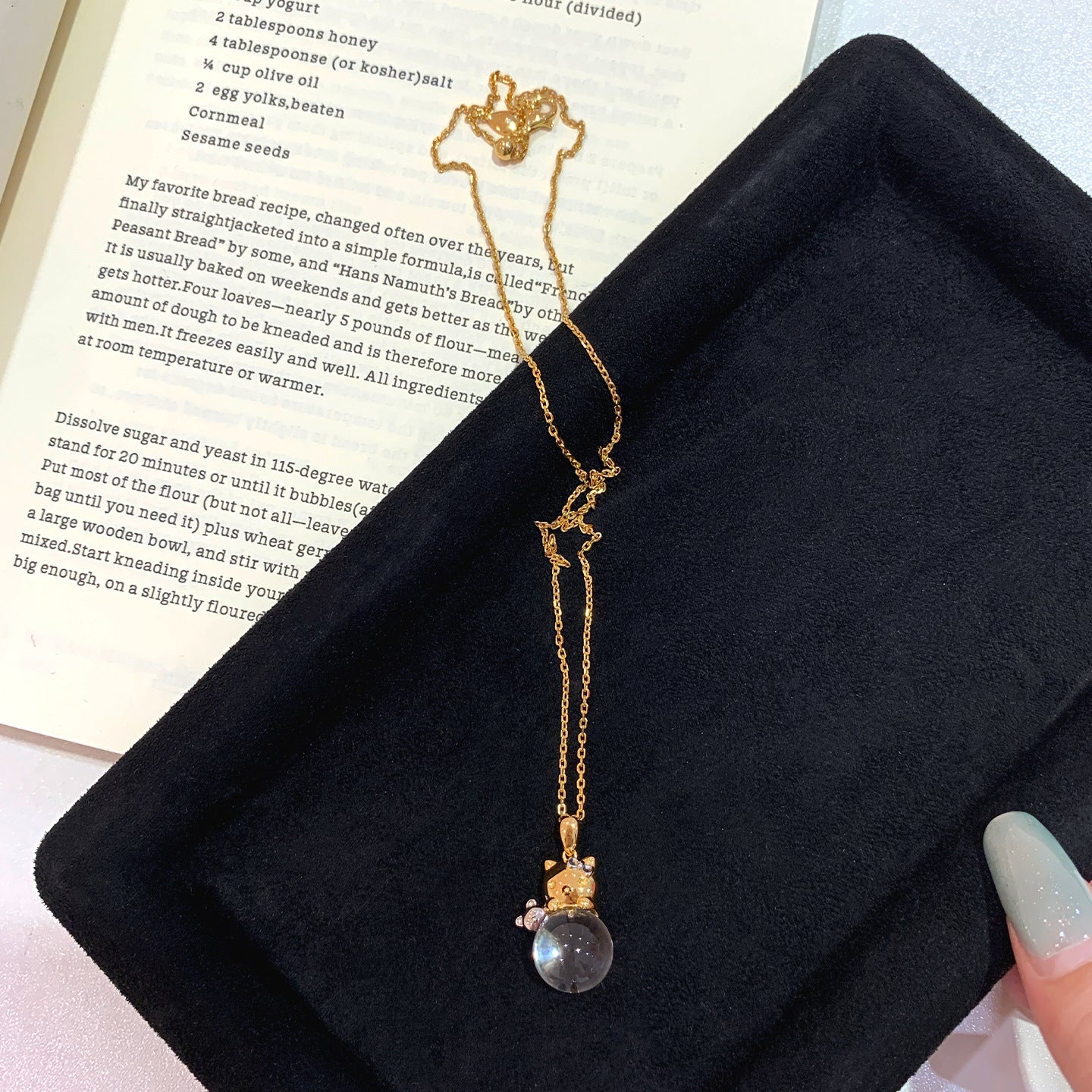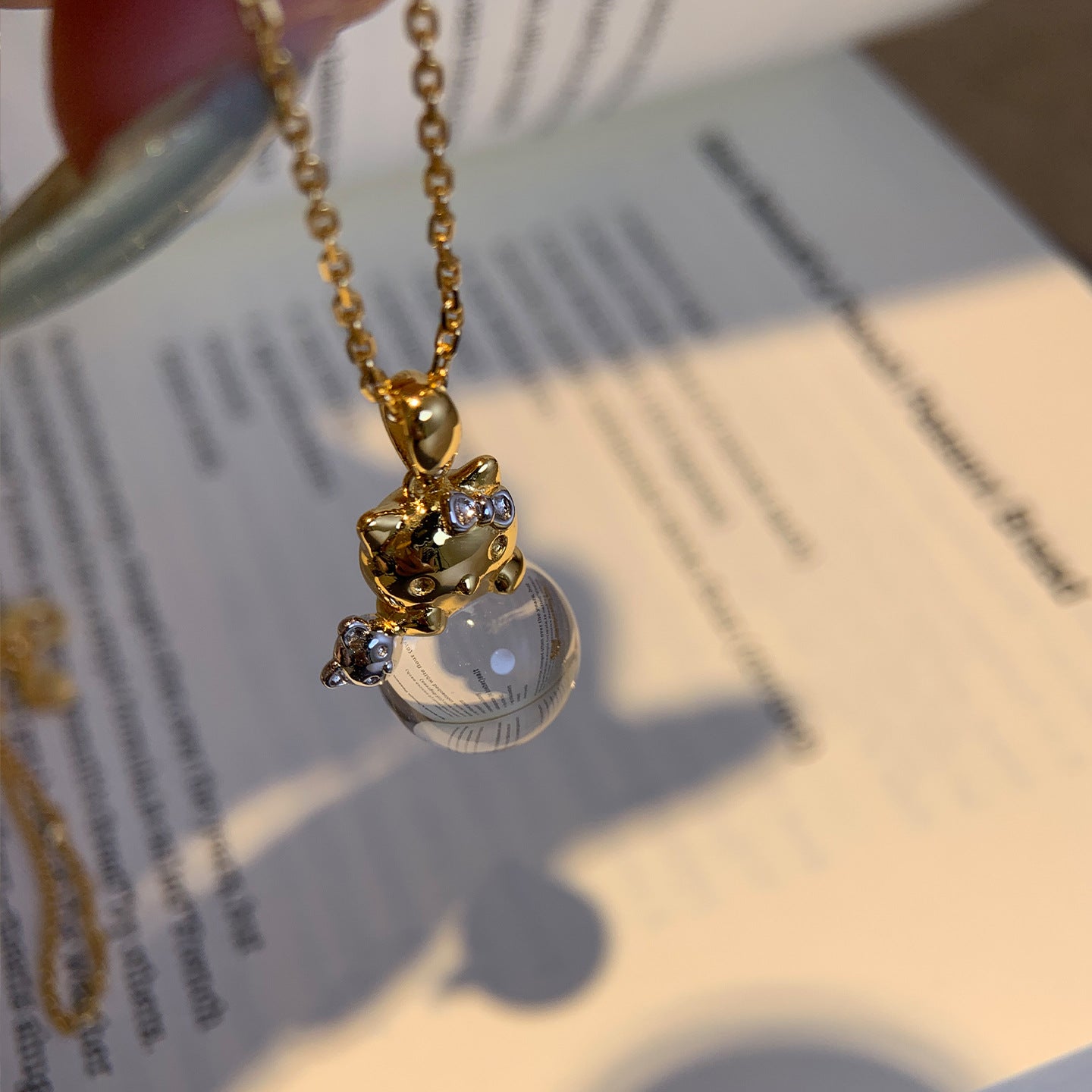 Live broadcast hit 12MM white crystal kitten necklace 925 silver net body small light bulb pendant versatile high-end necklace