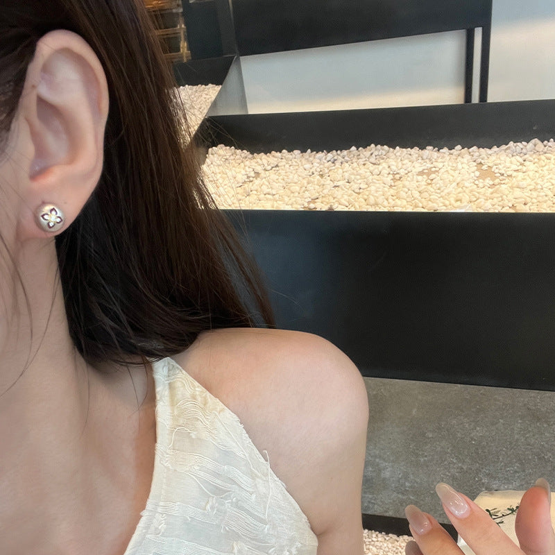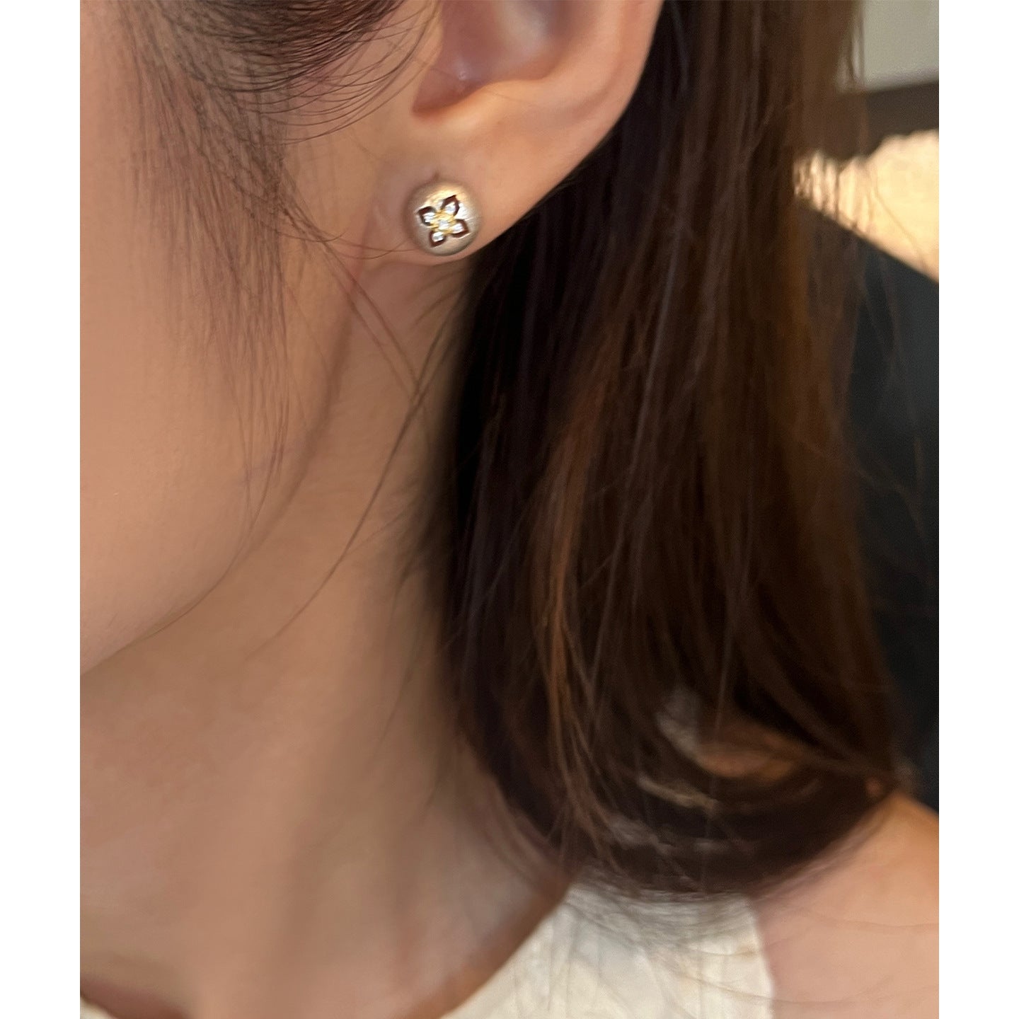 Live broadcast hit Italian brushed technology, sterling silver 18K gold, delicate adzuki bean earrings, four-leaf clover hollow earrings