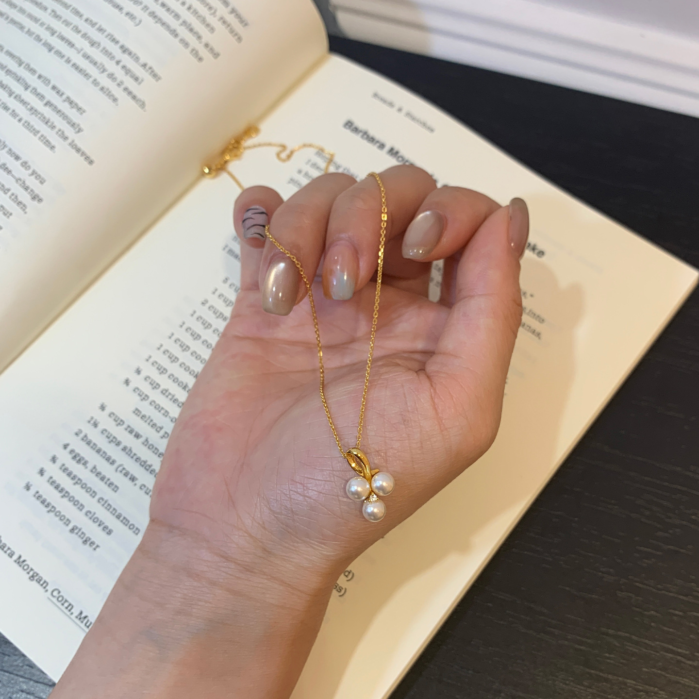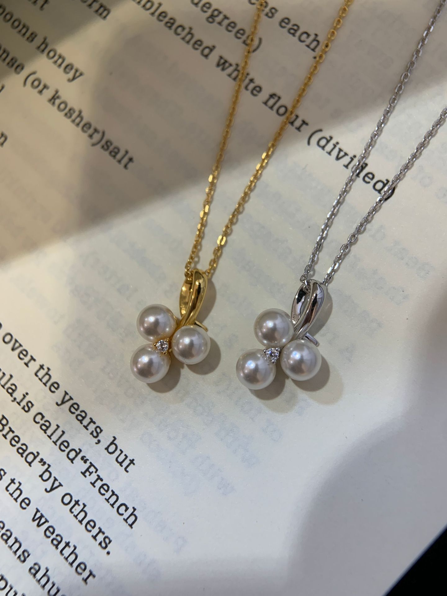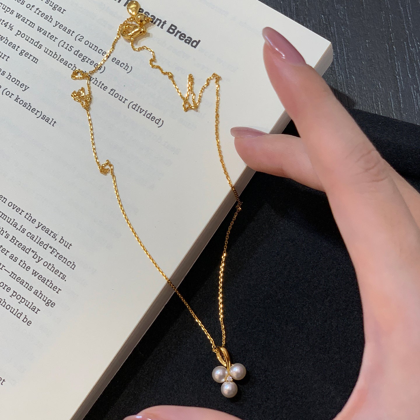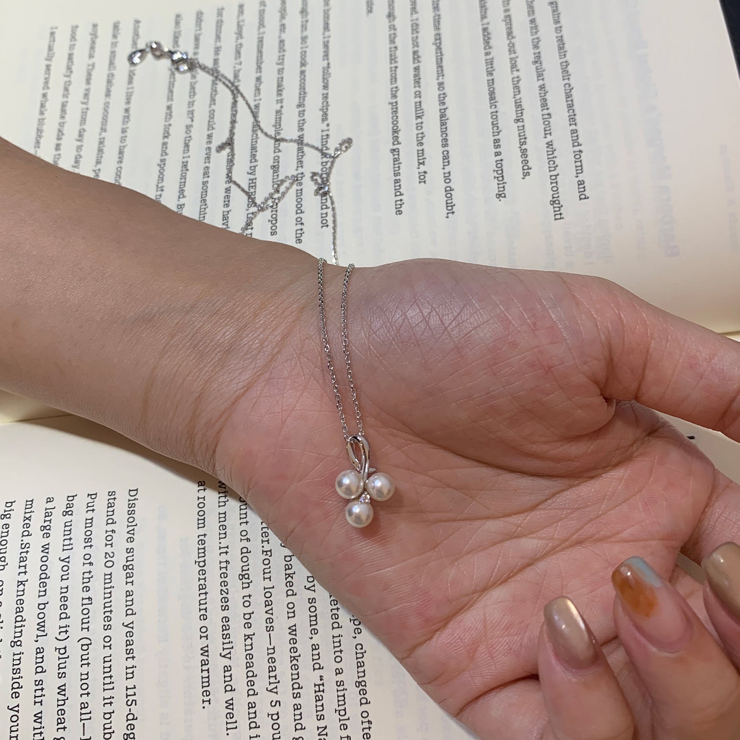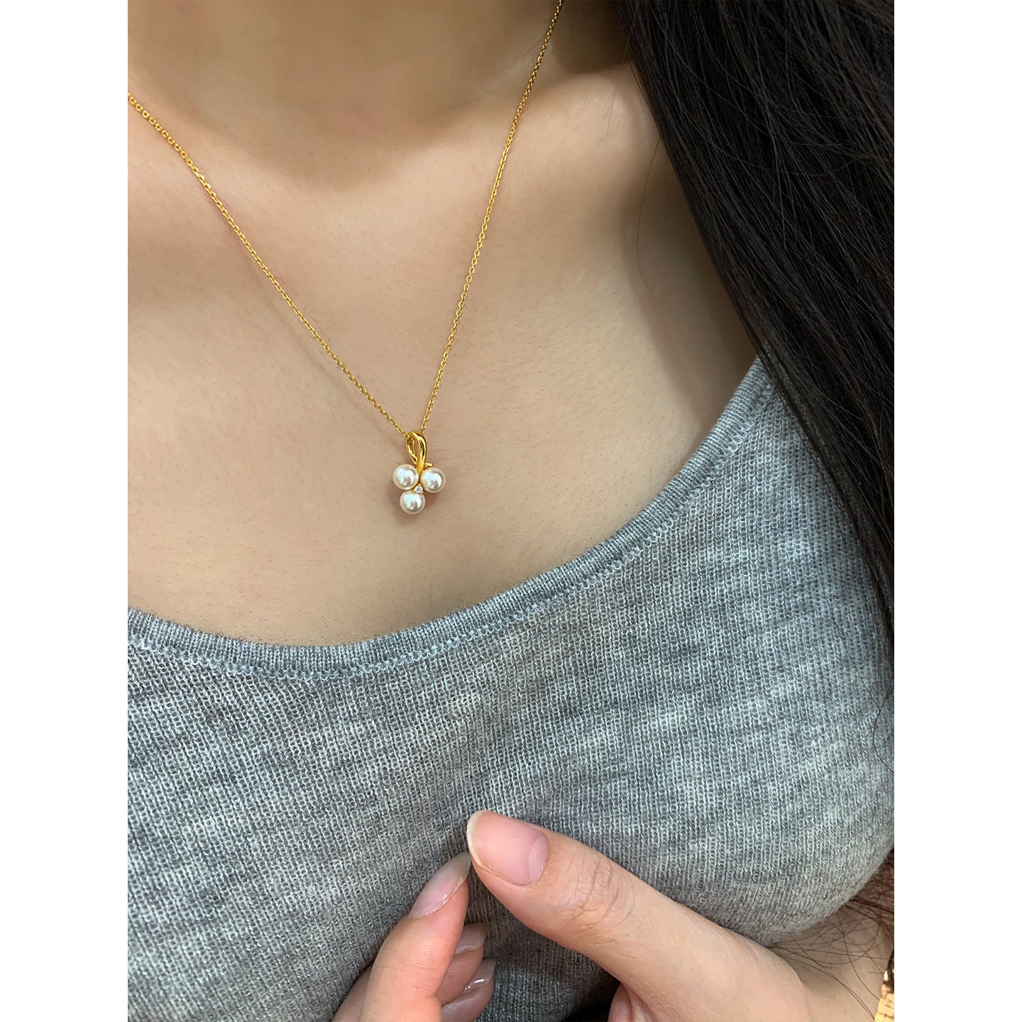 Live broadcast hit three-bead grape necklace 925 silver Seiko Shijia pearl diamond pendant simple high-end necklace