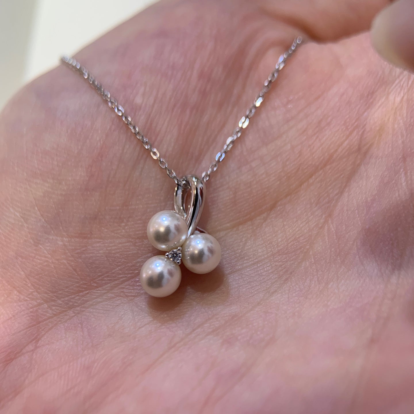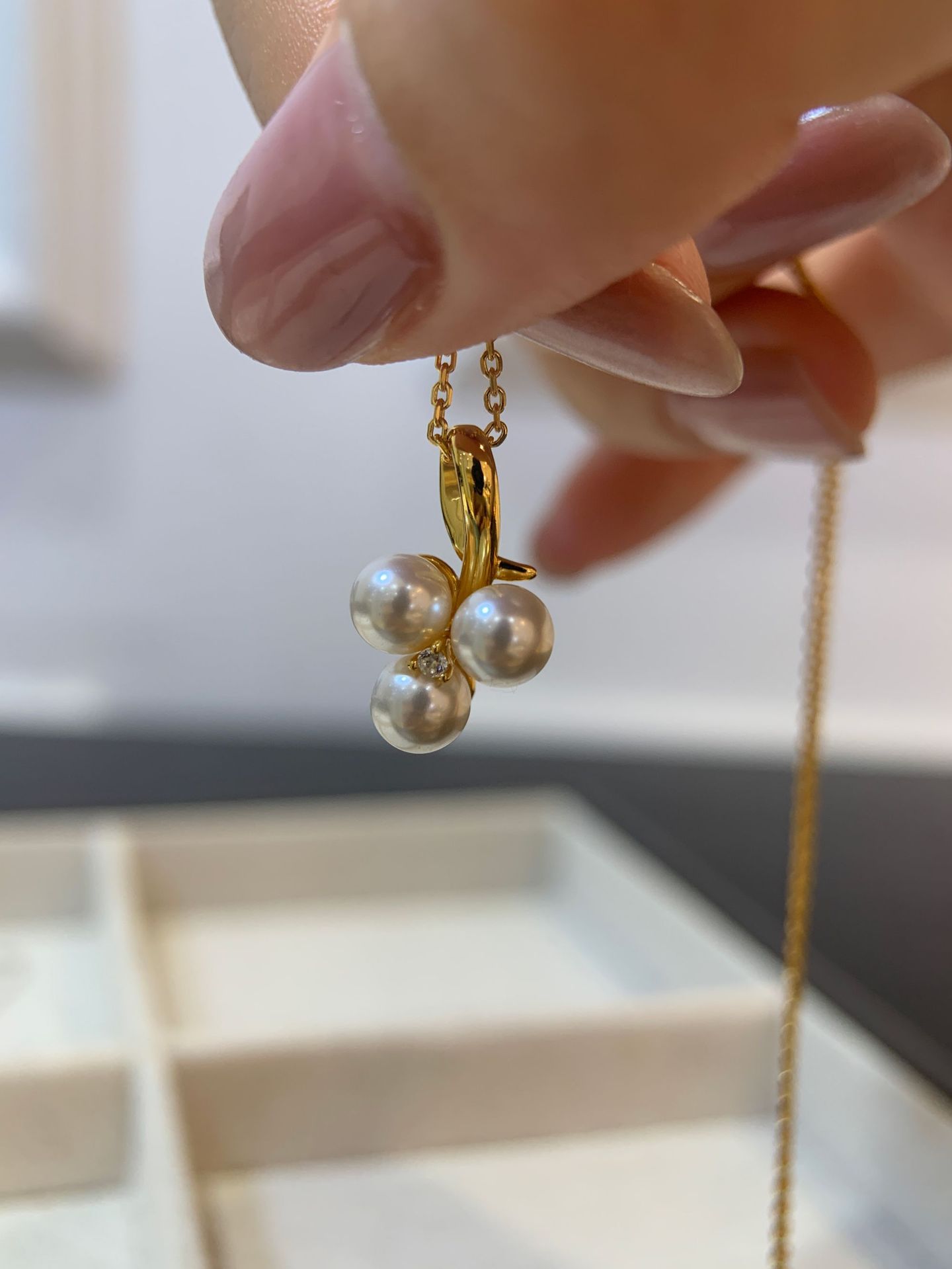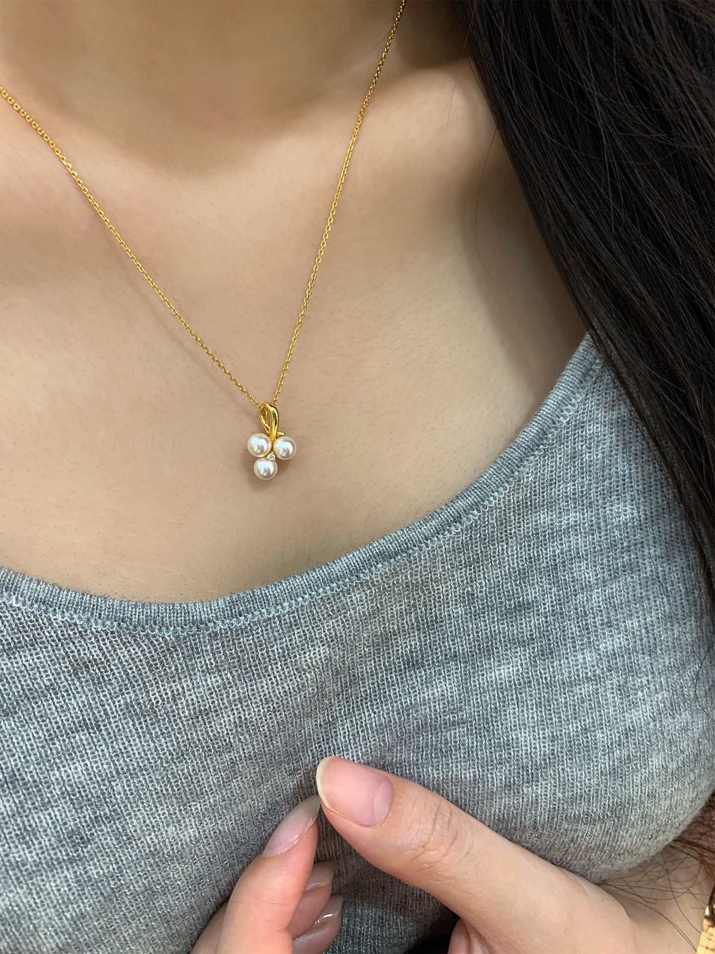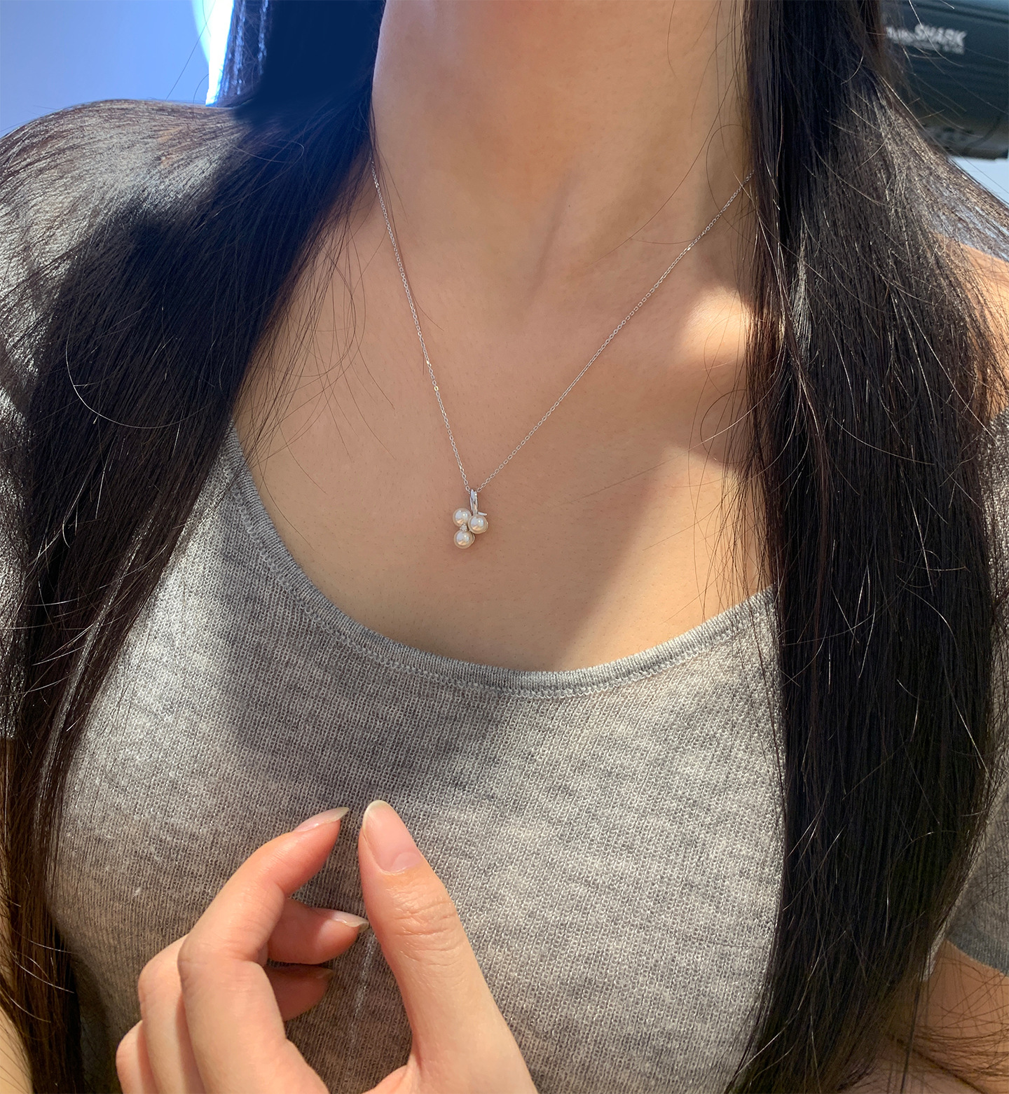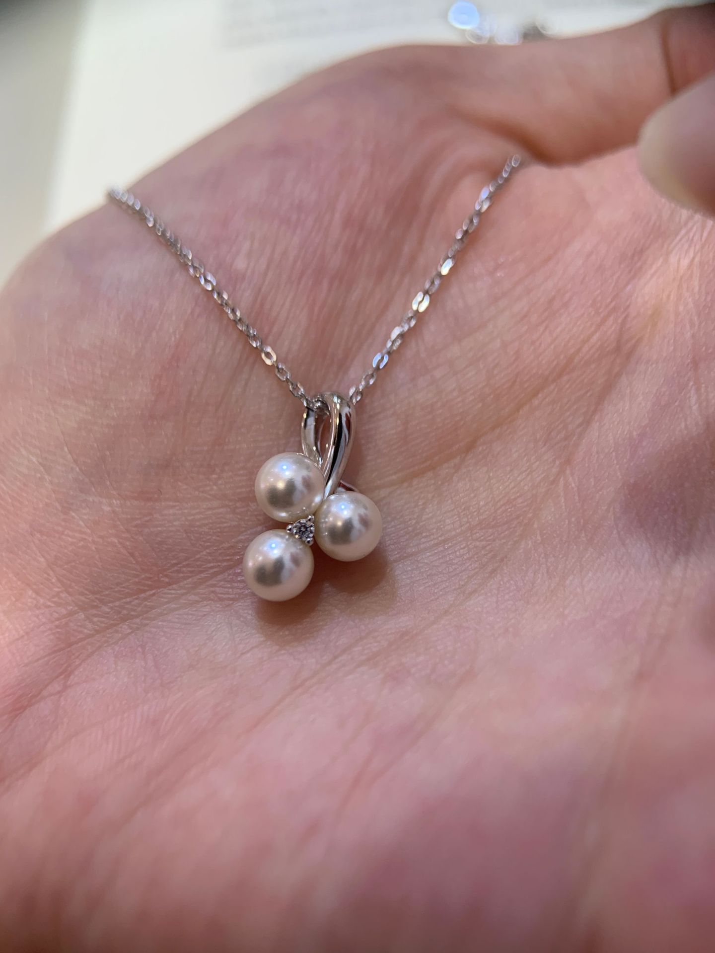 Live broadcast hit three-bead grape necklace 925 silver Seiko Shijia pearl diamond pendant simple high-end necklace