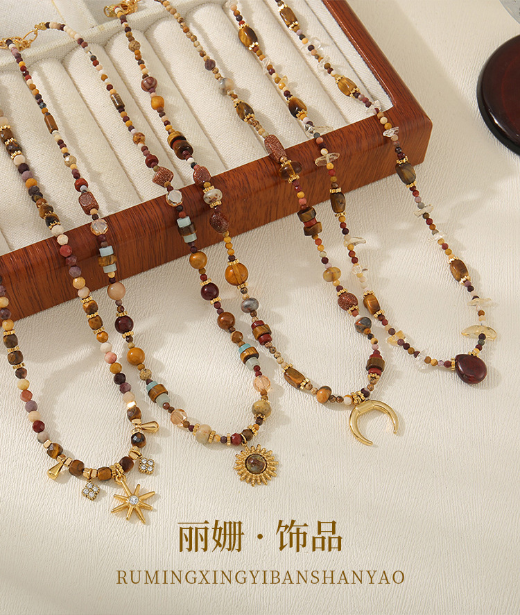 Maillard handmade old money wind tiger's eye stone beaded necklace high-end light luxury original design autumn and winter sweater chain