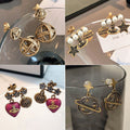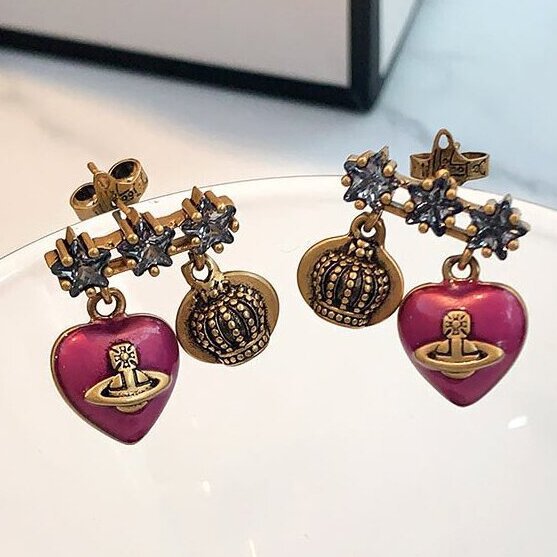 Medieval matte vintage brass star stud earrings retro premium feeling enamel drip Saturn pendant earrings women