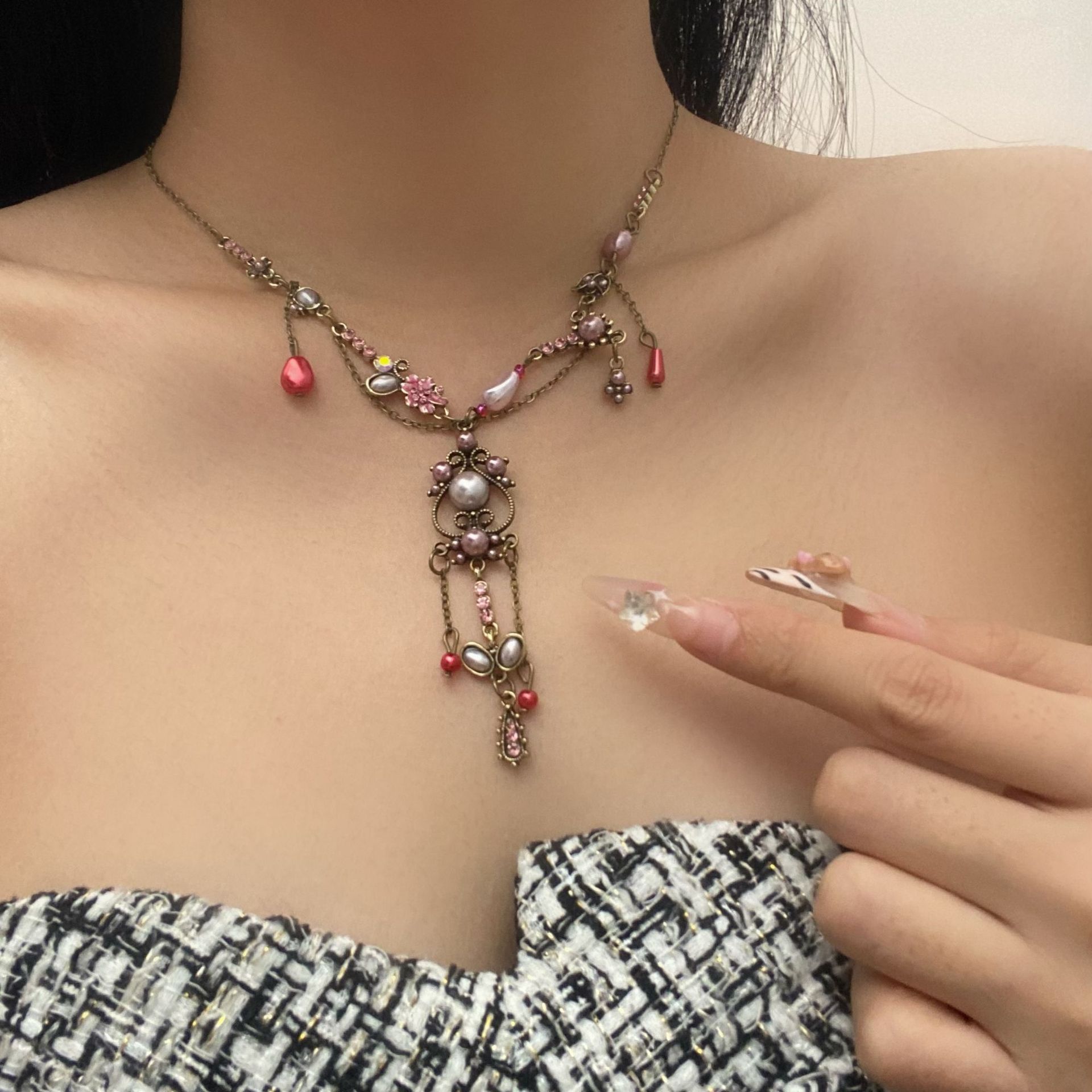 Medieval retro necklace, women's light luxury temperament, advanced design sense, collarbone chain, niche elegance, super fairy exquisite neck chain