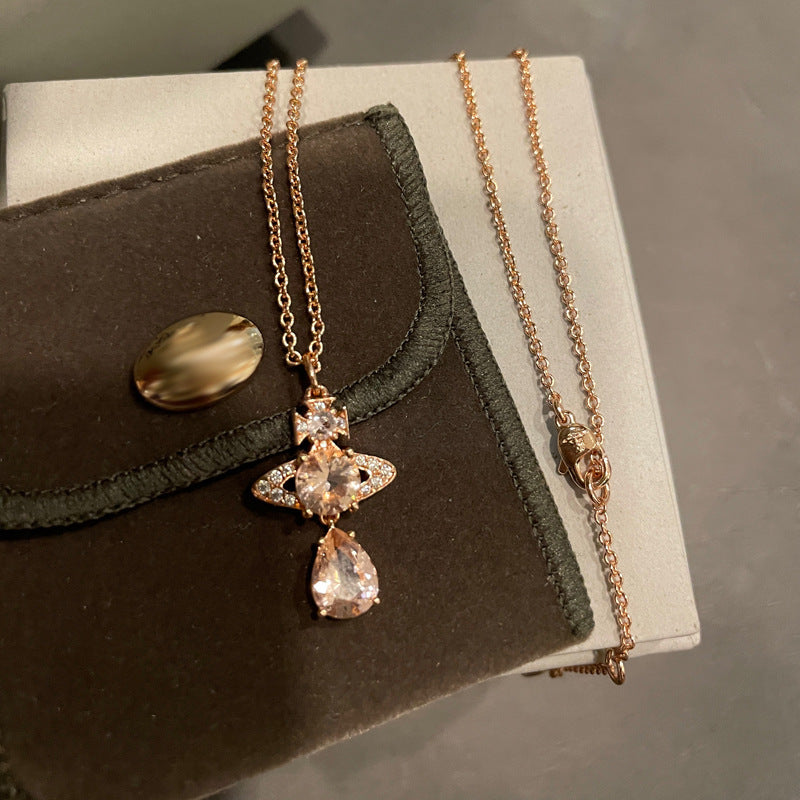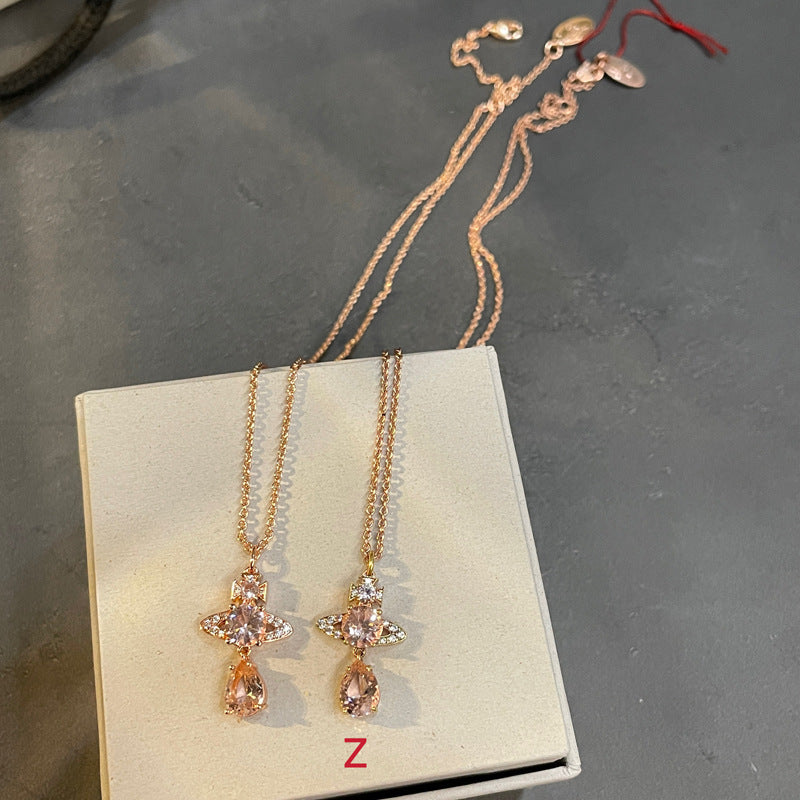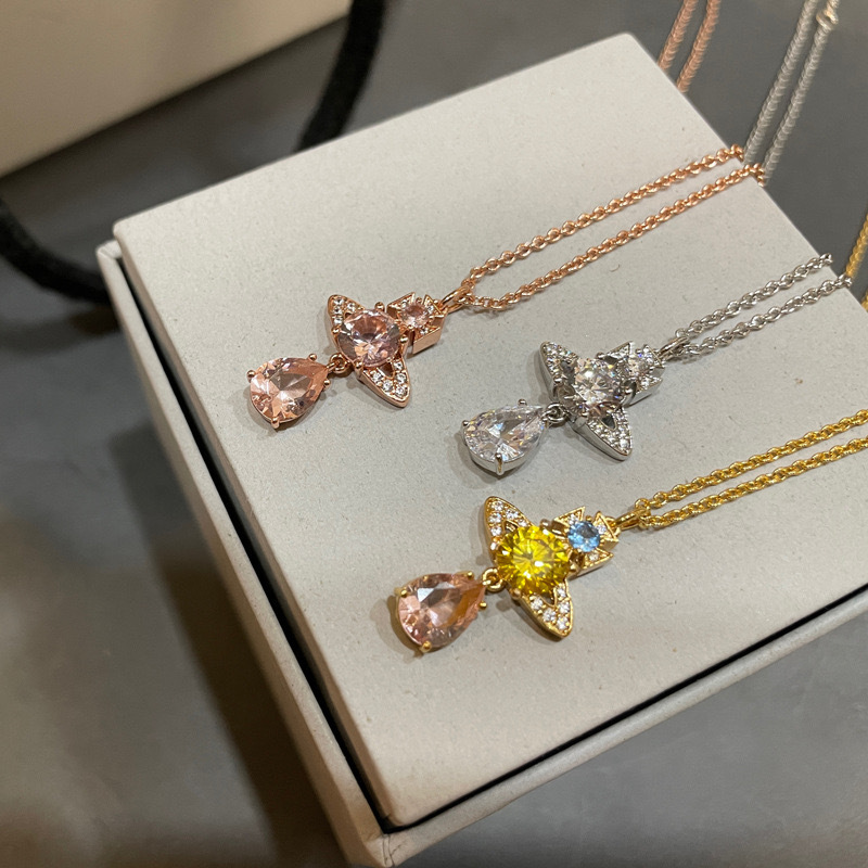 Multi-color Western Queen Mother, mermaid tears, drop diamond necklace, Seiko thick gold, small sweet potato, live broadcast hit