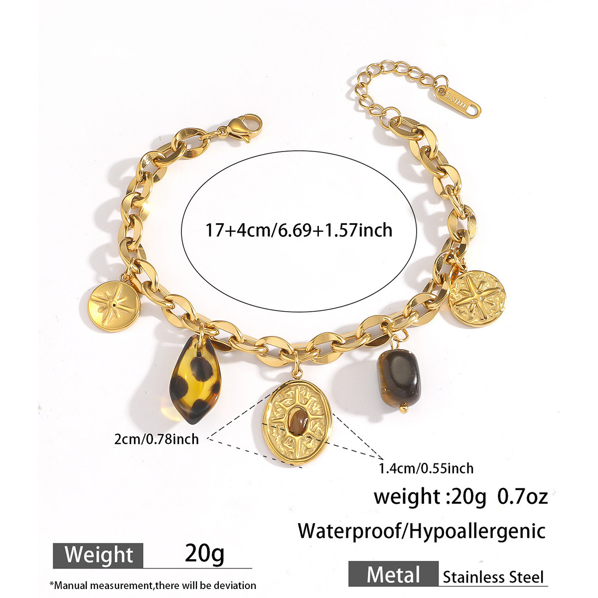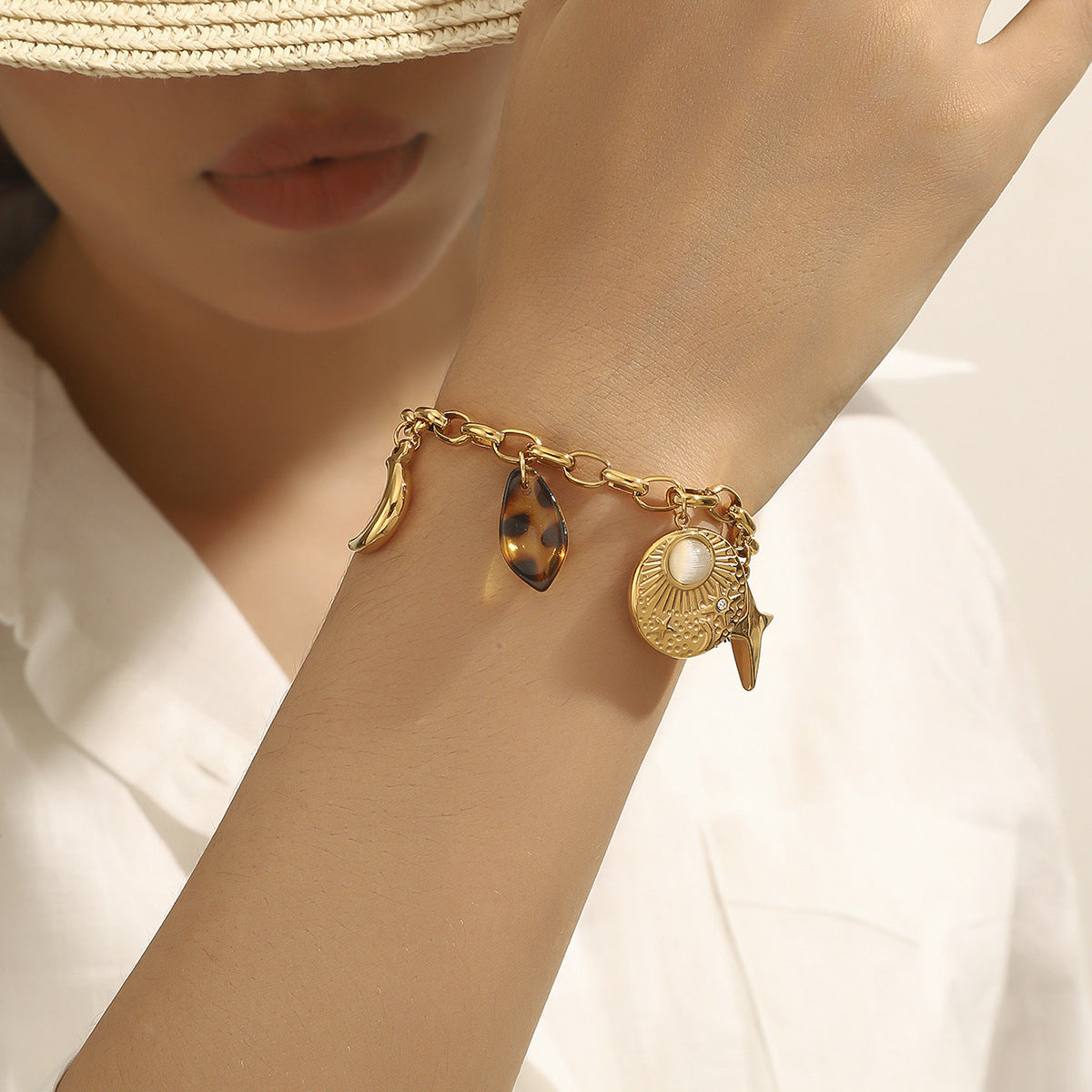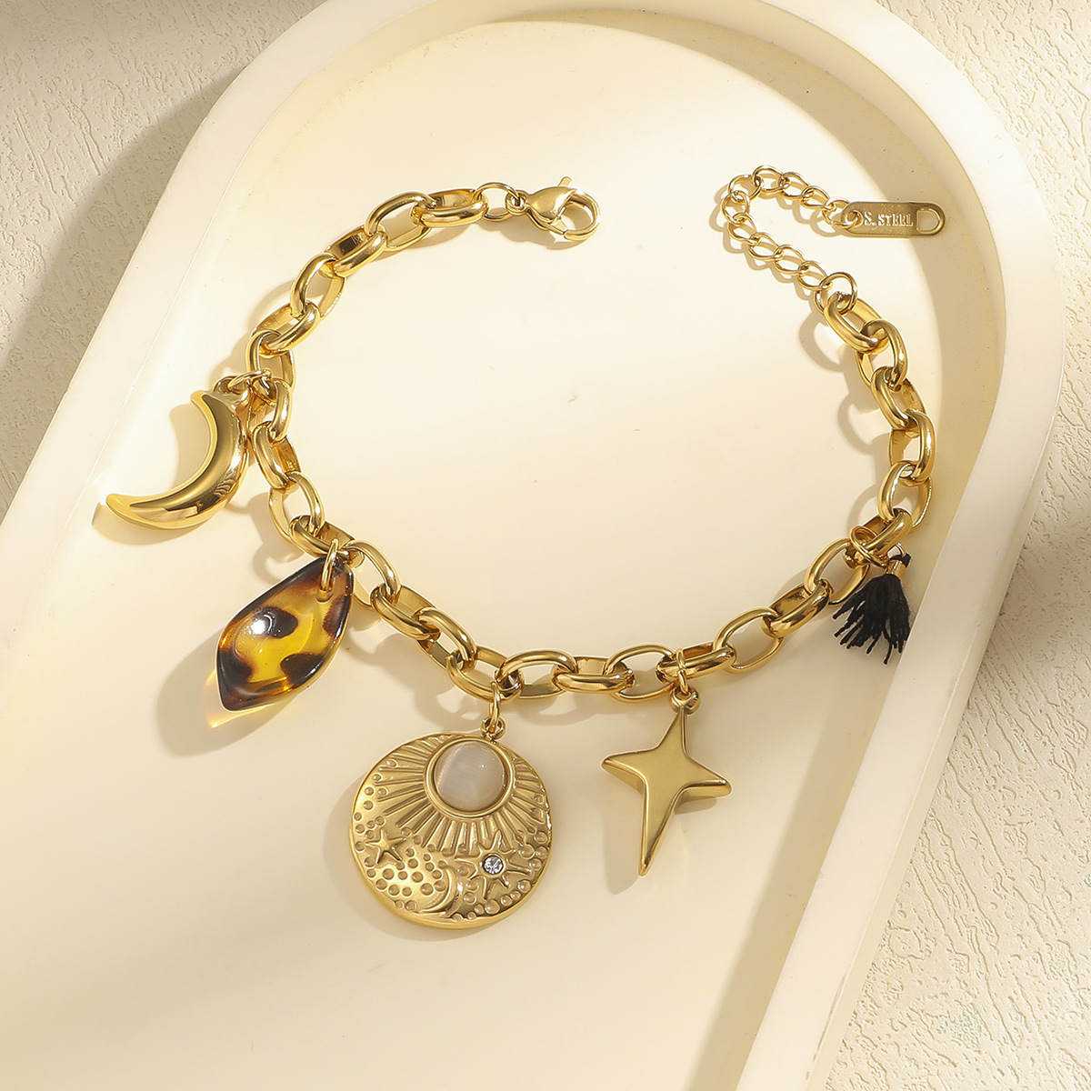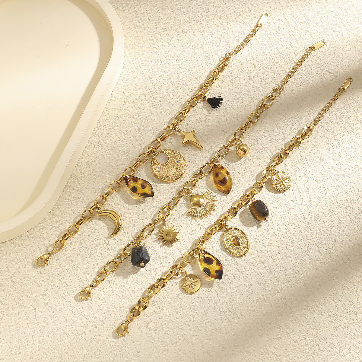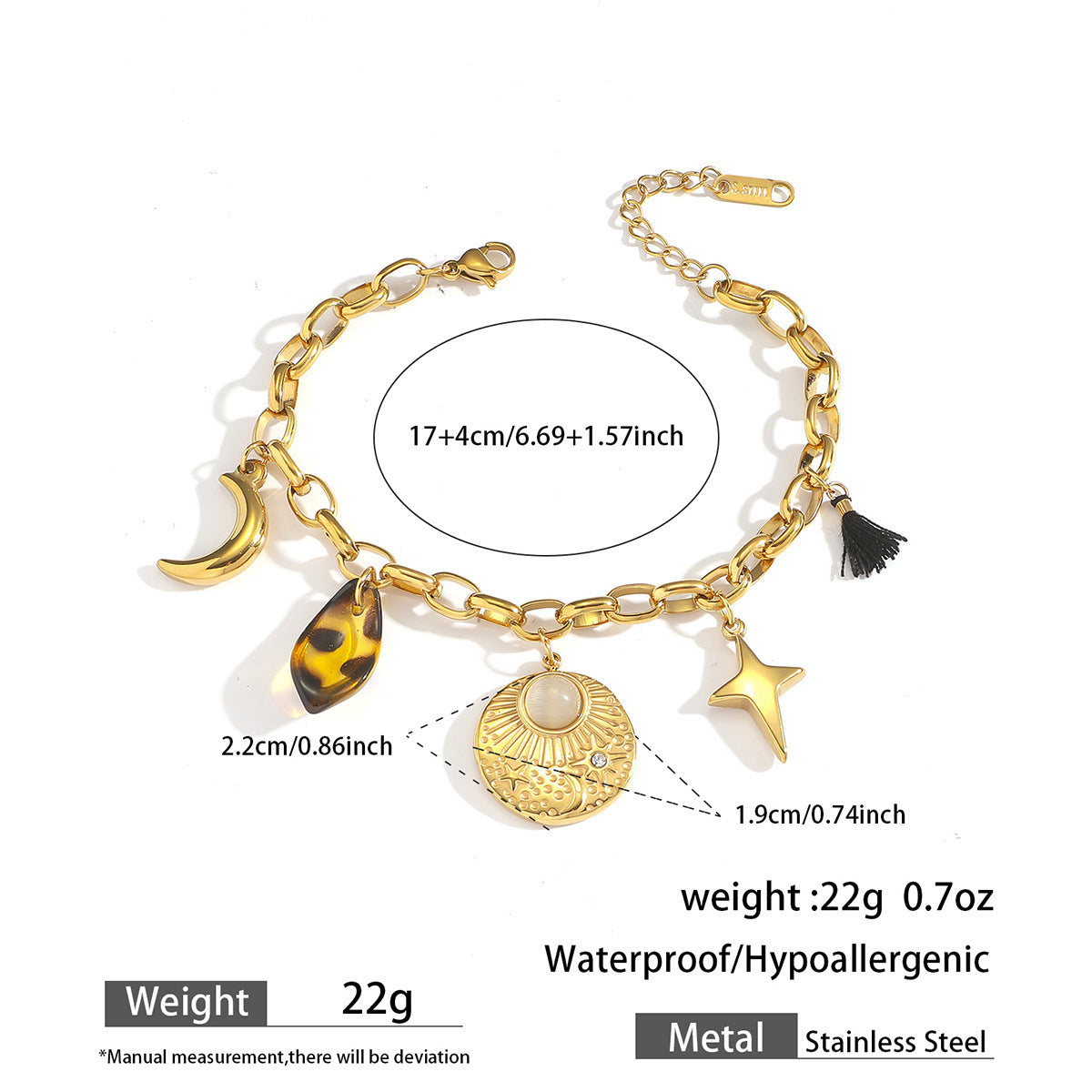 MYYA European and American stainless steel leopard print amber round brand star moon pendant bracelet women's bracelet bohemian jewelry
