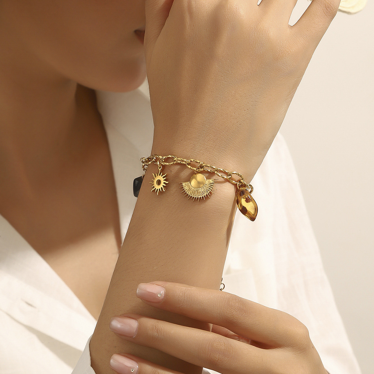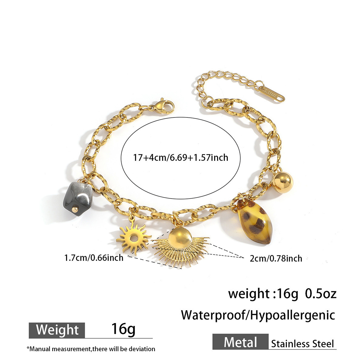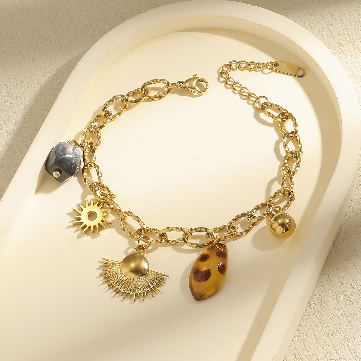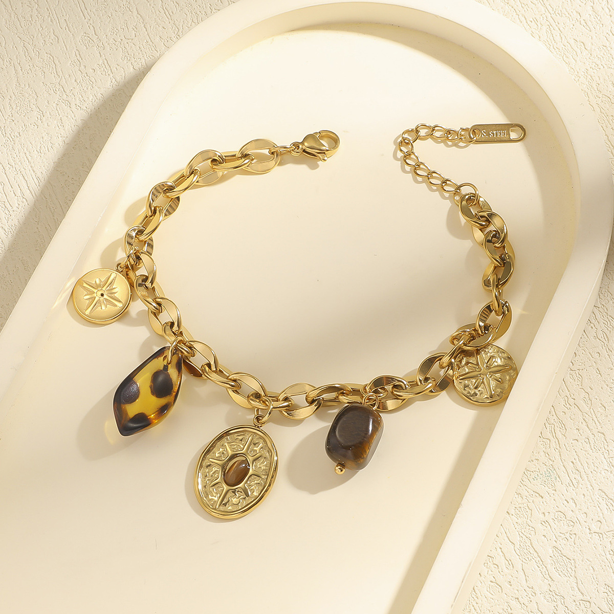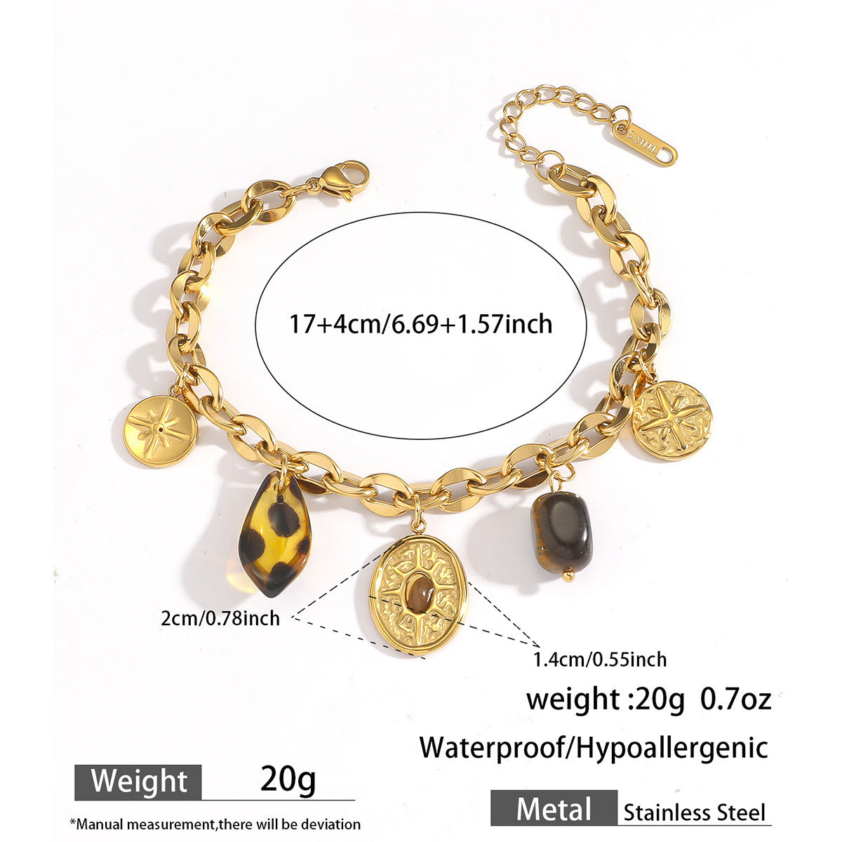 MYYA European and American stainless steel leopard print amber round brand star moon pendant bracelet women's bracelet bohemian jewelry