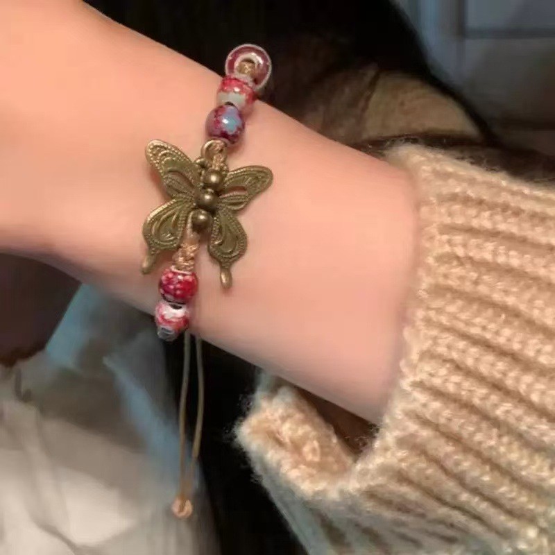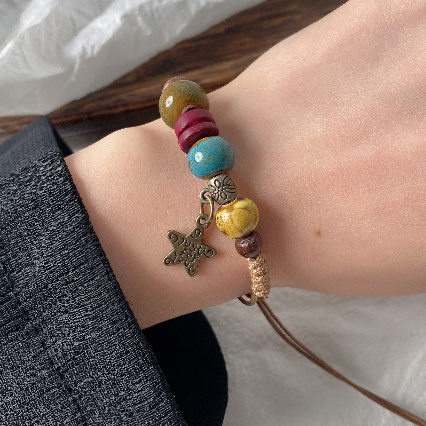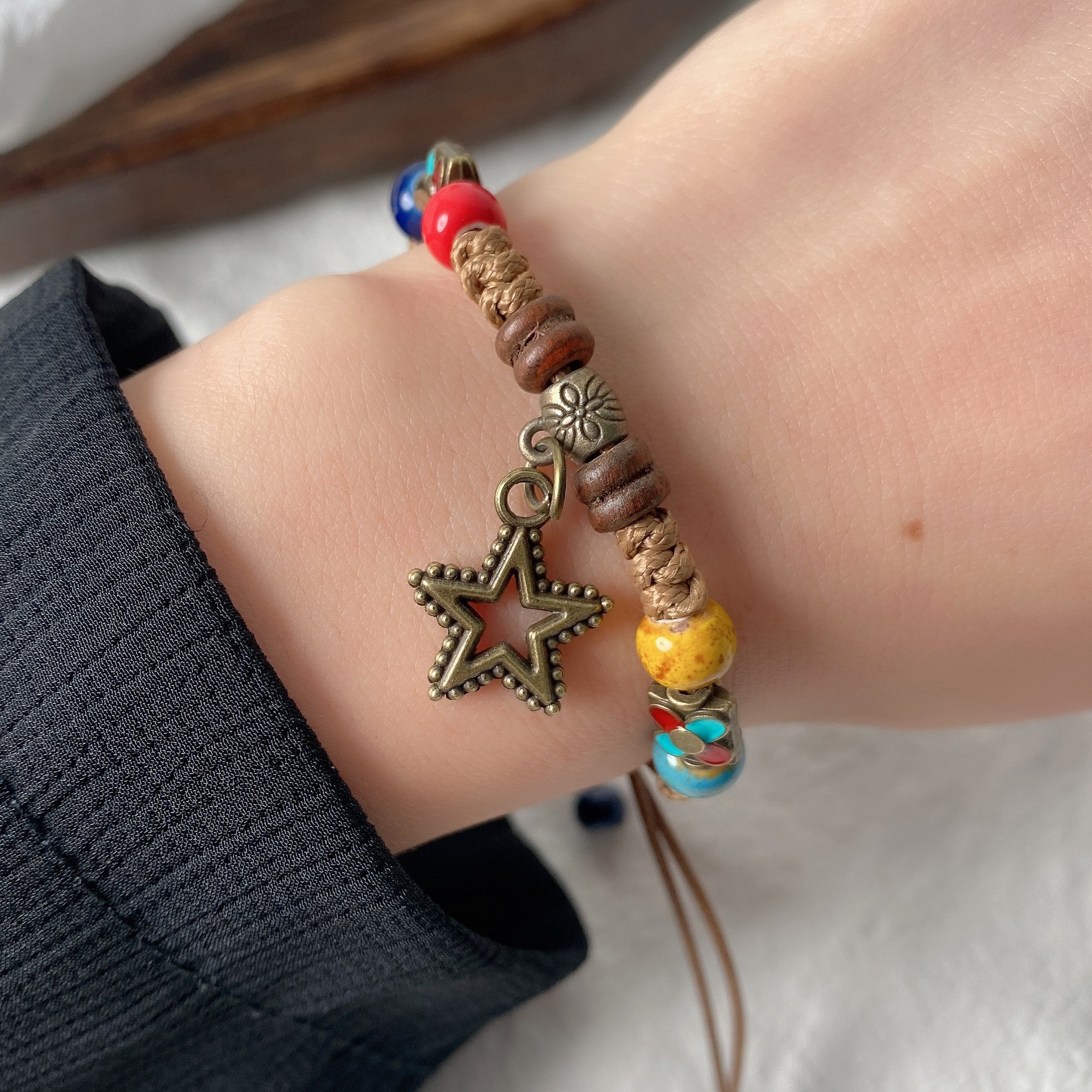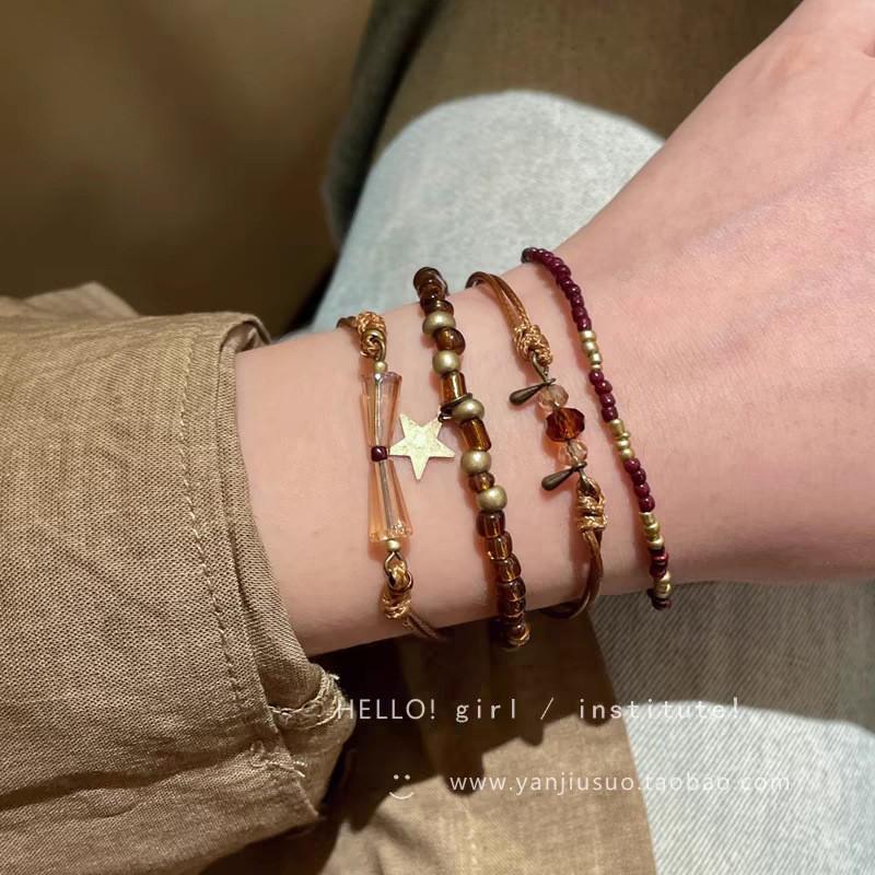 ethnic style bracelet, ancient style beaded explosive bracelet, niche design, personalized stacking and wearing jewelry accessories