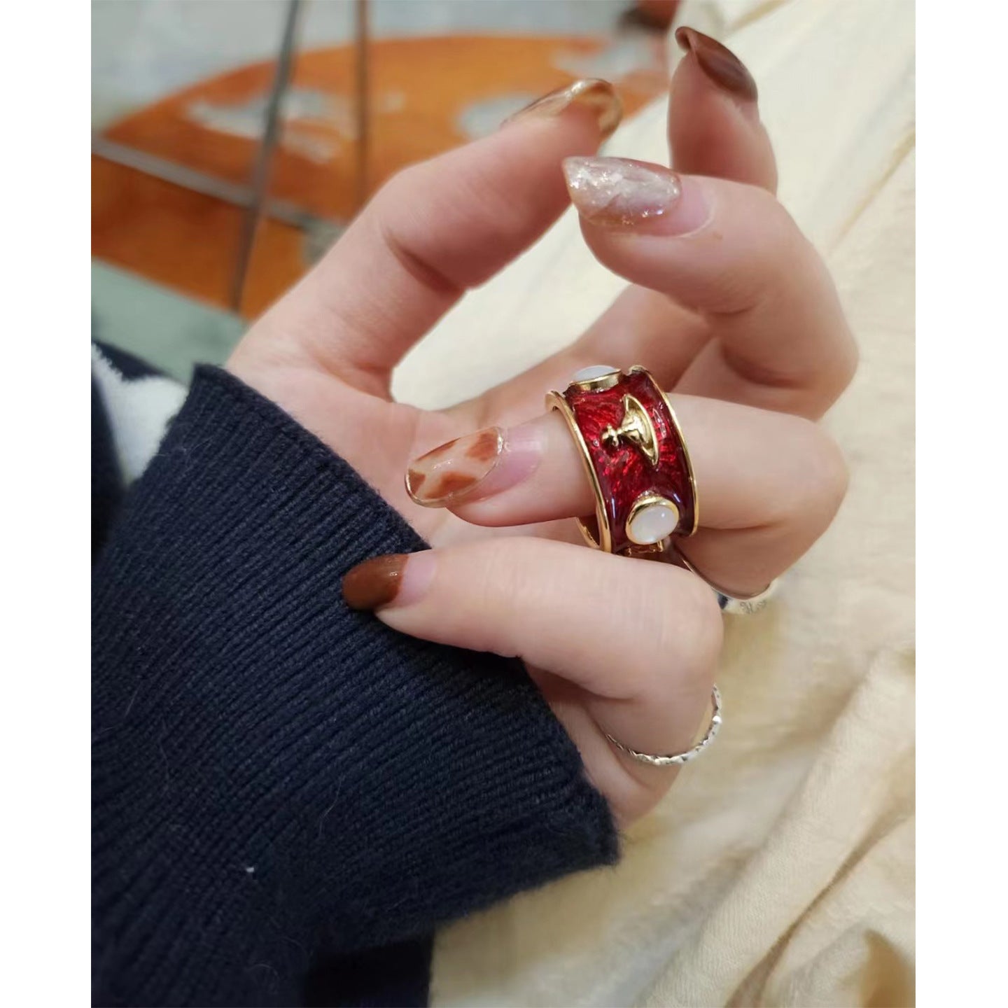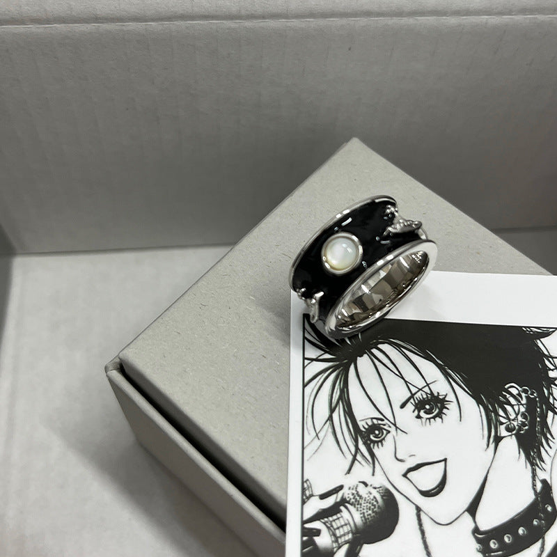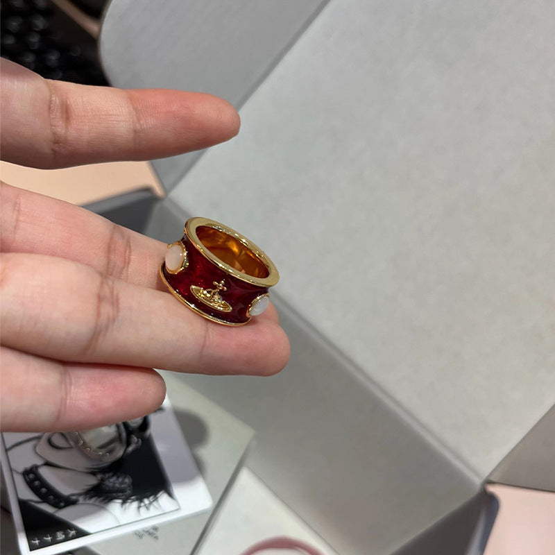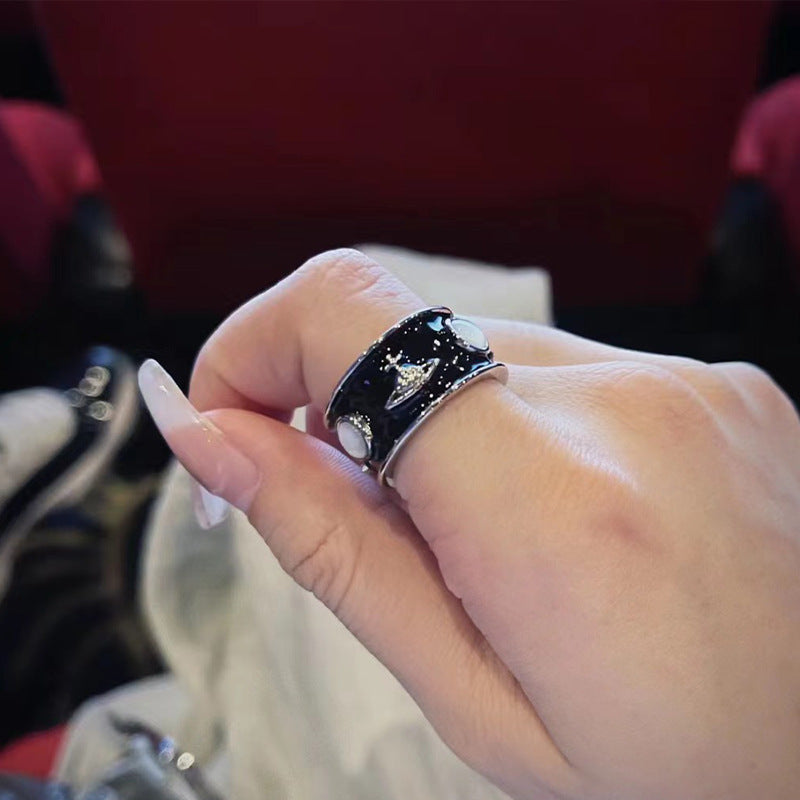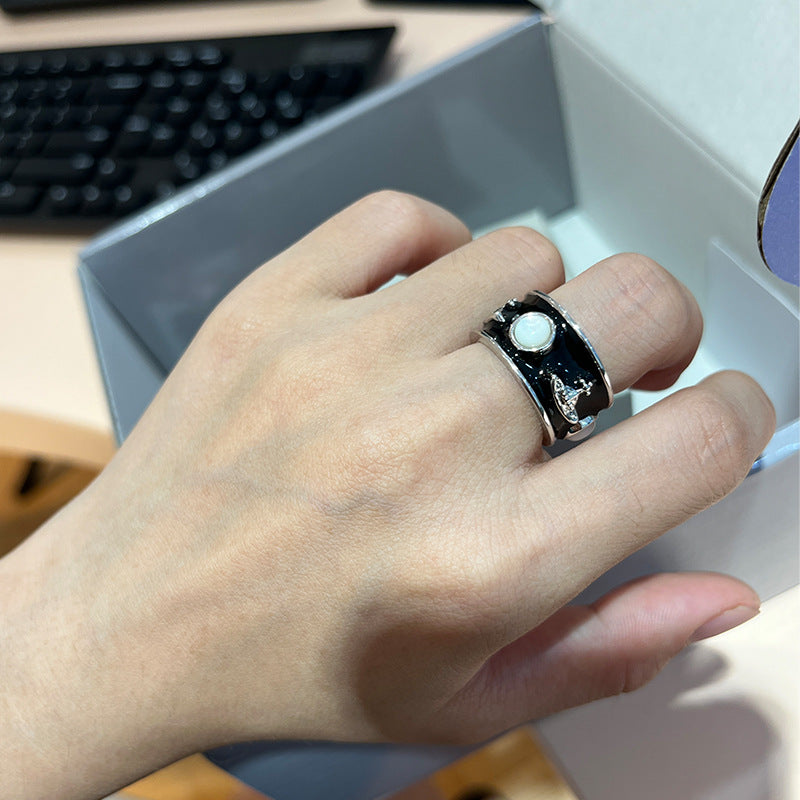 New Queen Mother Medieval King Ring Wide Edition Saturn Ring Enamel Glazed White Fritillary Personality Punk Couple