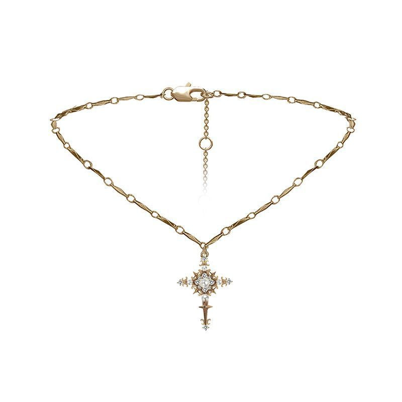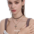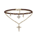 Original Design Nostalgic Collection Sweet Cool Starlight Cross Necklace Maillard Leather Neck Chain Sweater Chain