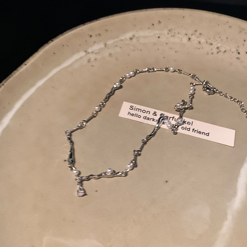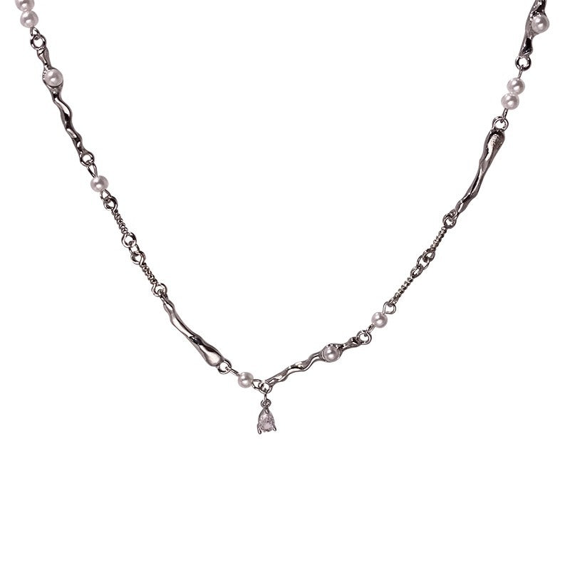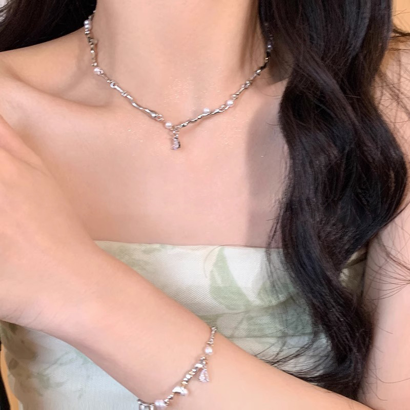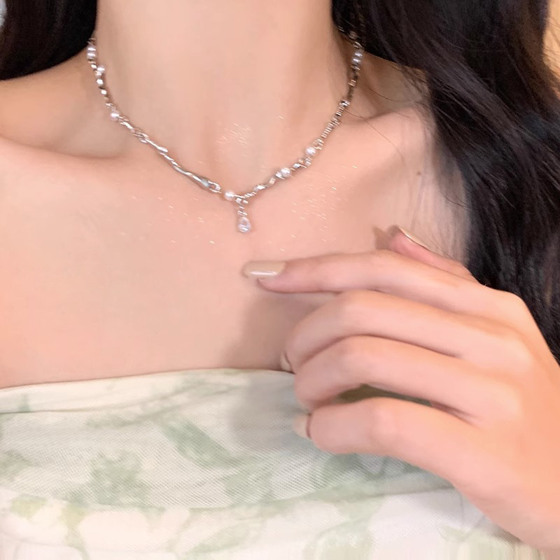 Pure desire wind~ pearl zircon splicing necklace female ins cold wind bracelet collarbone chain Internet celebrity neck chain