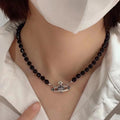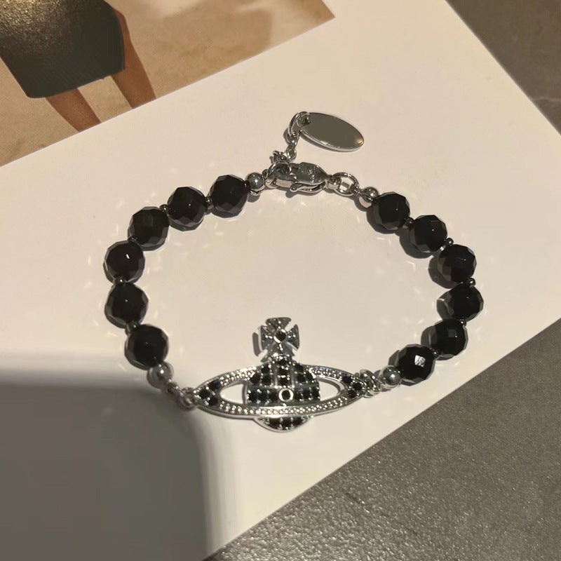Queen Mother of the West Black Onyx Shining Diamond Saturn Necklace Black Choke Niche European and American Clavicle Chain