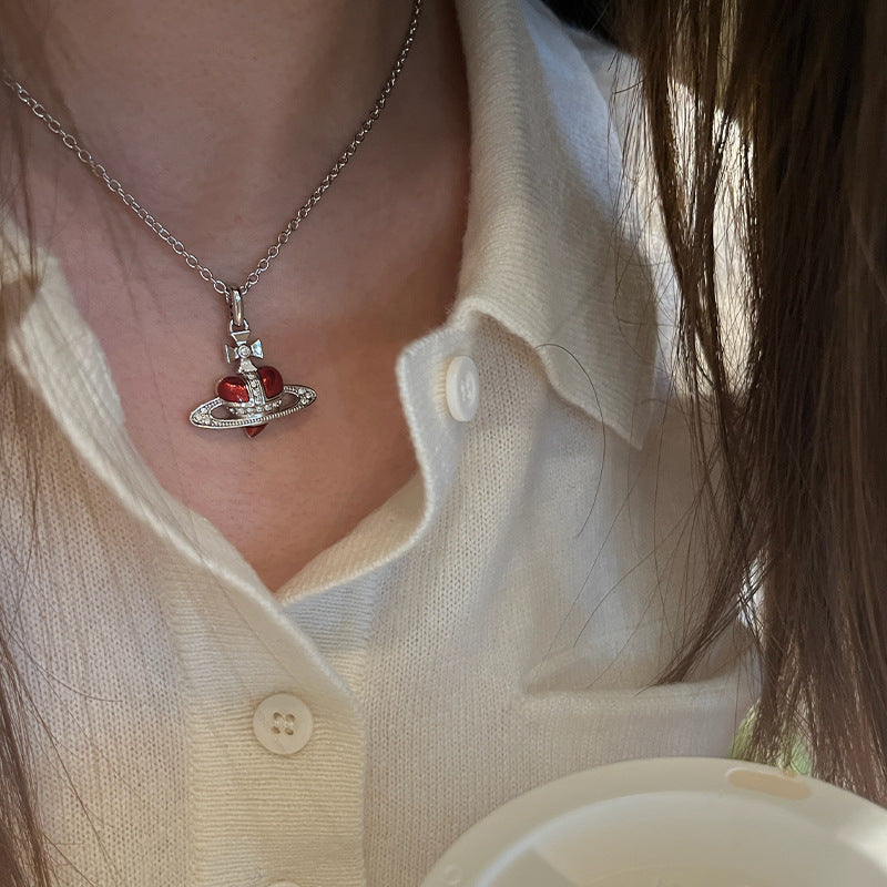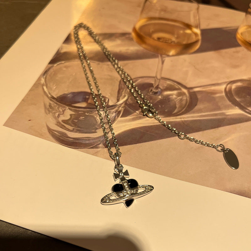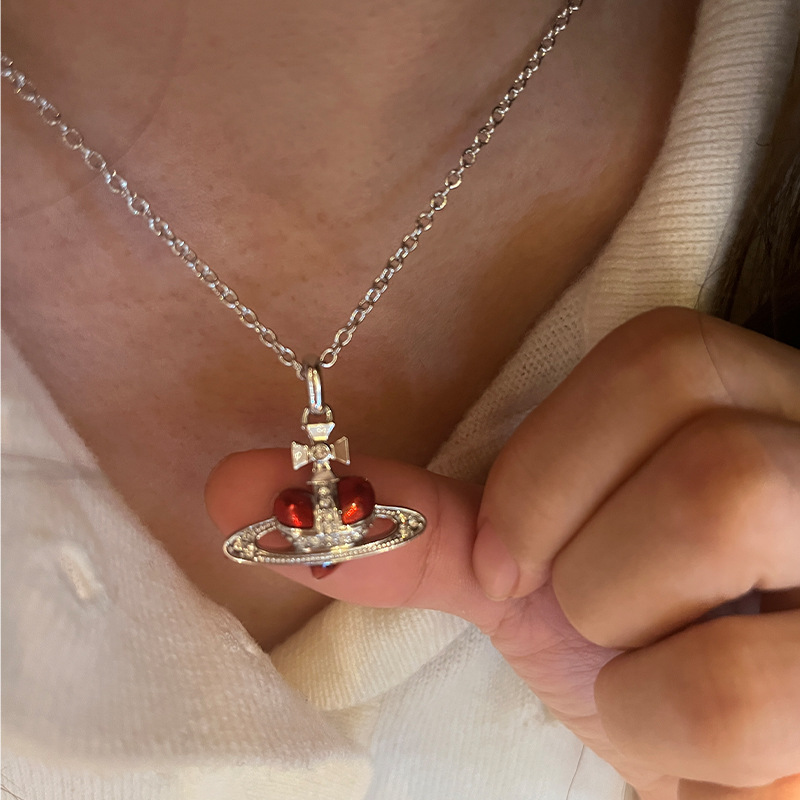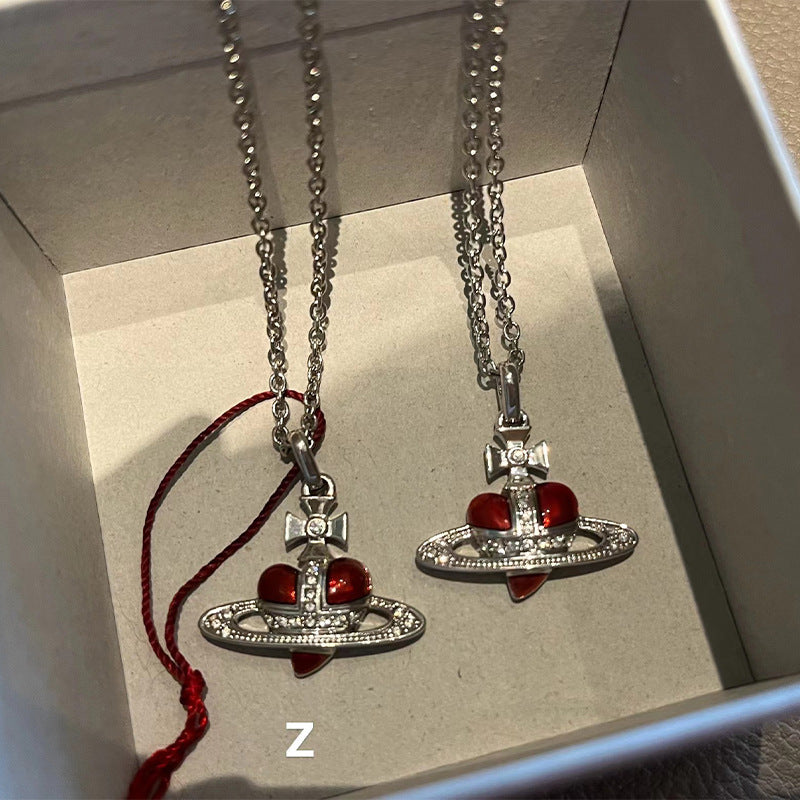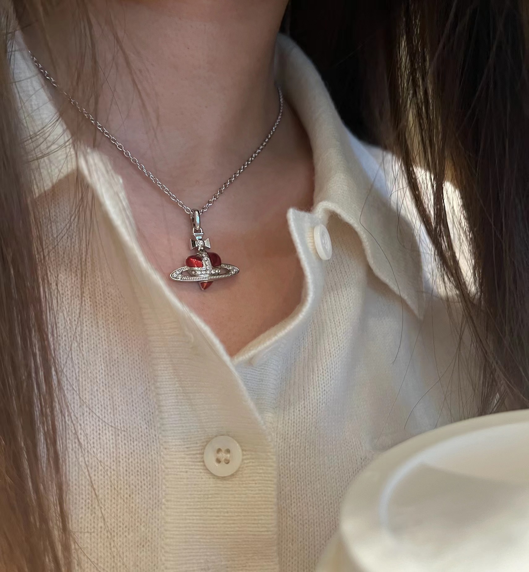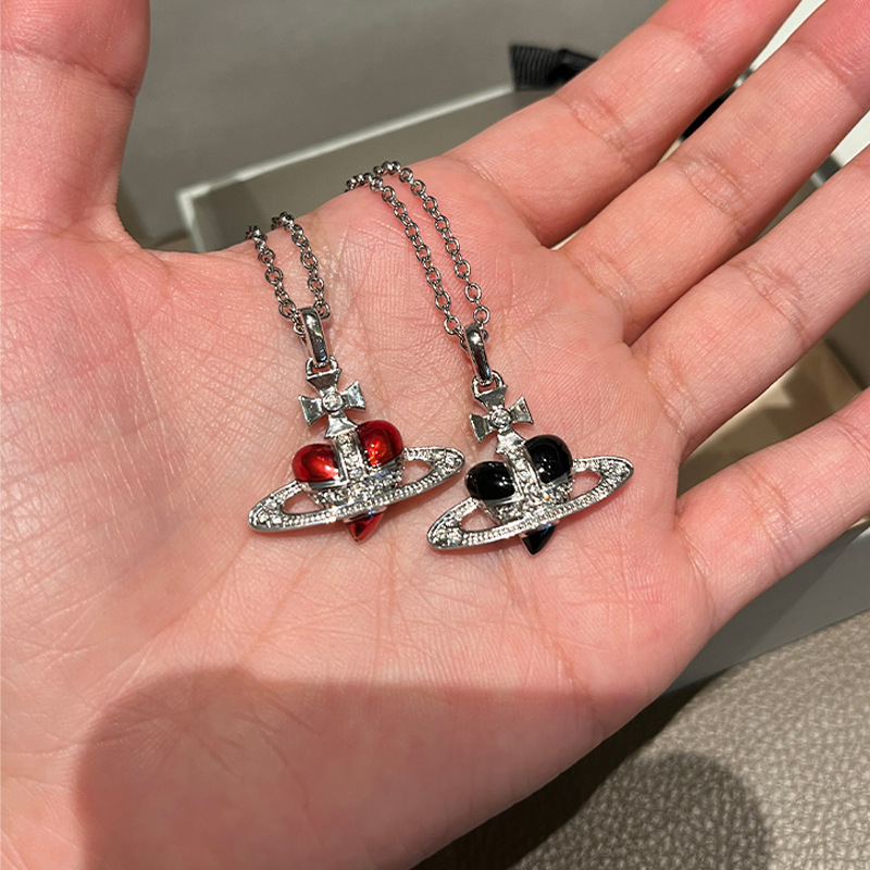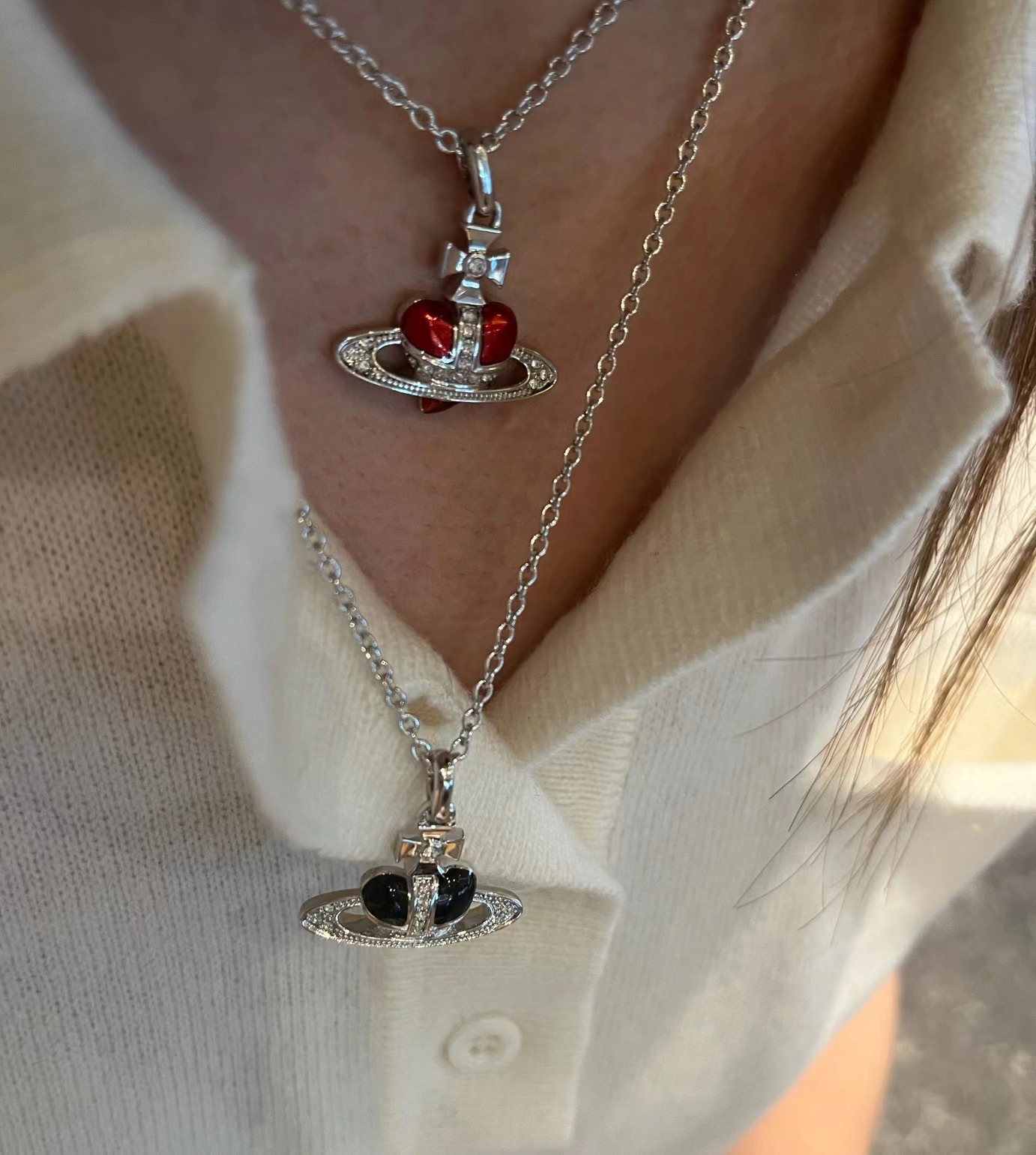 Queen Mother of the West enamel Saturn red heart necklace black enamel heart necklace punk babes jewelry