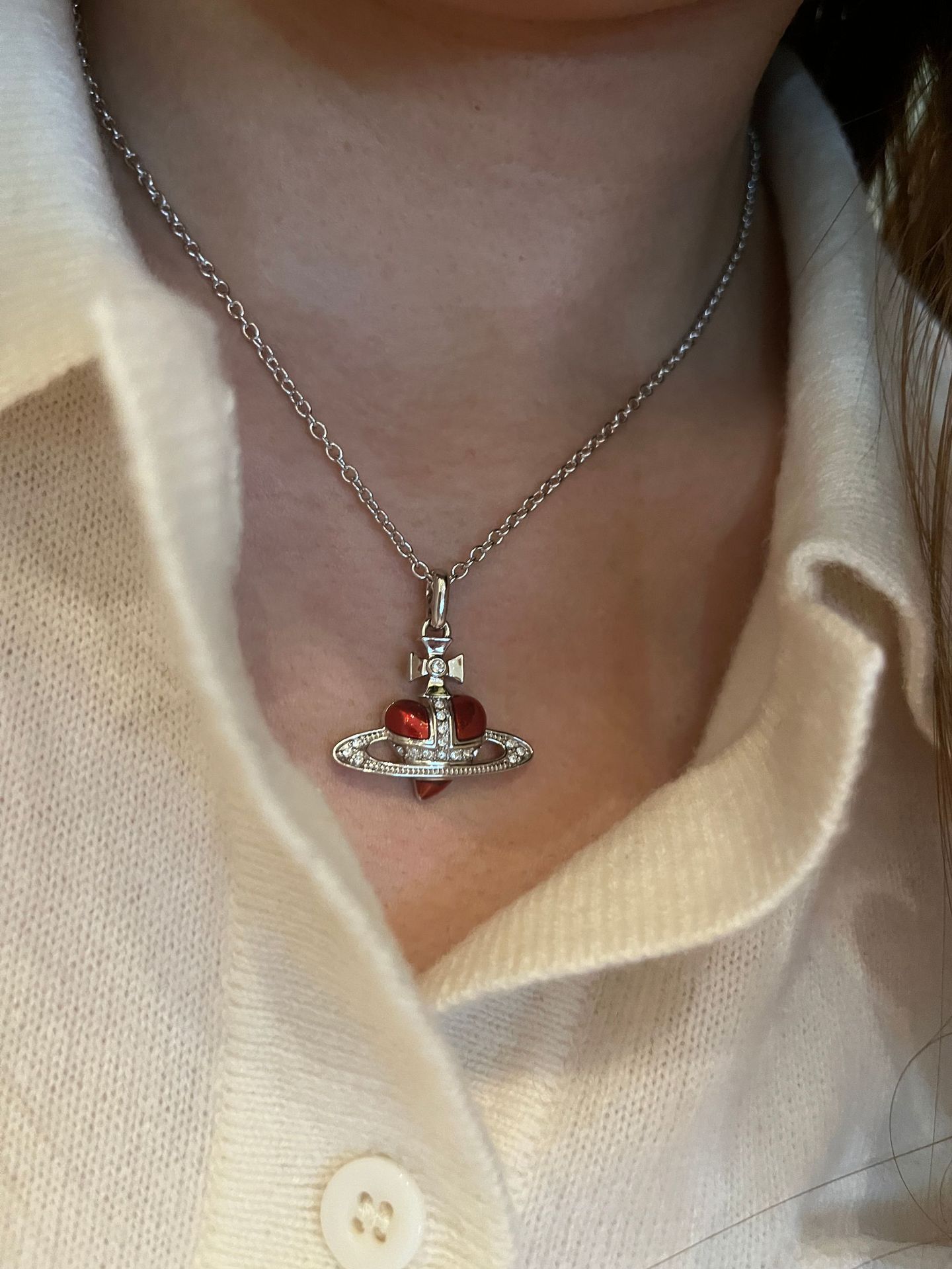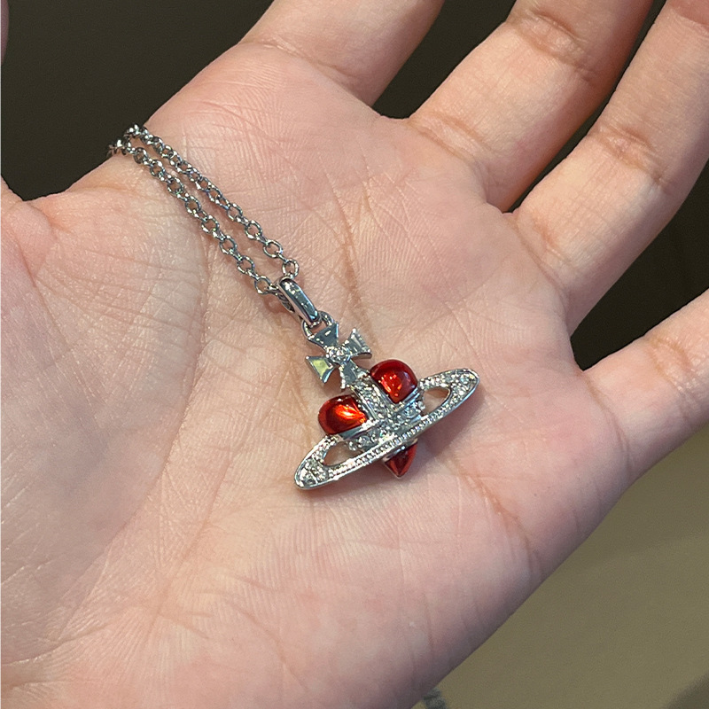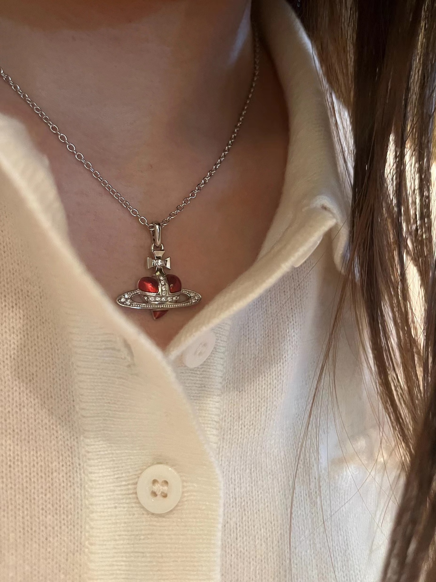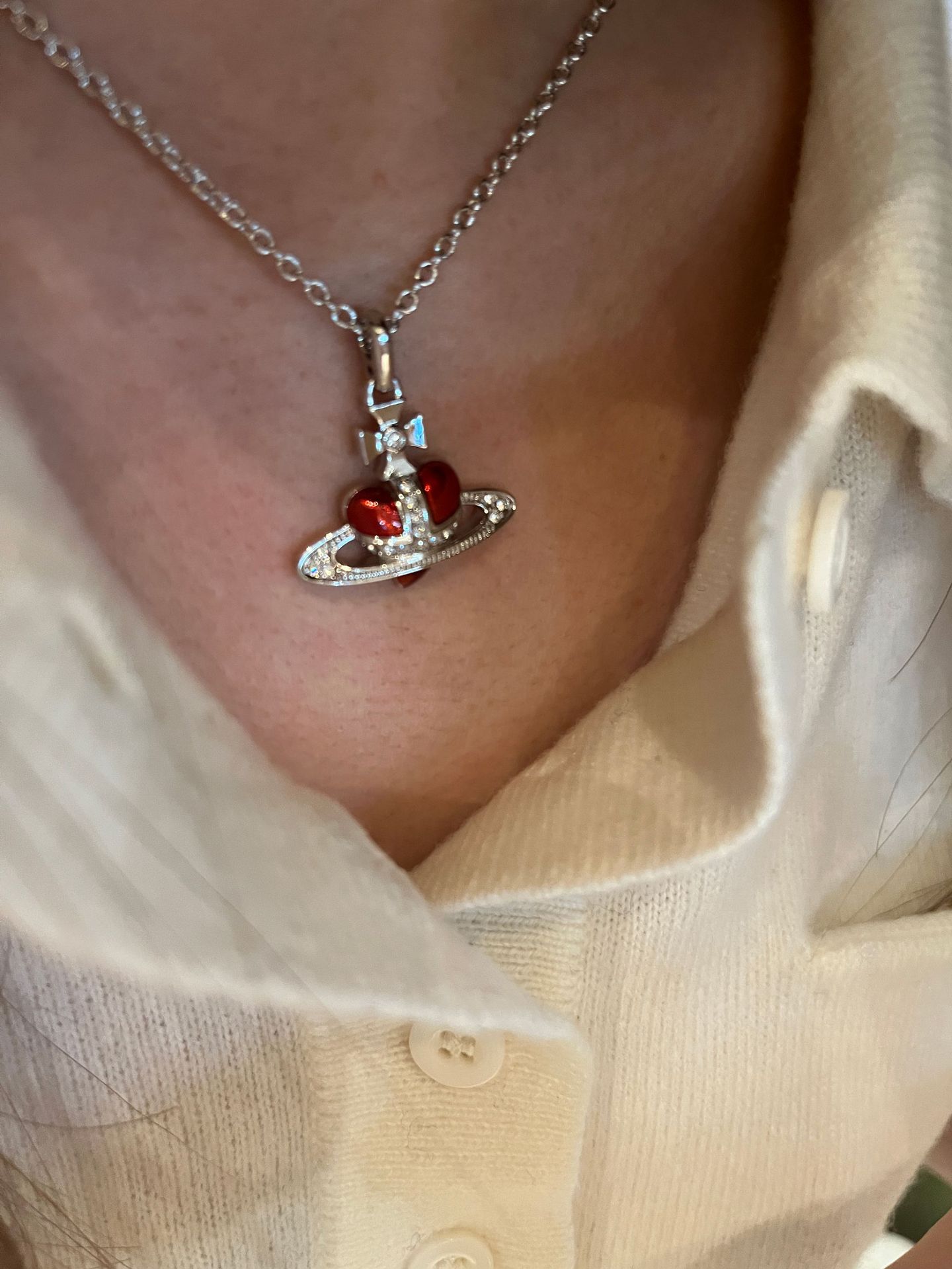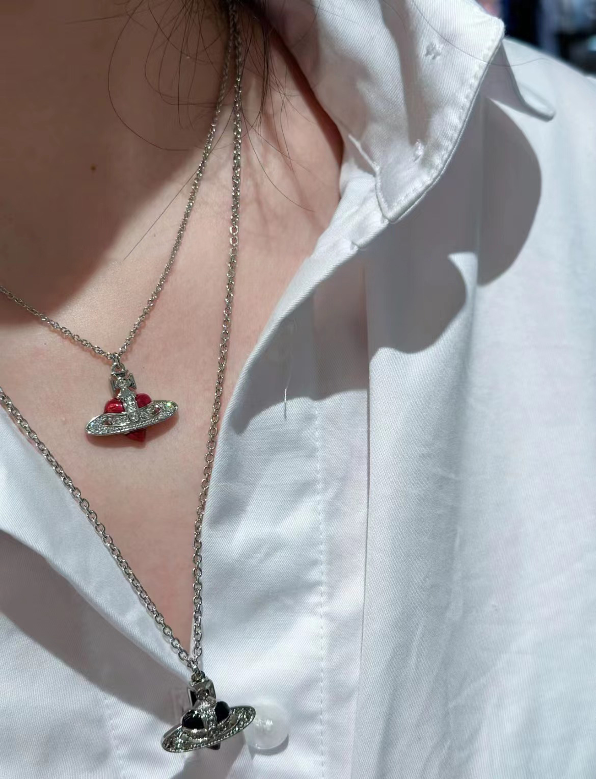 Queen Mother of the West enamel Saturn red heart necklace black enamel heart necklace punk babes jewelry