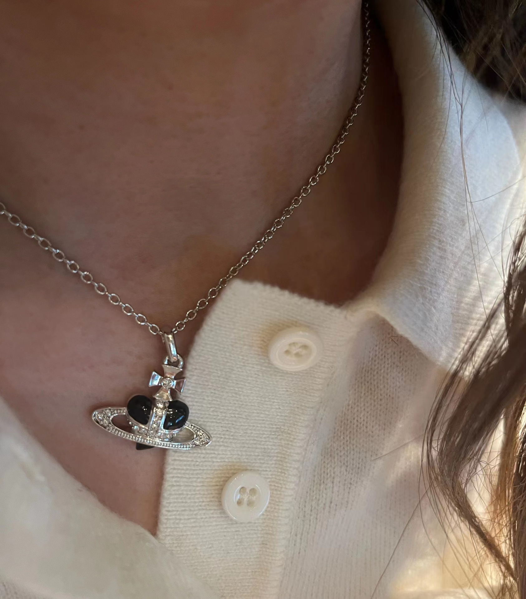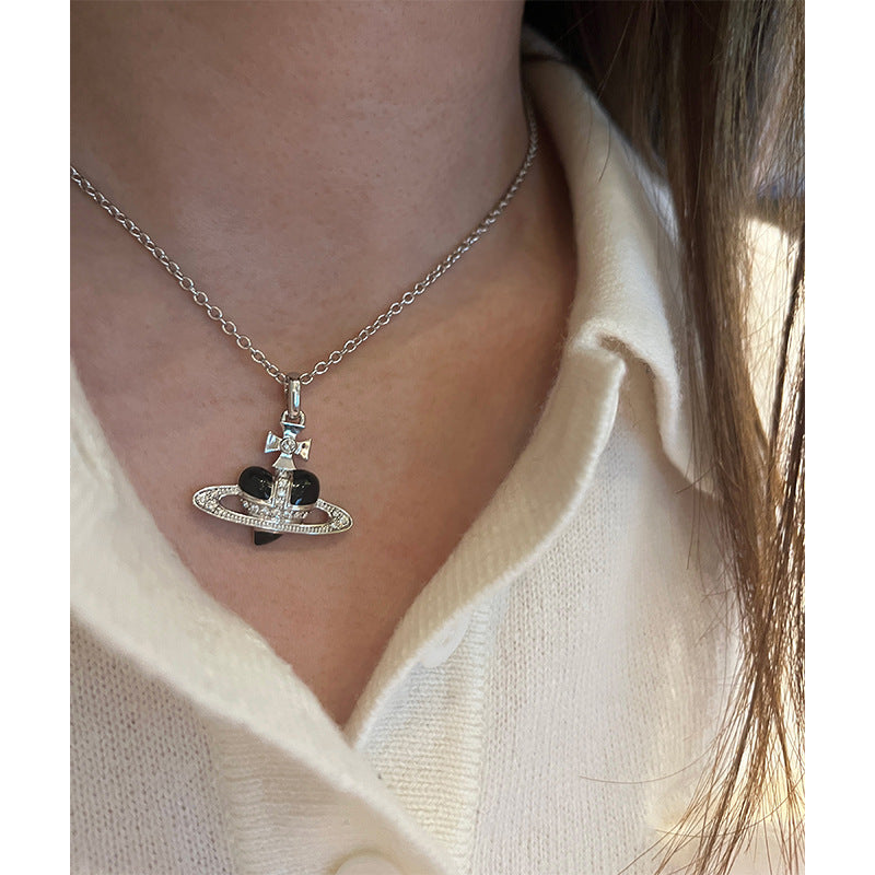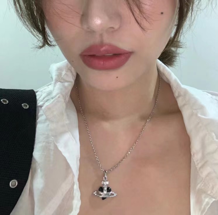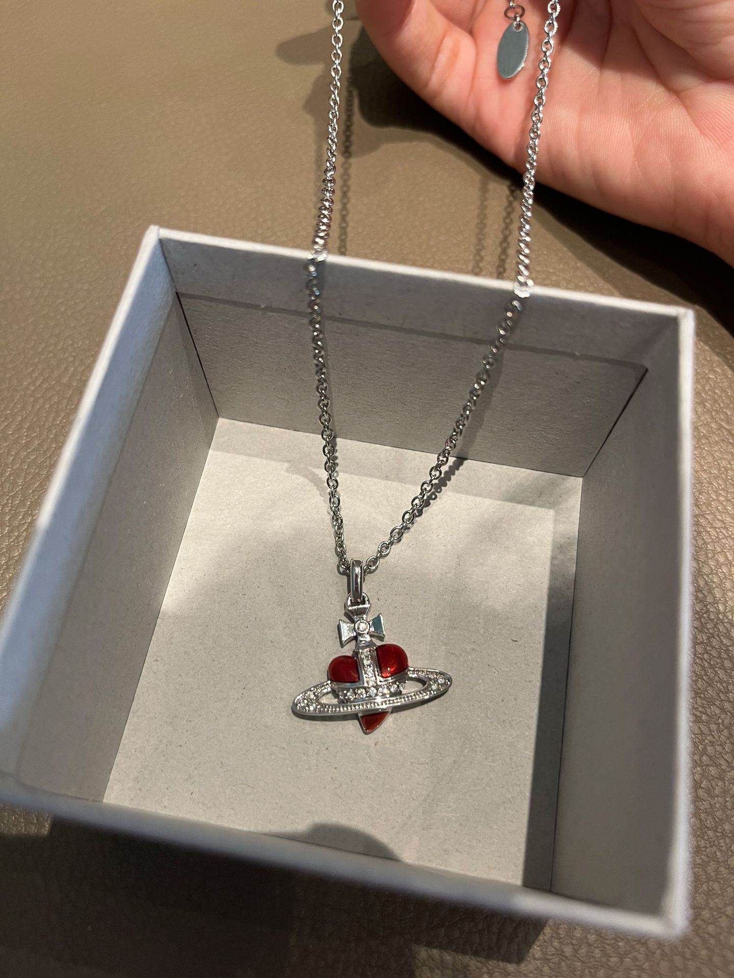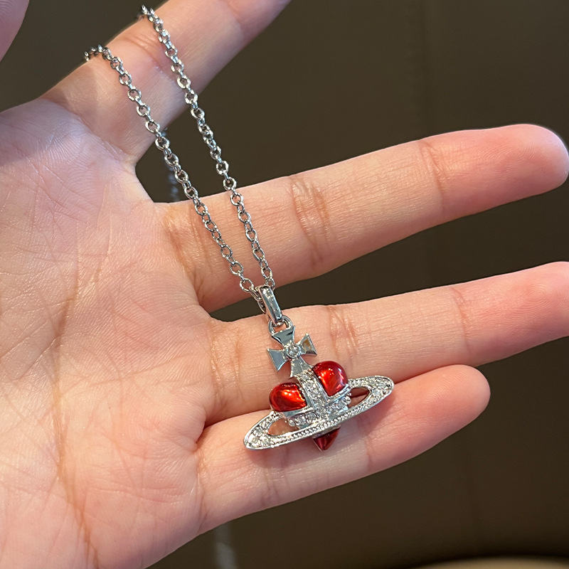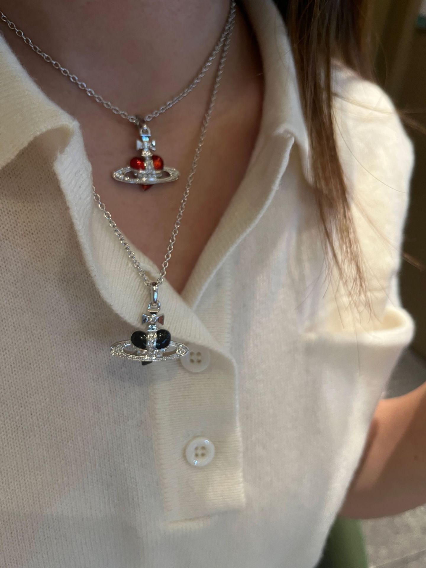 Queen Mother of the West enamel Saturn red heart necklace black enamel heart necklace punk babes jewelry