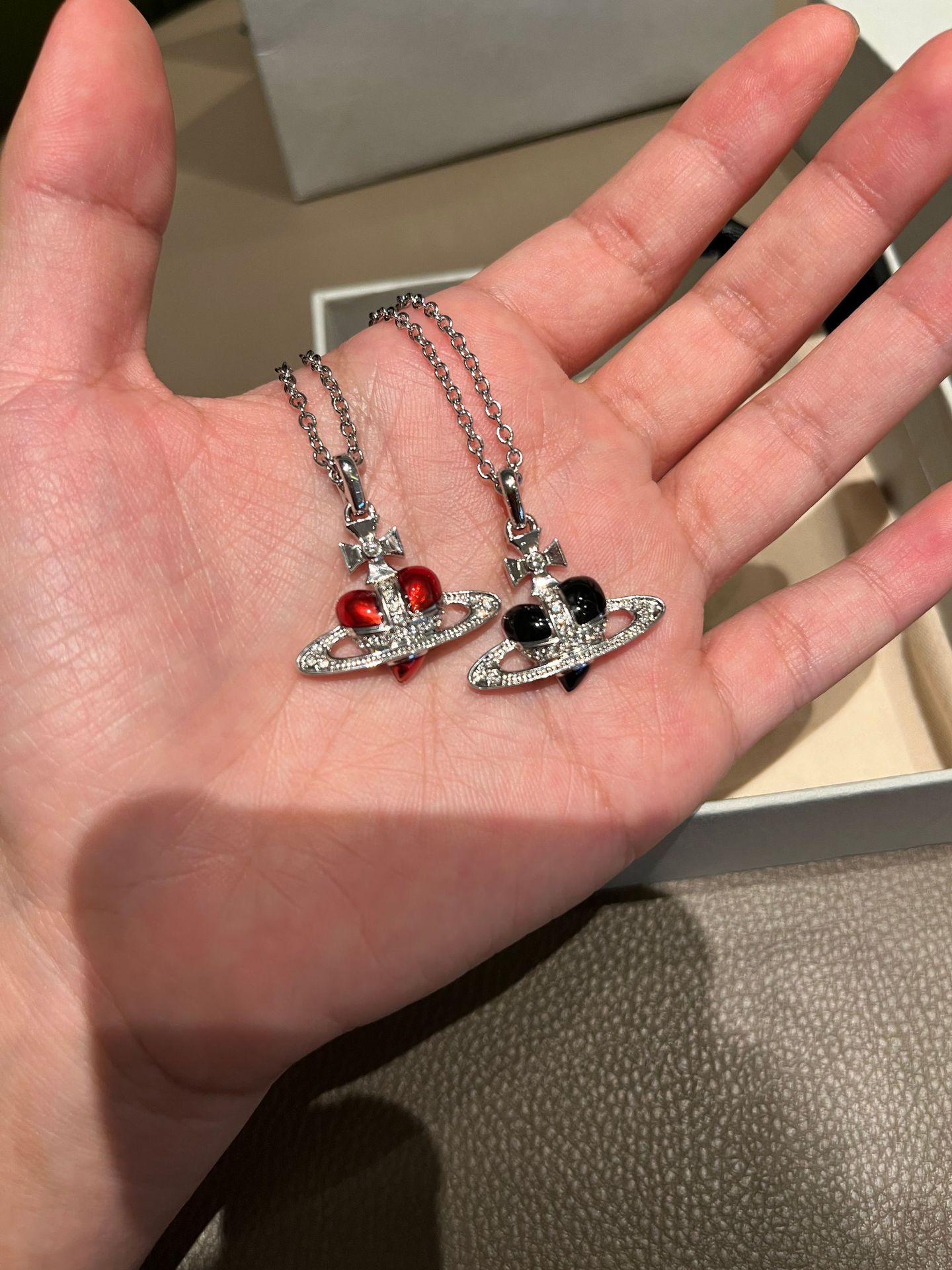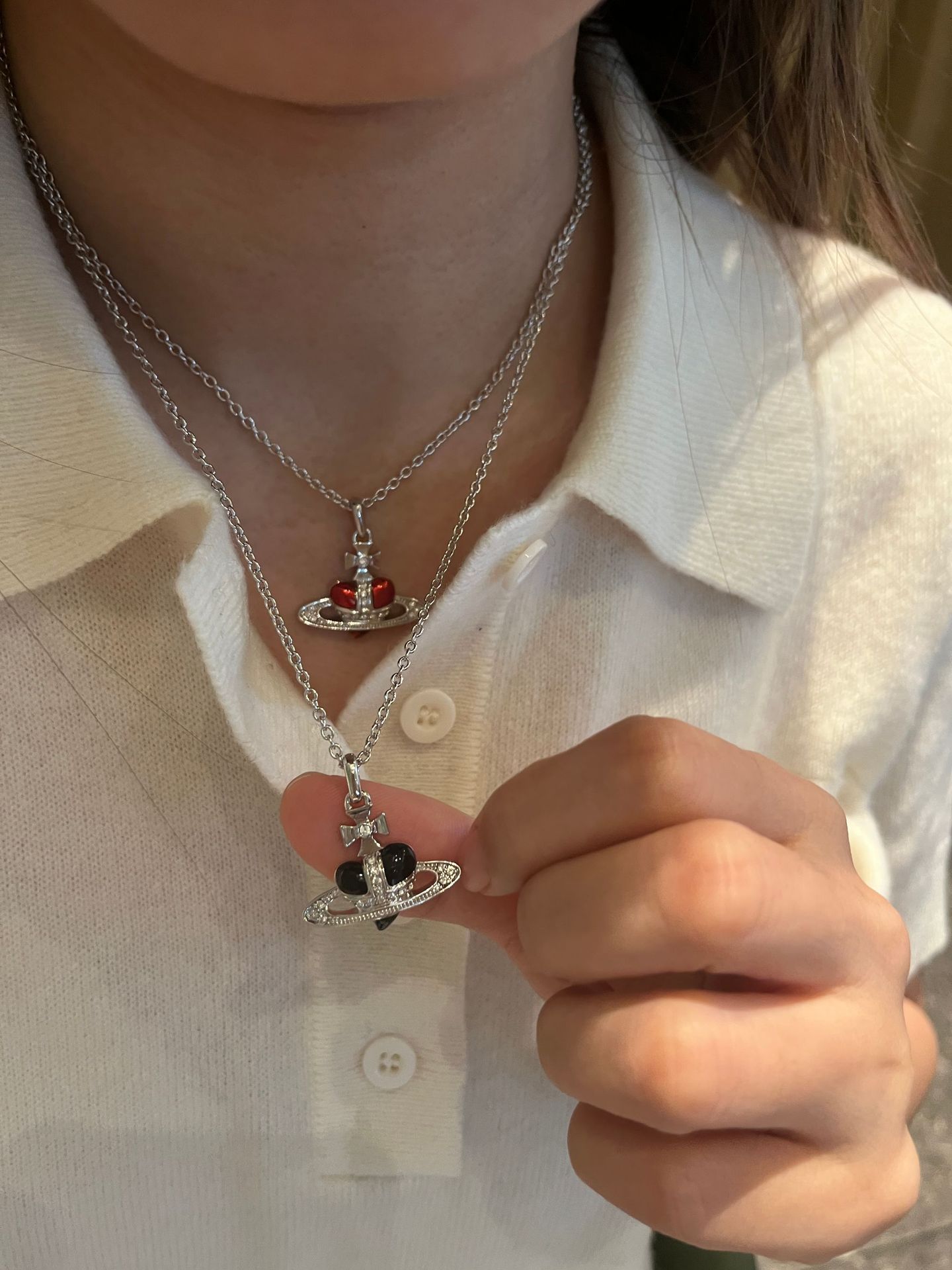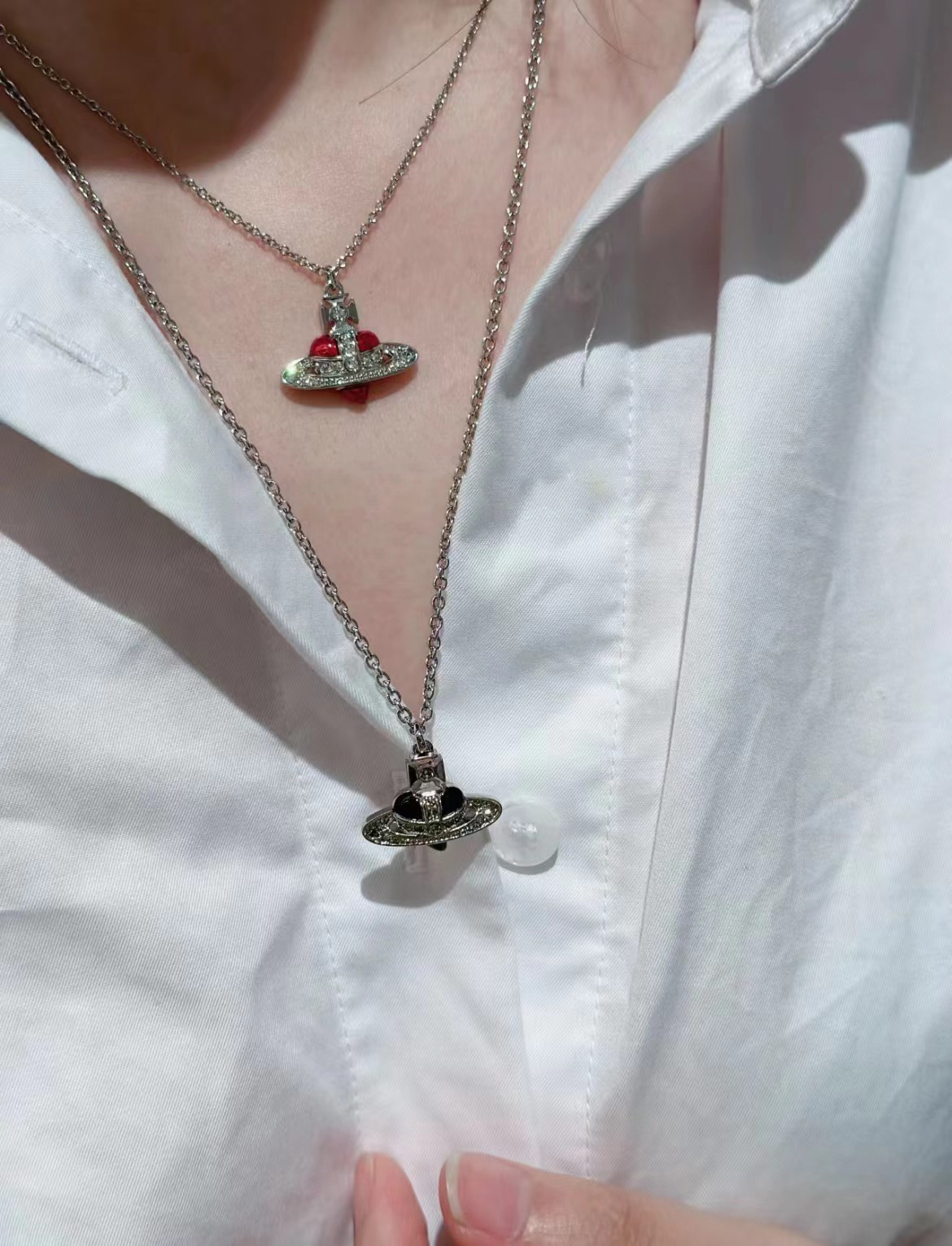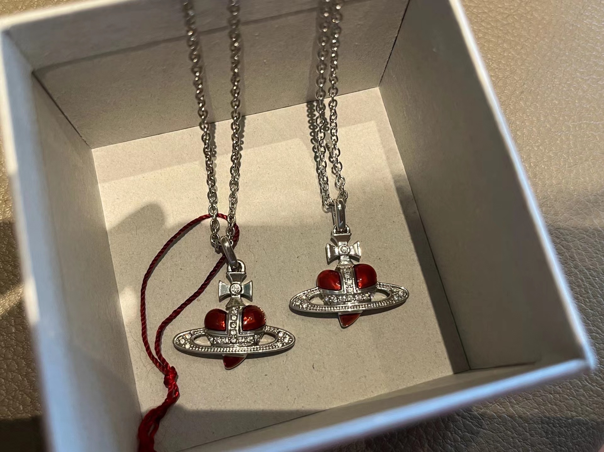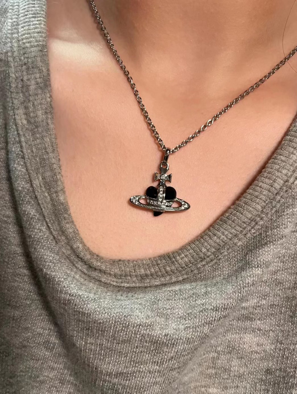 Queen Mother of the West enamel Saturn red heart necklace black enamel heart necklace punk babes jewelry