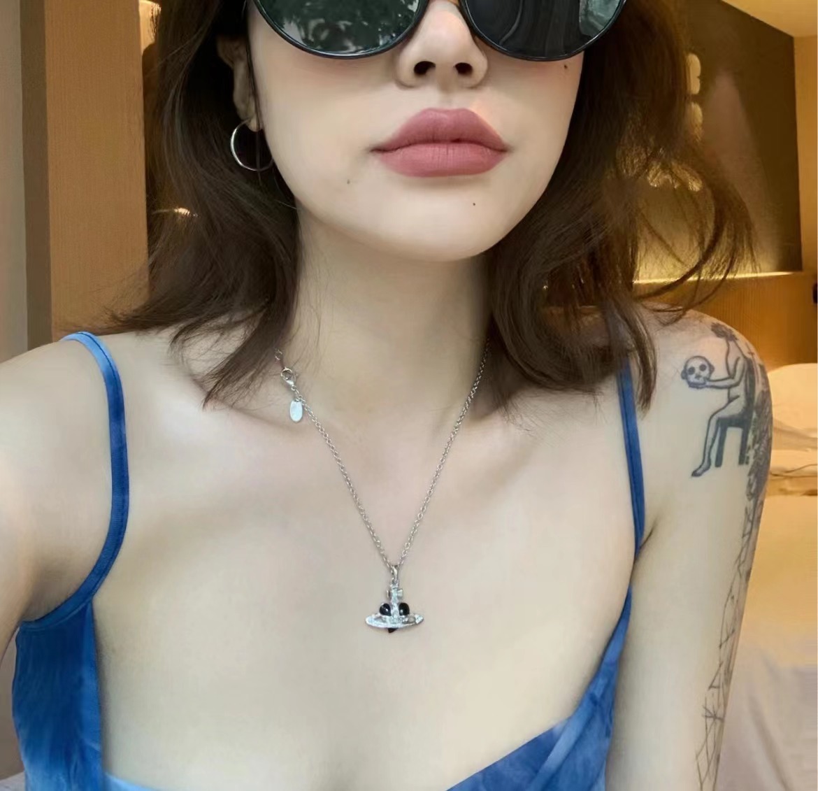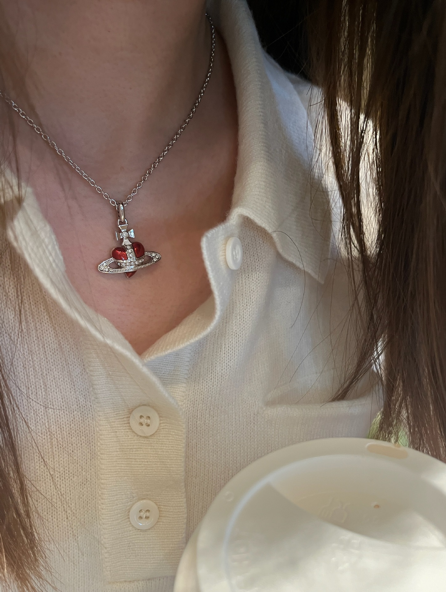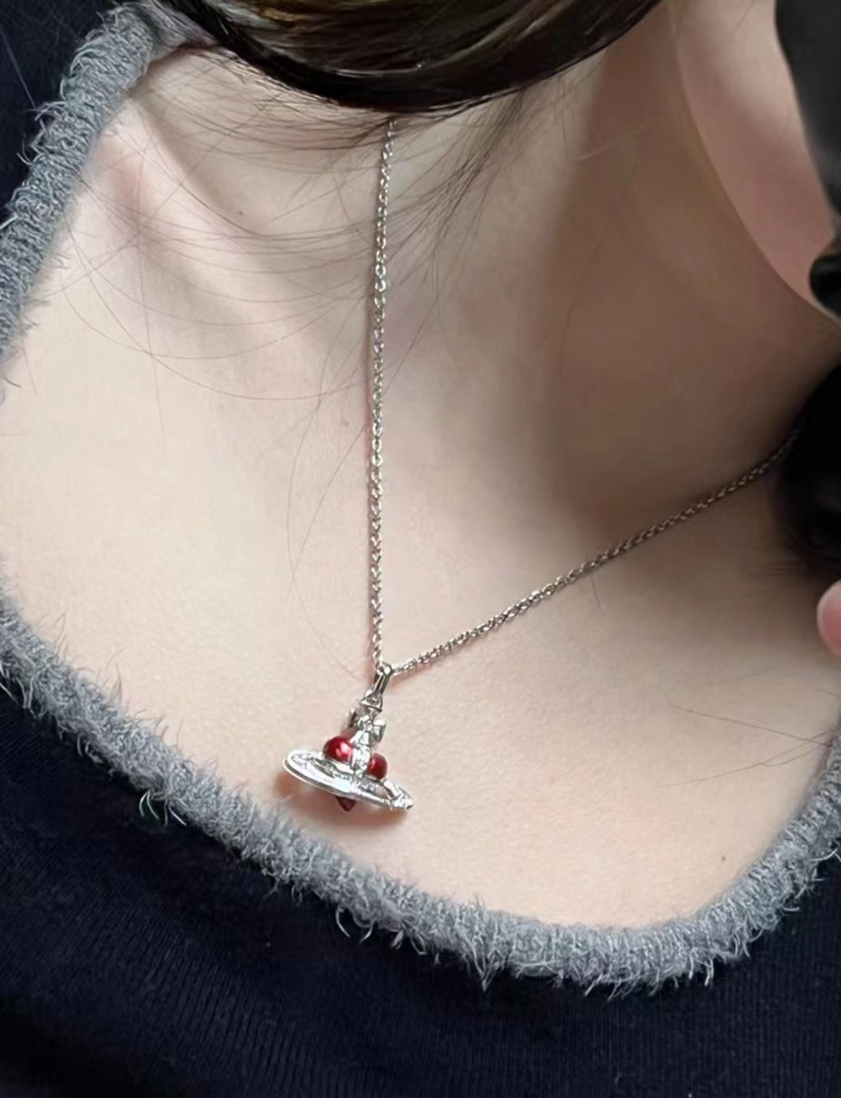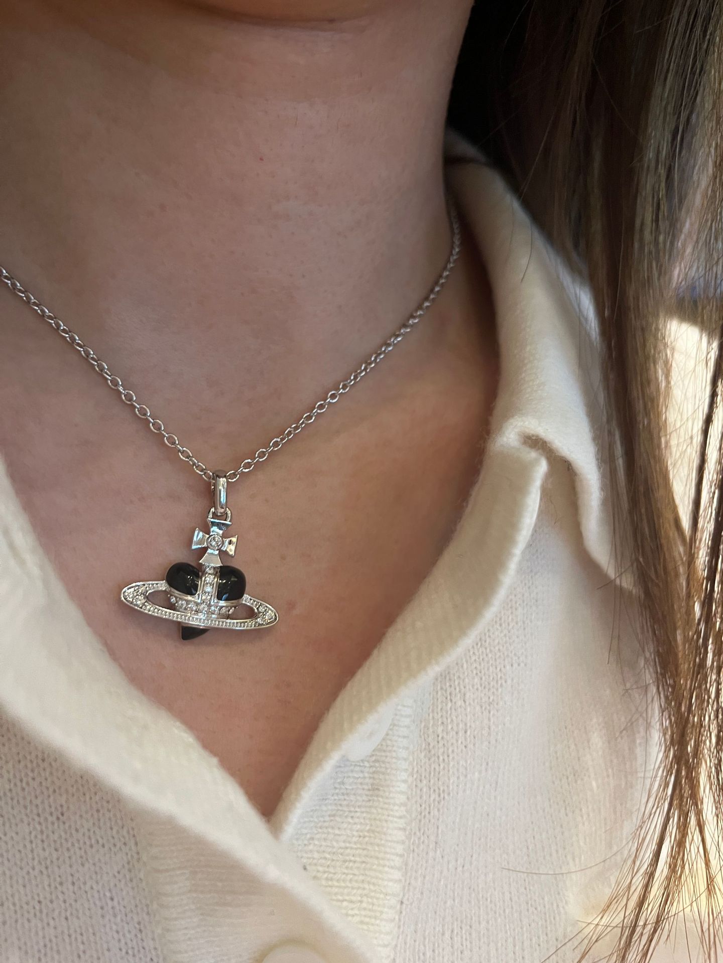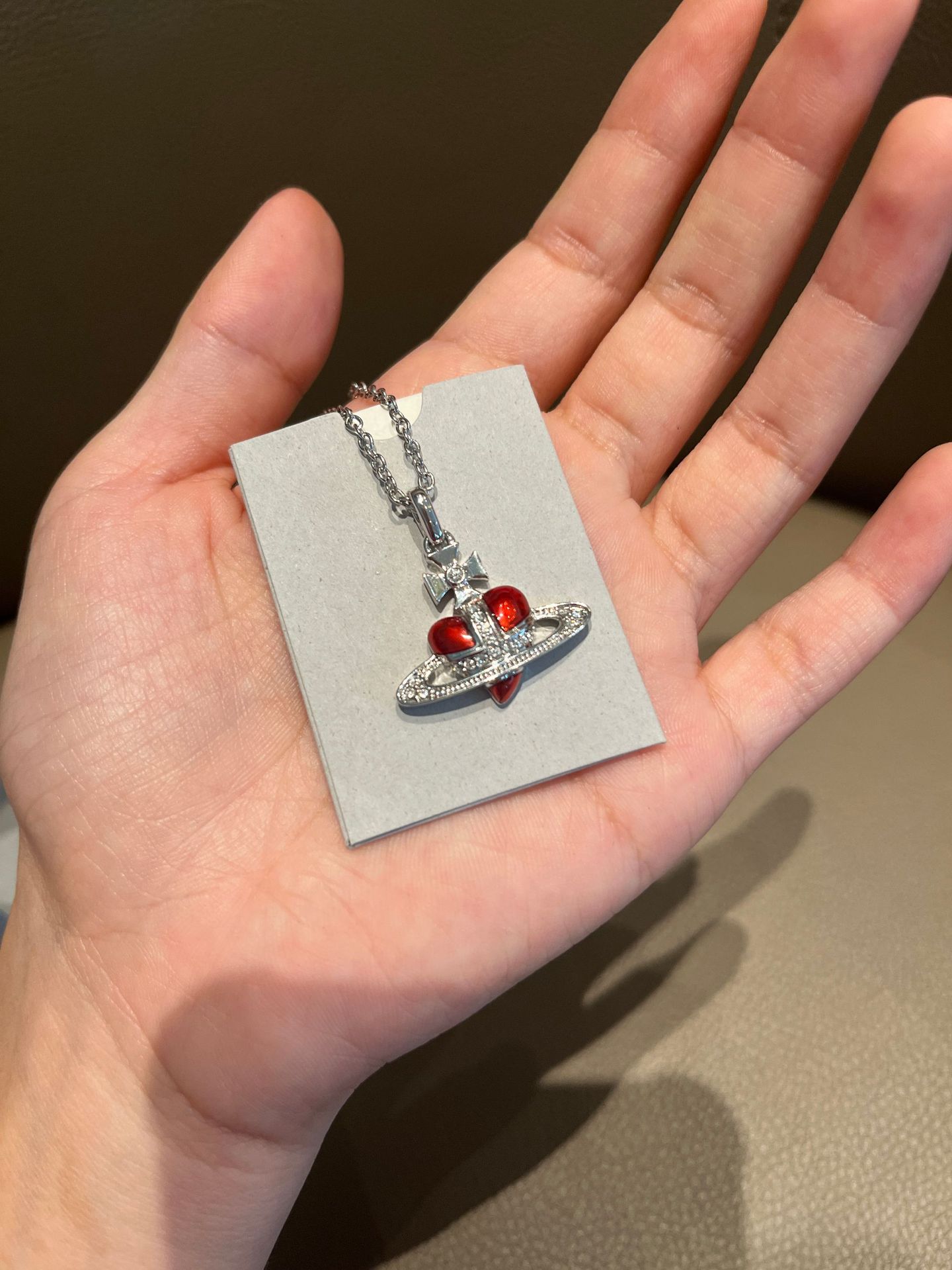Queen Mother of the West enamel Saturn red heart necklace black enamel heart necklace punk babes jewelry