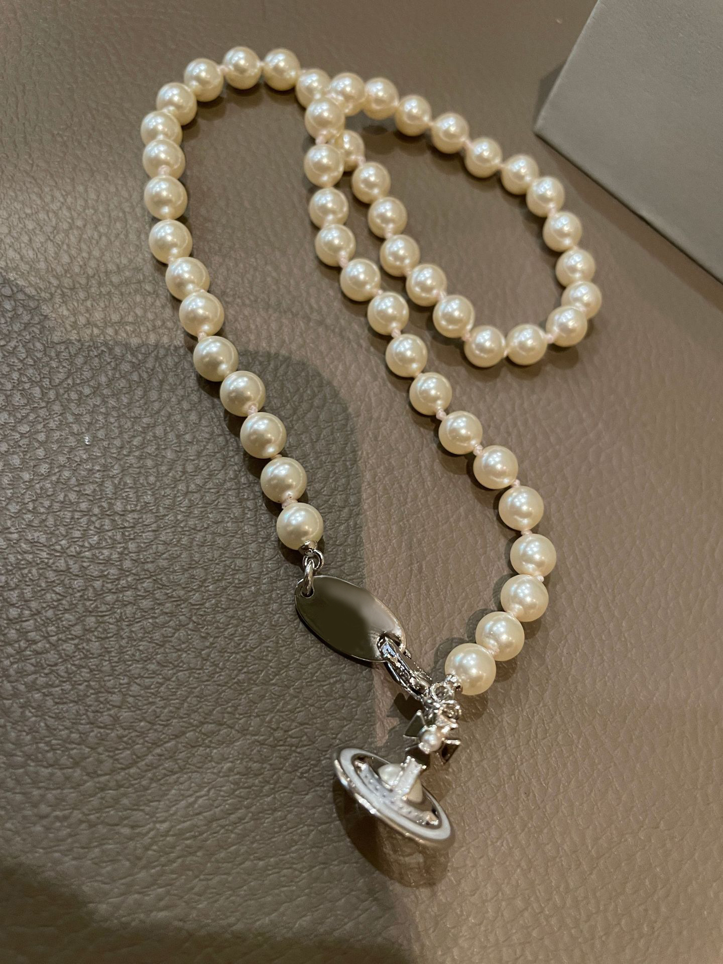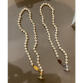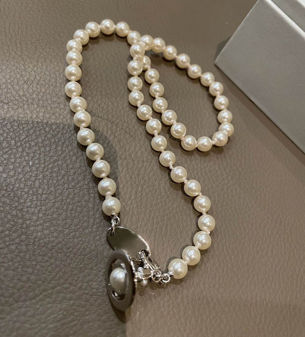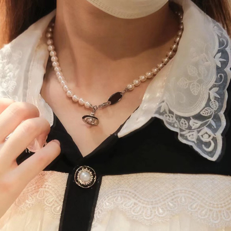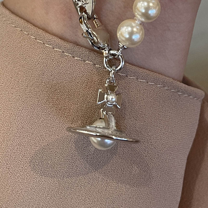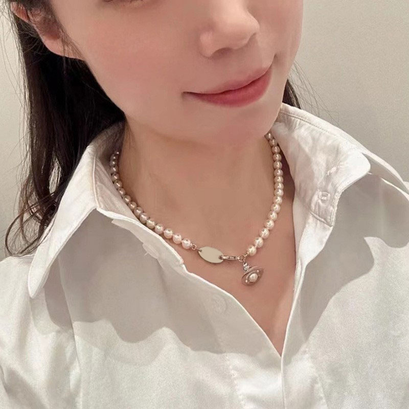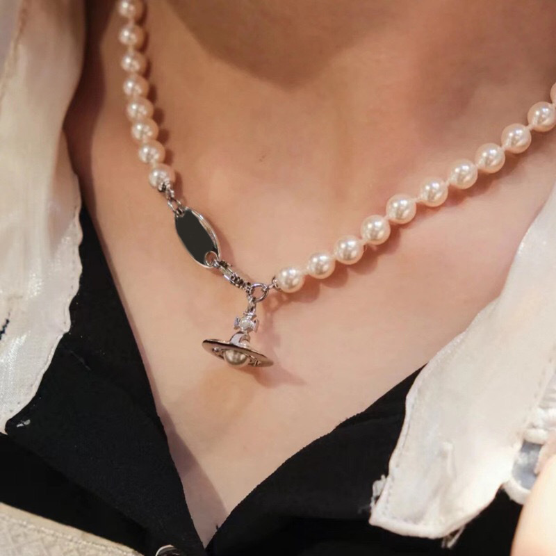 Queen Mother of the West gilt blue three-dimensional Saturn pearl necklace white enamel orb saucer pearl necklace