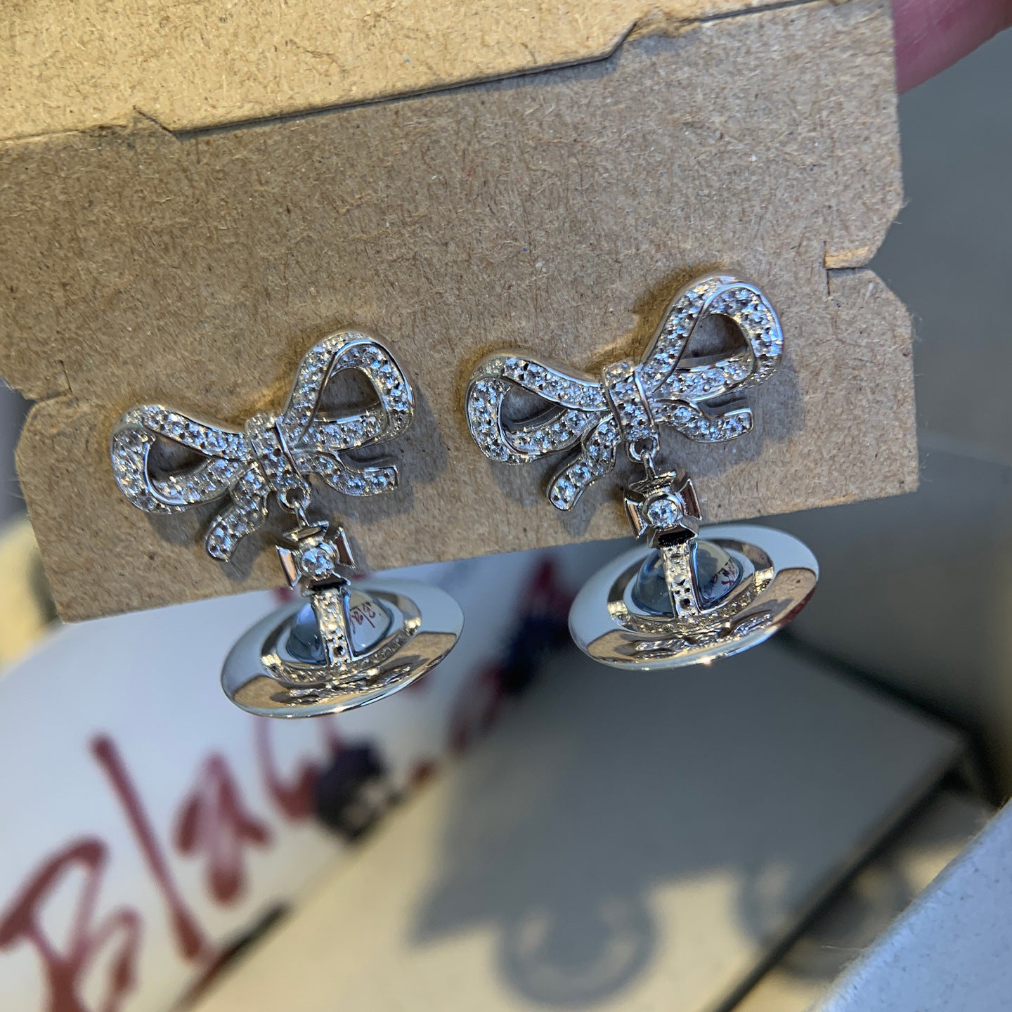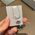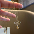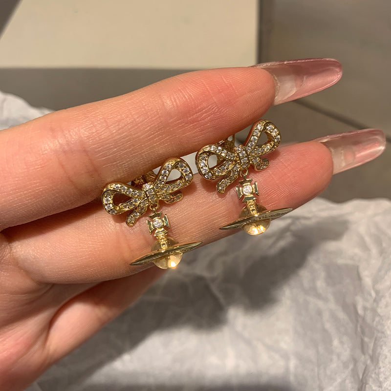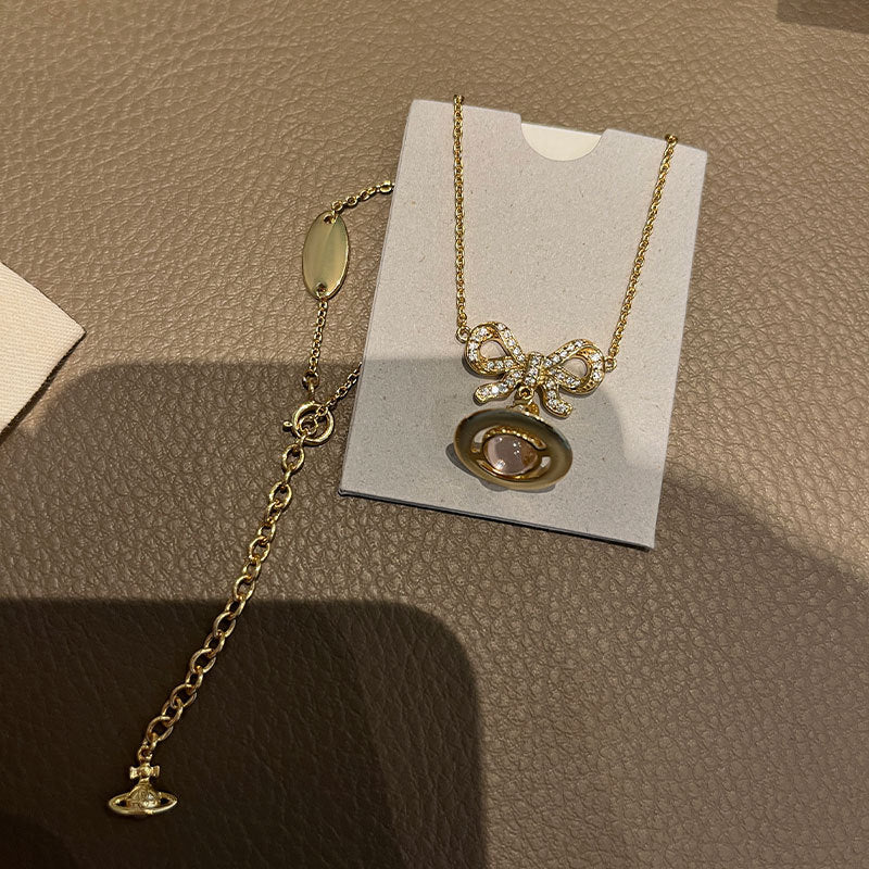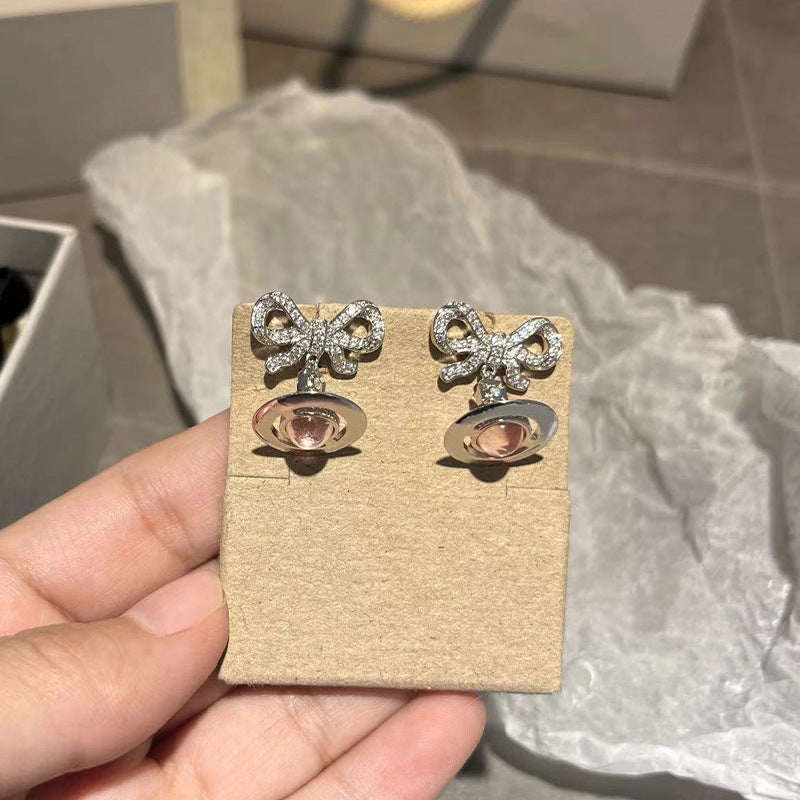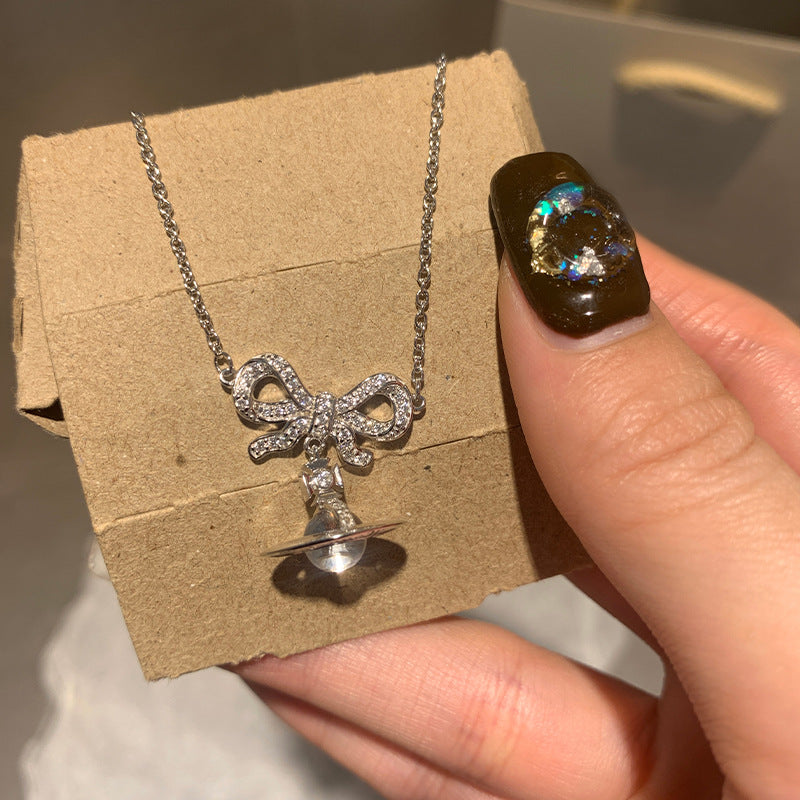 Queen Mother of the West glacier blue orb bow planet necklace earrings 925 silver girly sense Saturn pendant spring and summer new style