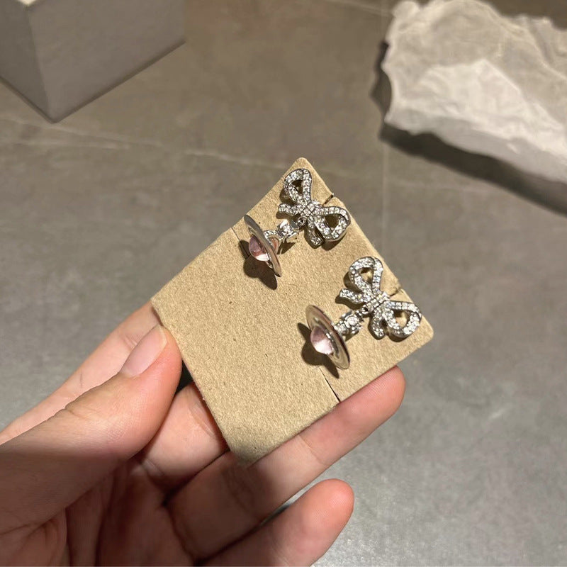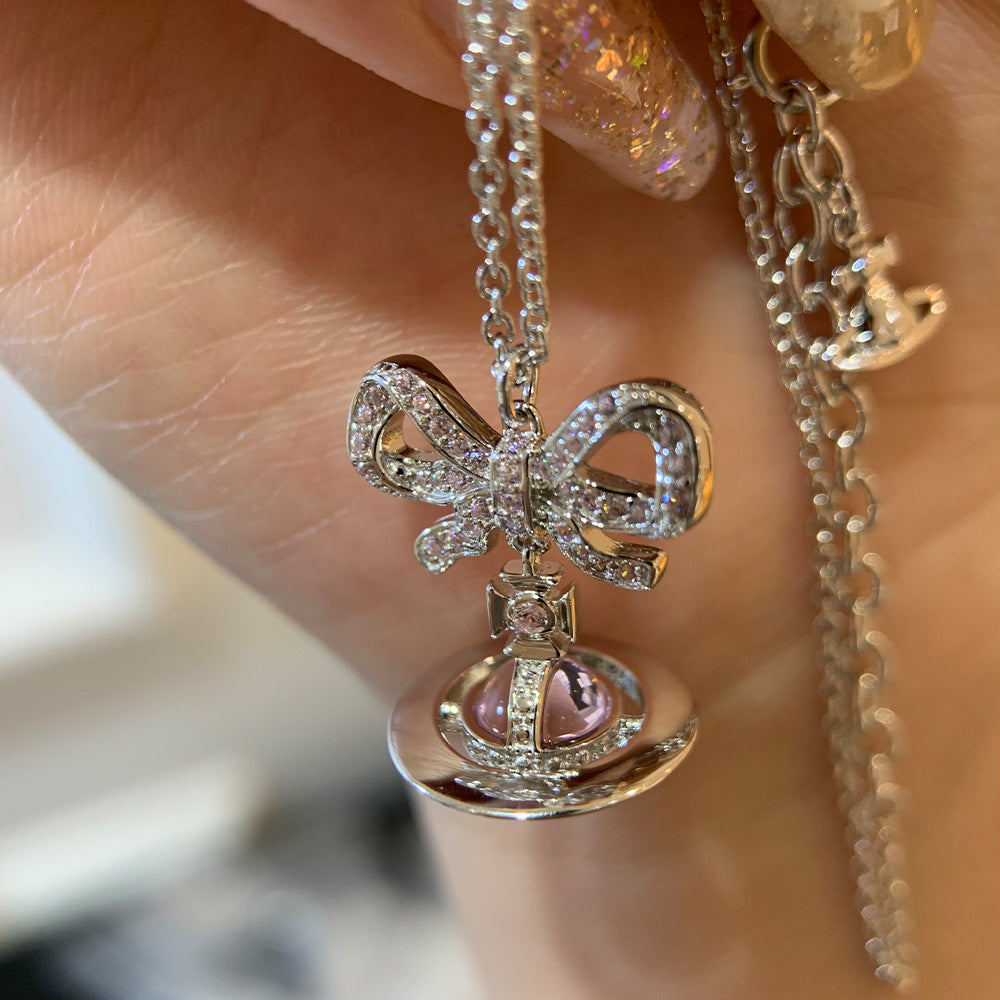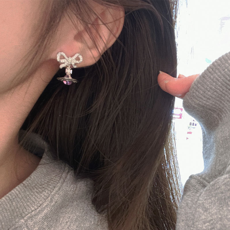 Queen Mother of the West orb bow planet stud earrings girl sweet cool earrings 925 silver gold powder silver purple