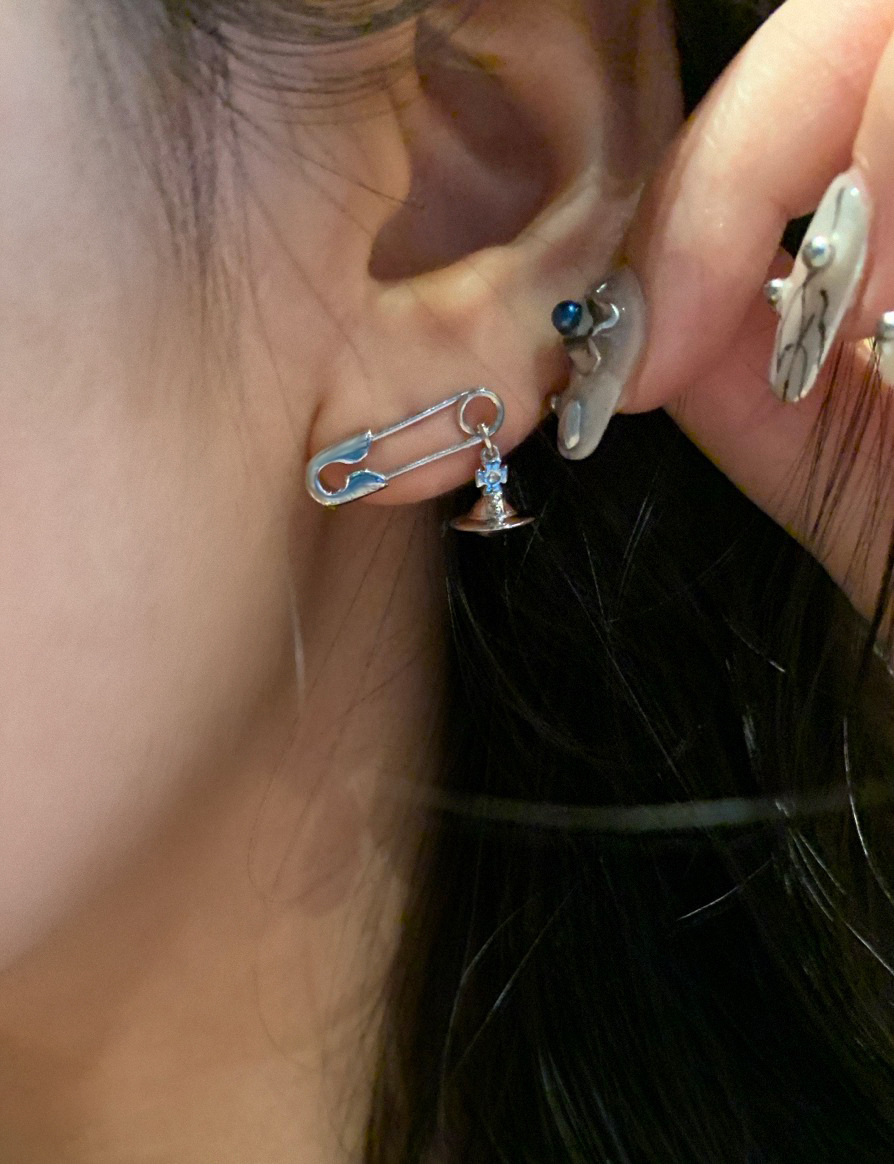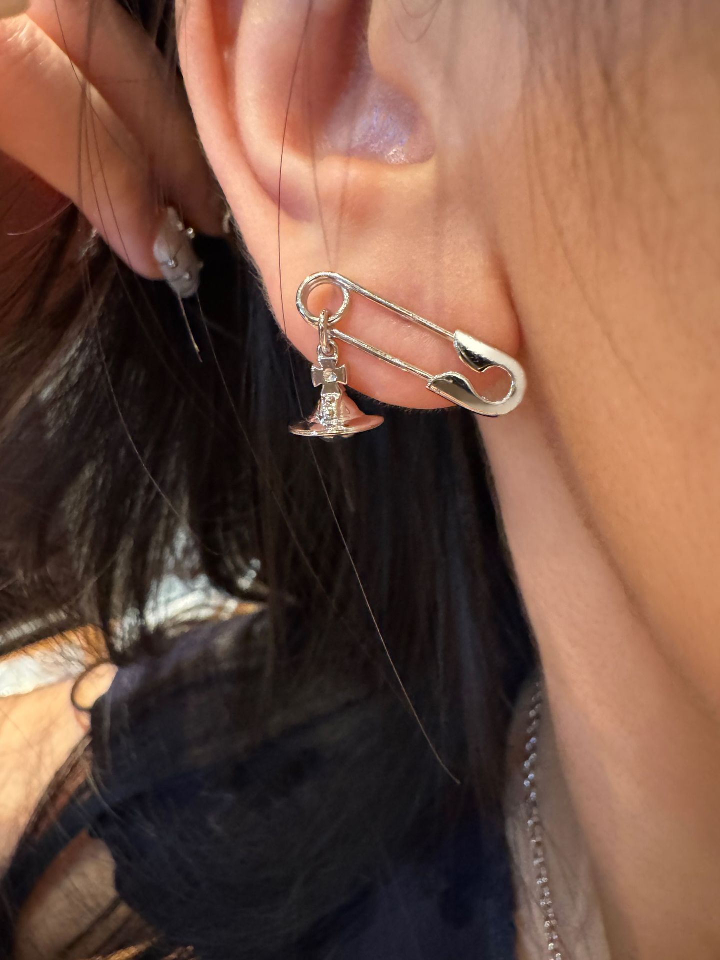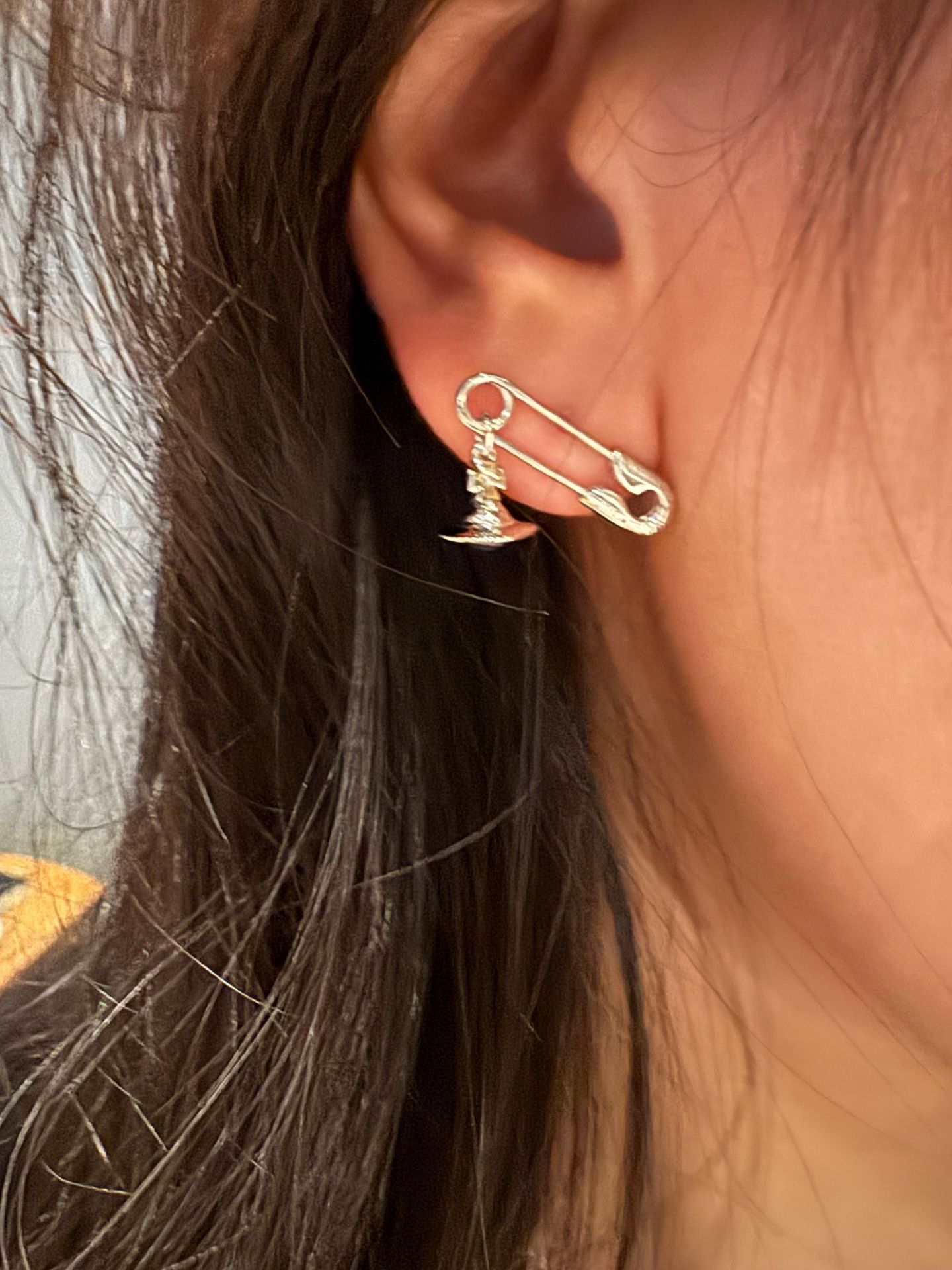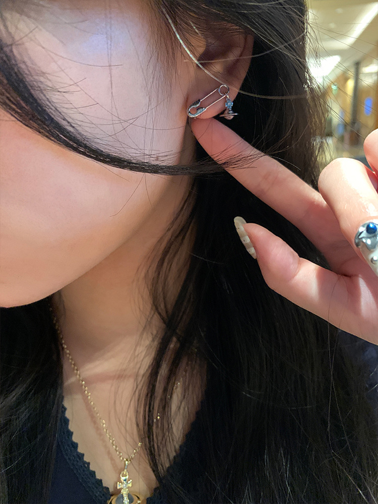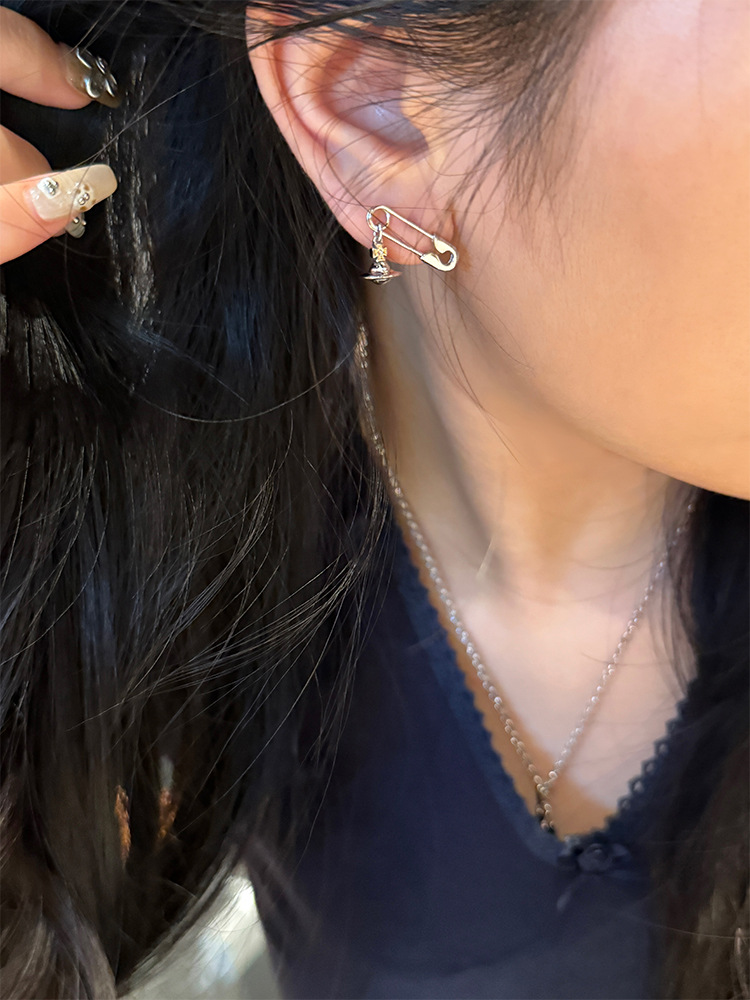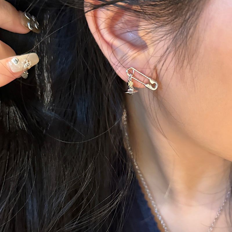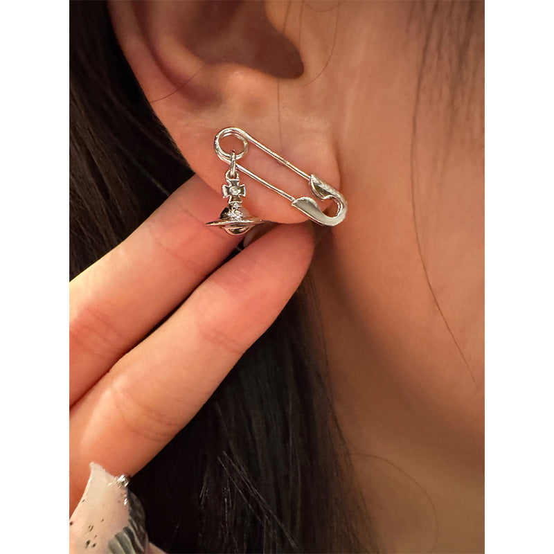 Queen Mother of the West pin three-dimensional Saturn stud earrings minimalist silver earrings pin bright paper clip planet daily earrings earrings