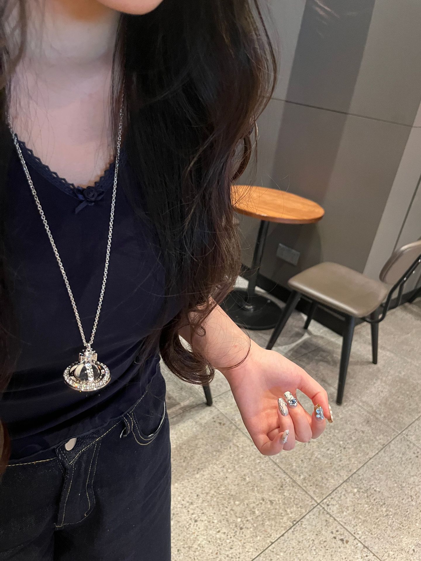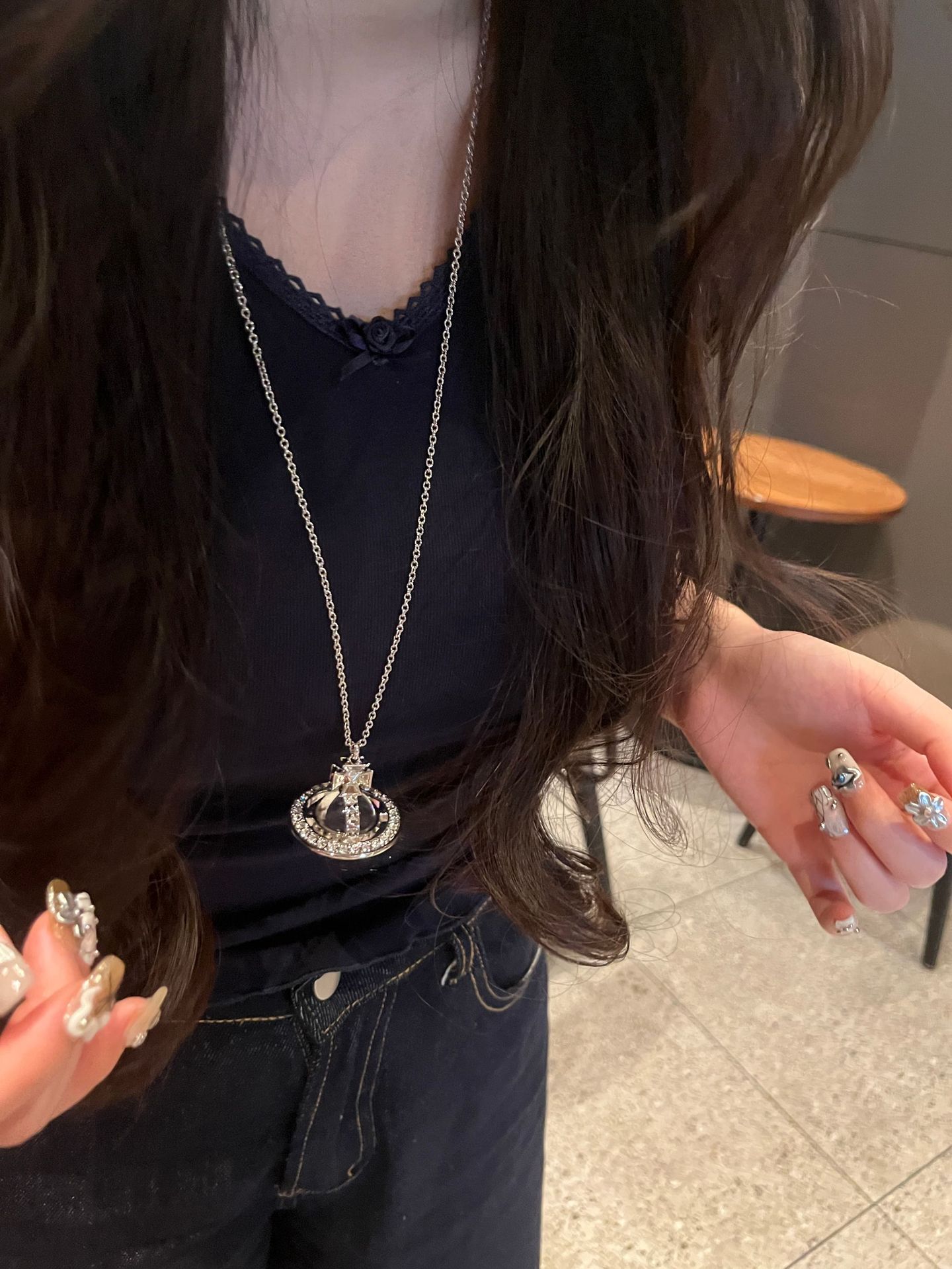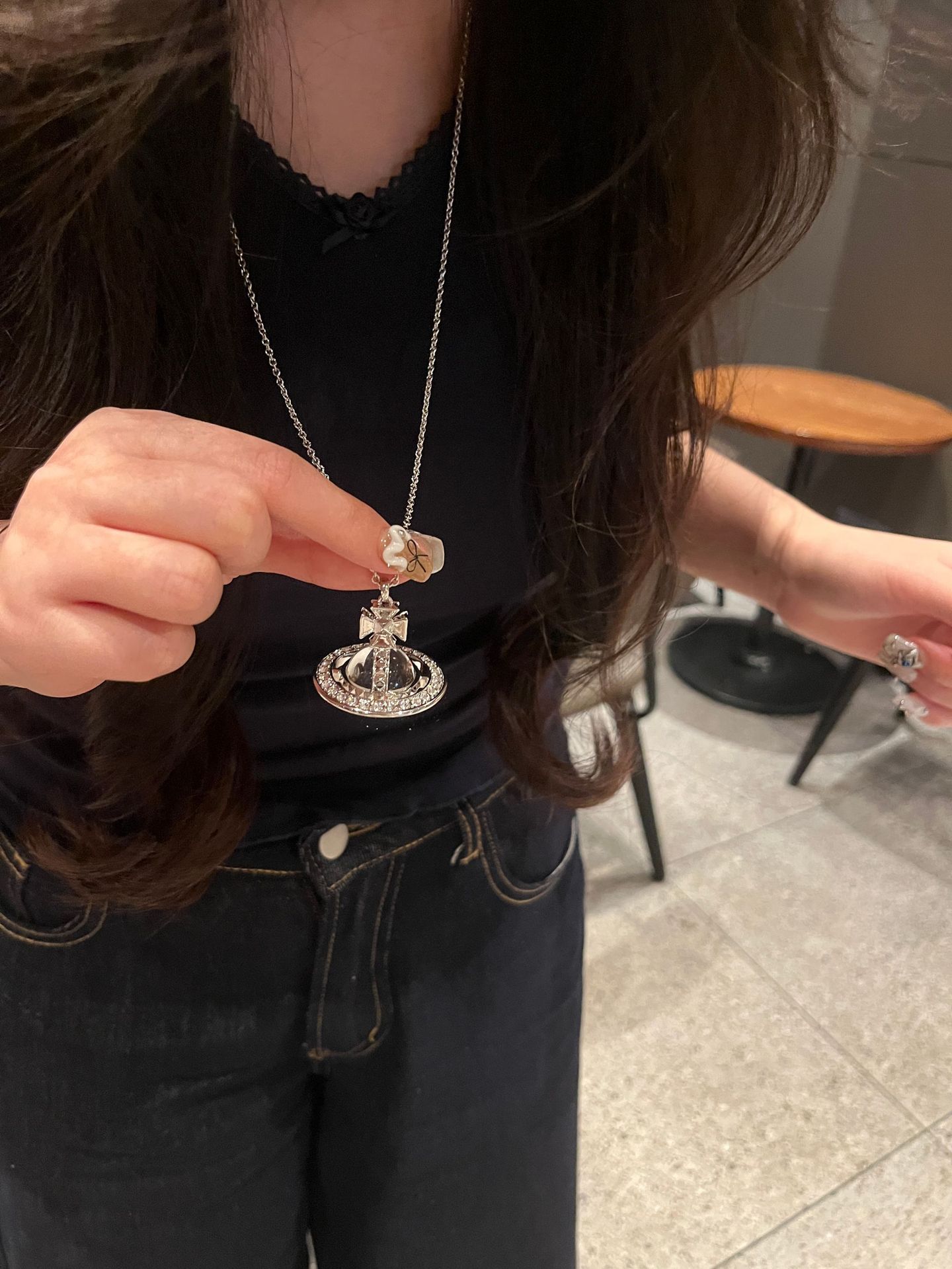 Queen Mother of the West Pina large rivet full diamond orb necklace high version popping pina three-dimensional Saturn necklace