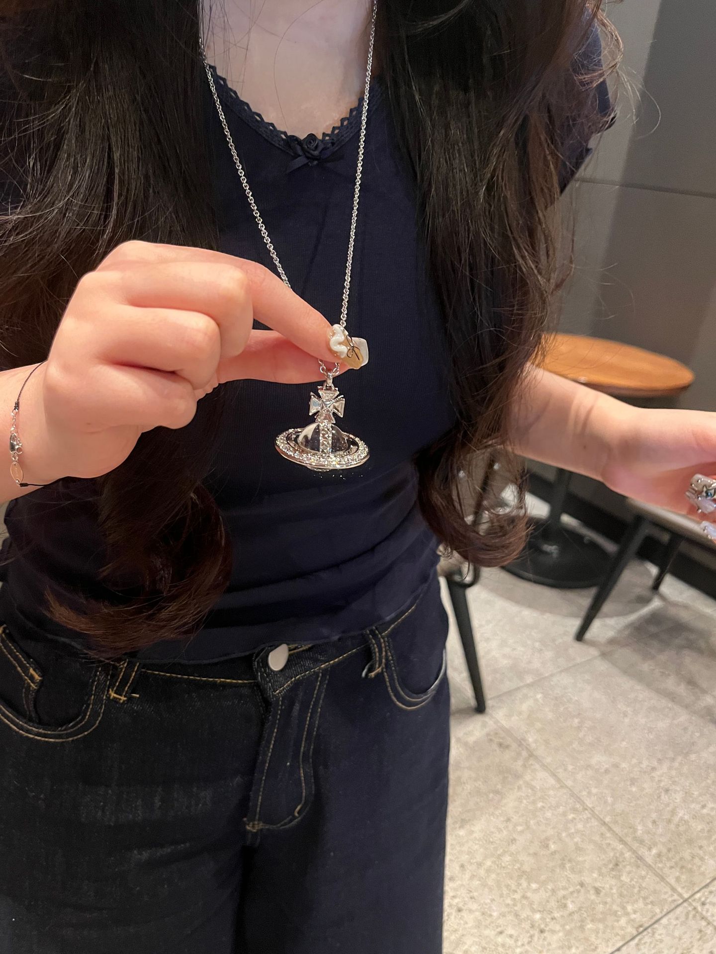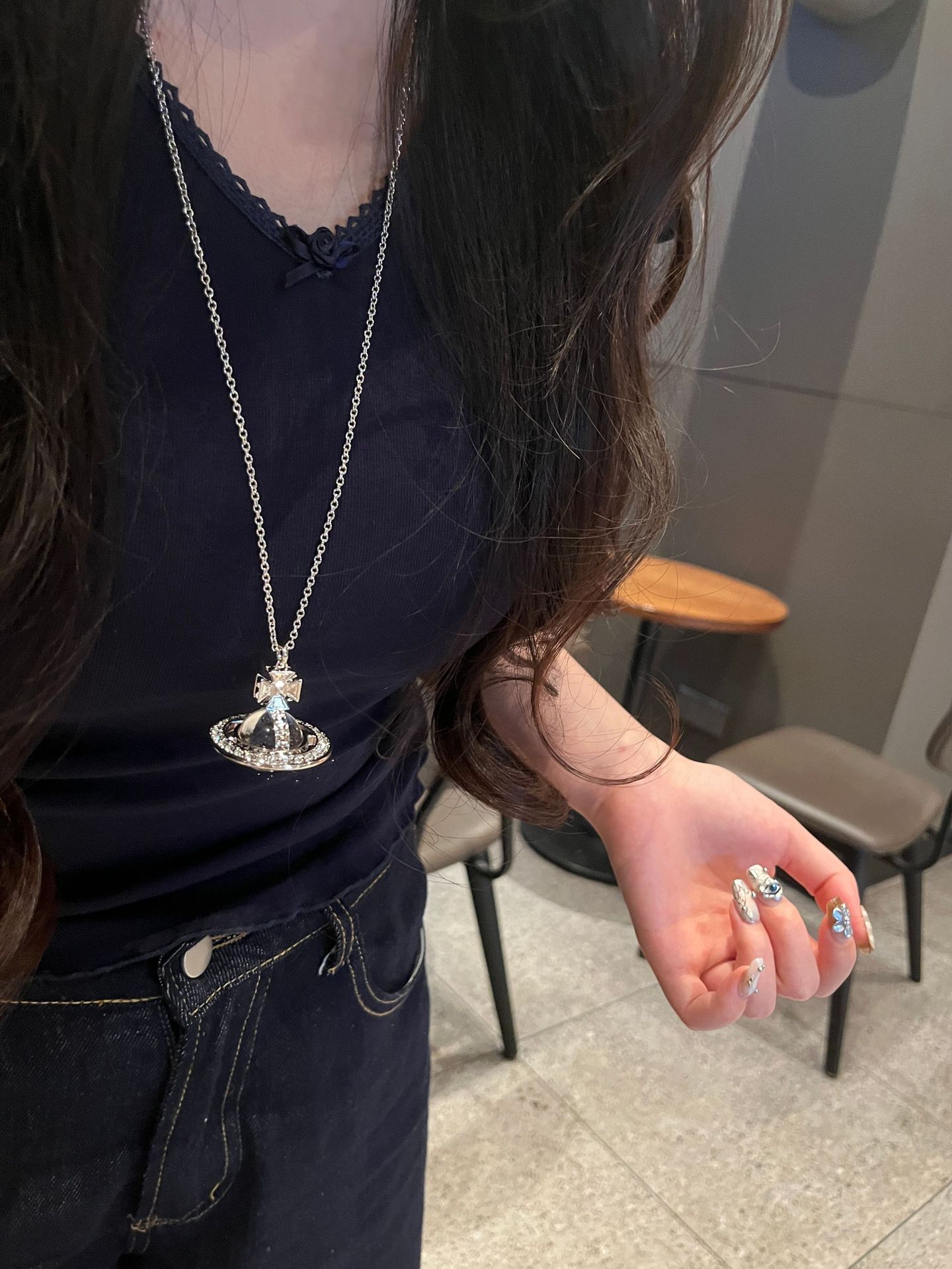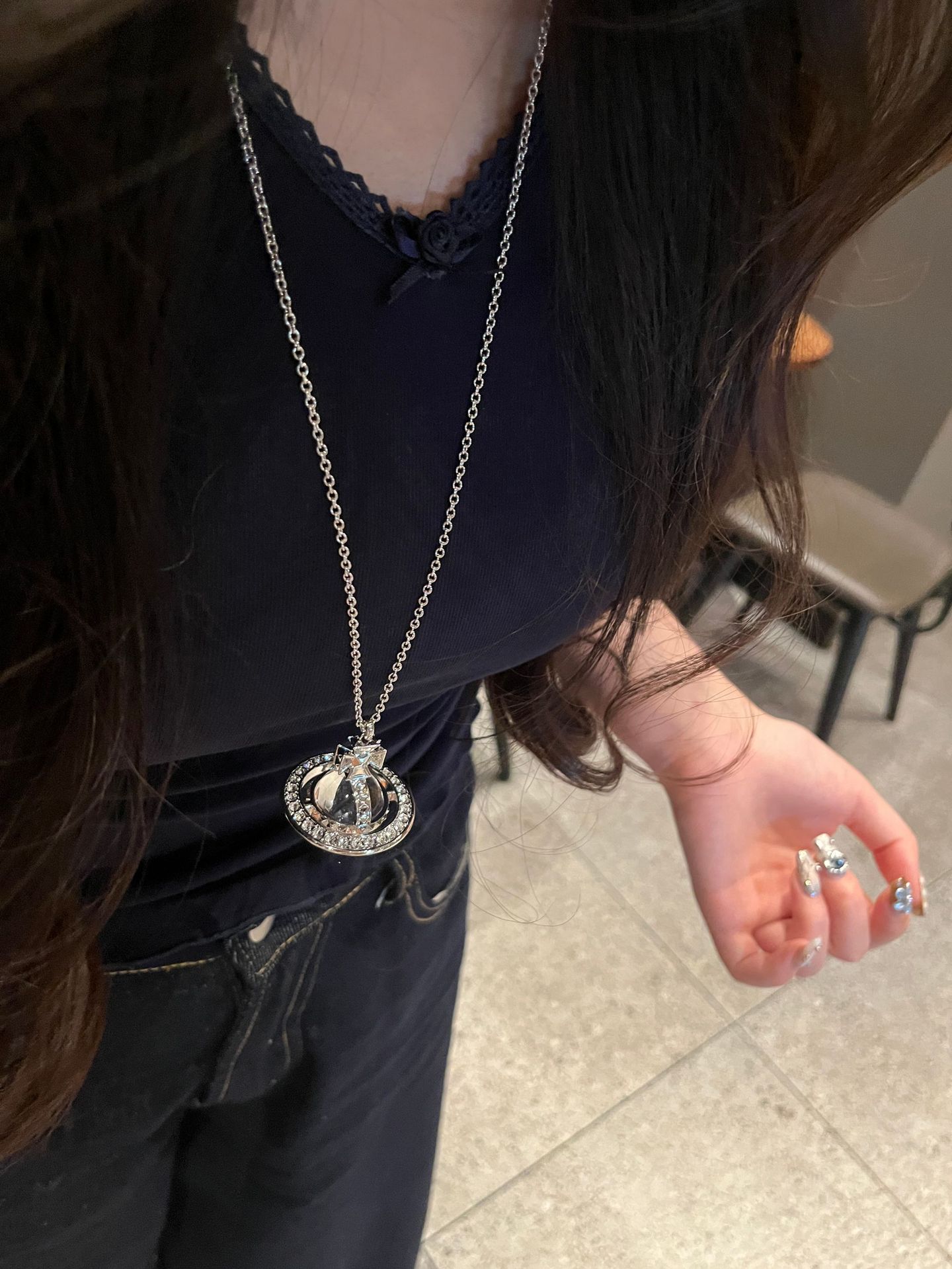 Queen Mother of the West Pina large rivet full diamond orb necklace high version popping pina three-dimensional Saturn necklace