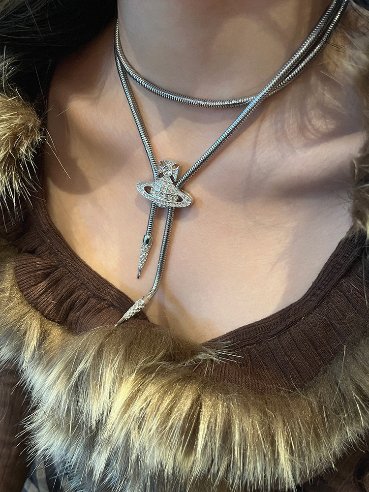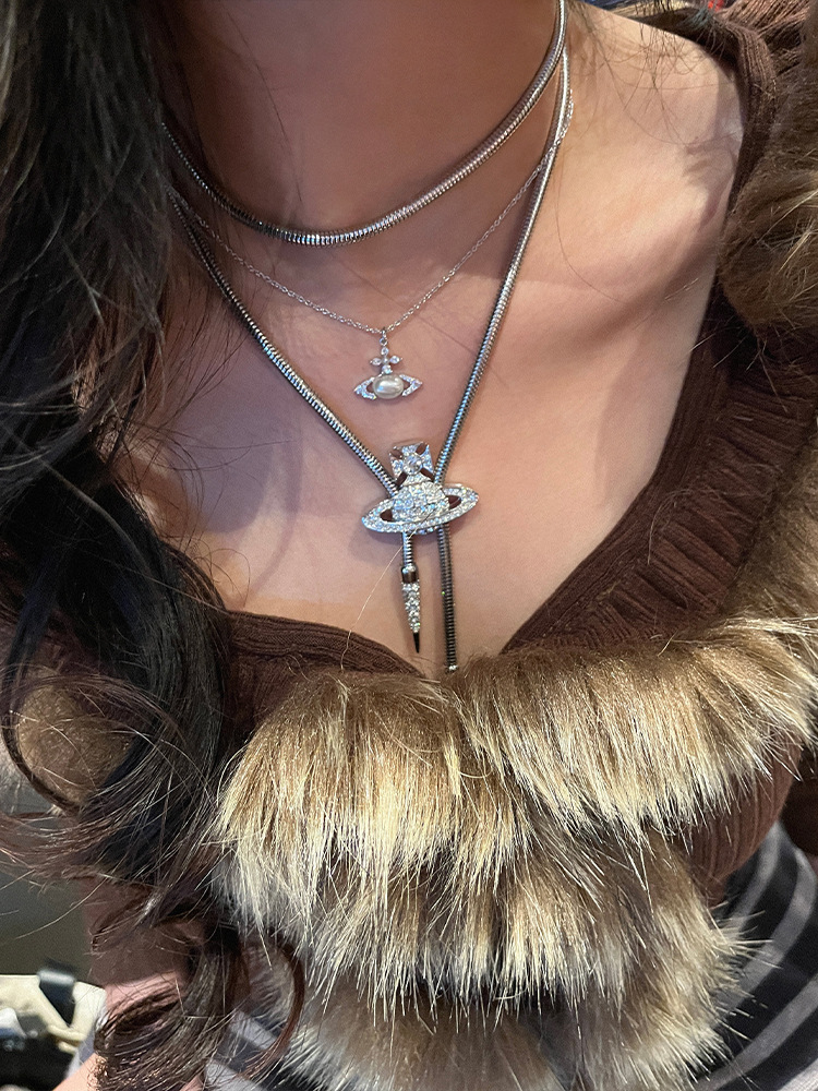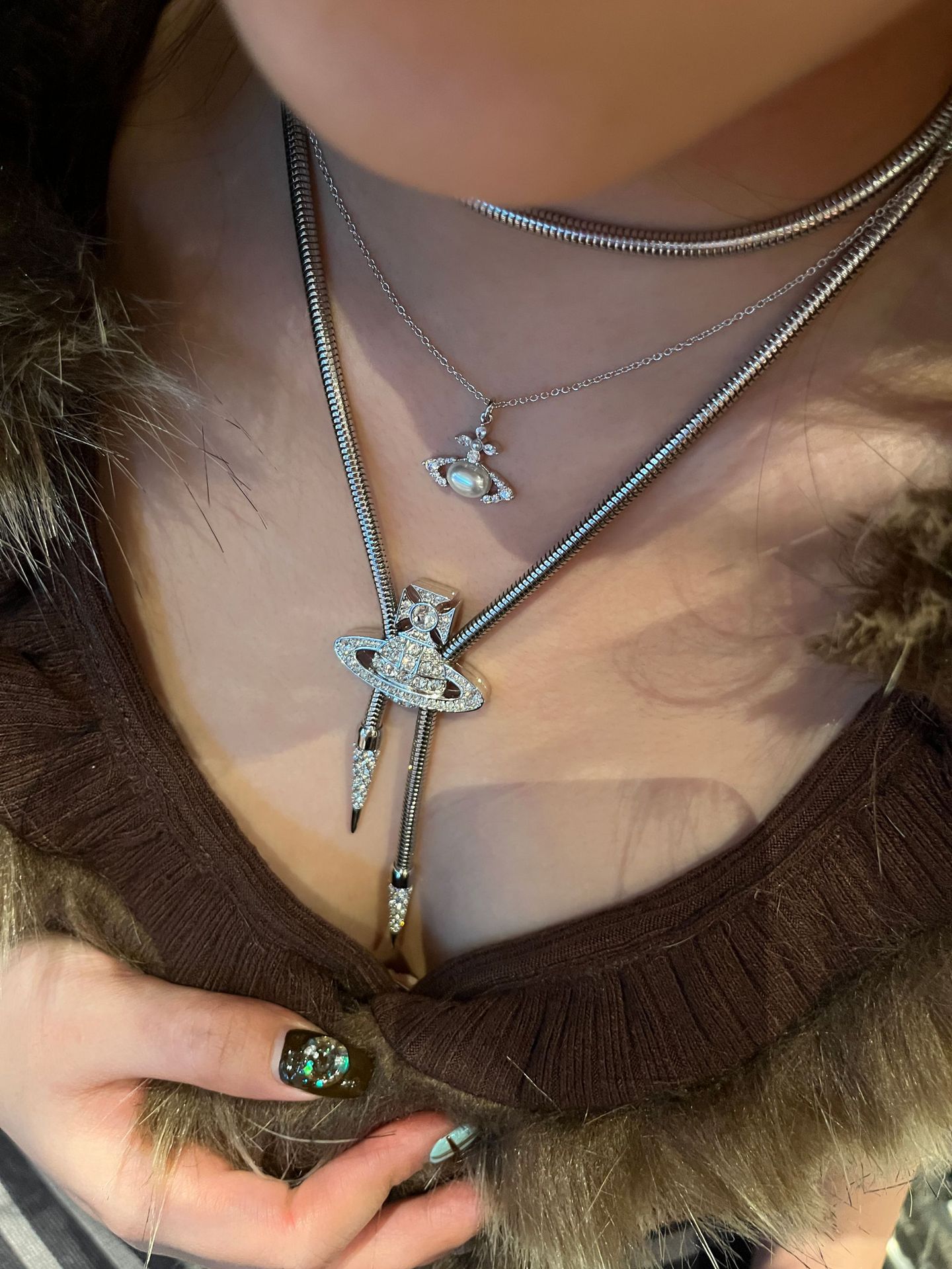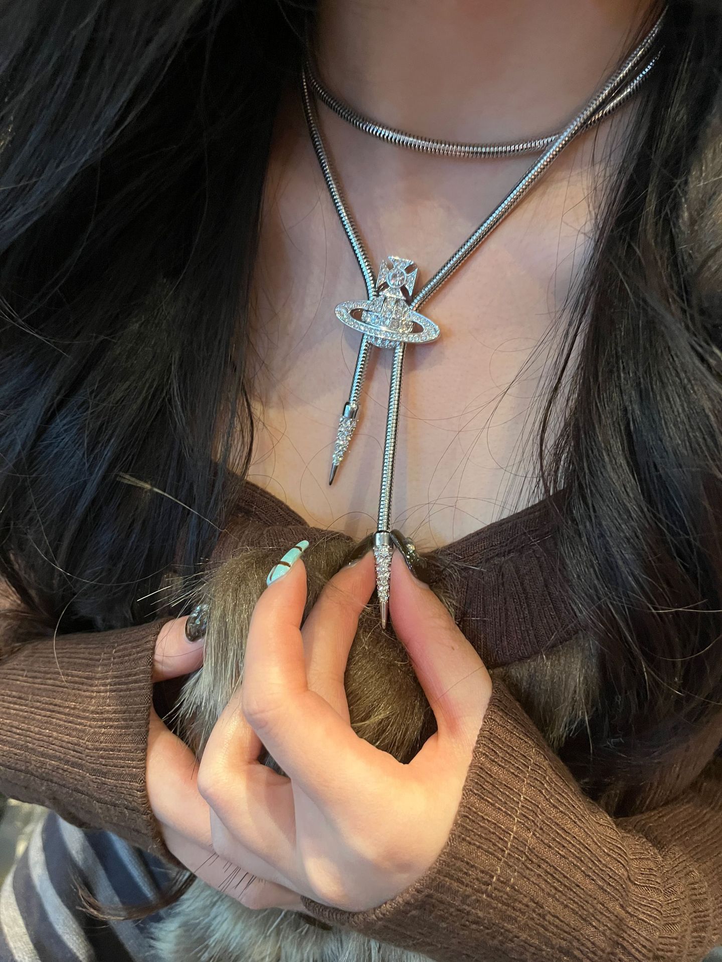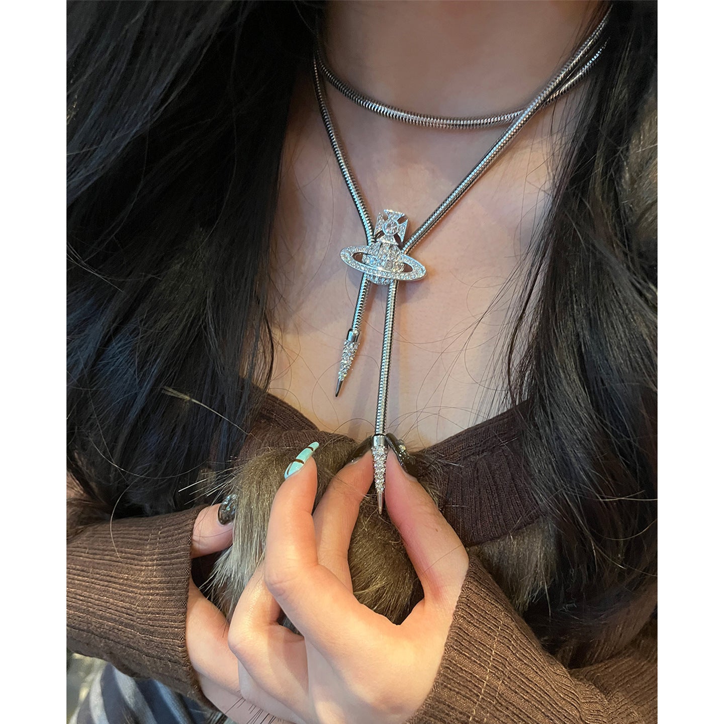 Queen Mother of the West Seiko magnetic Saturn tie knot necklace long Cuban sweater chain one two-wear clavicle chain
