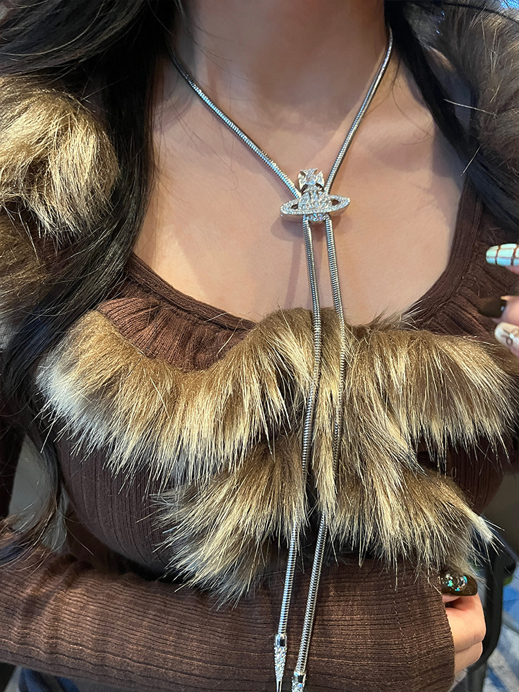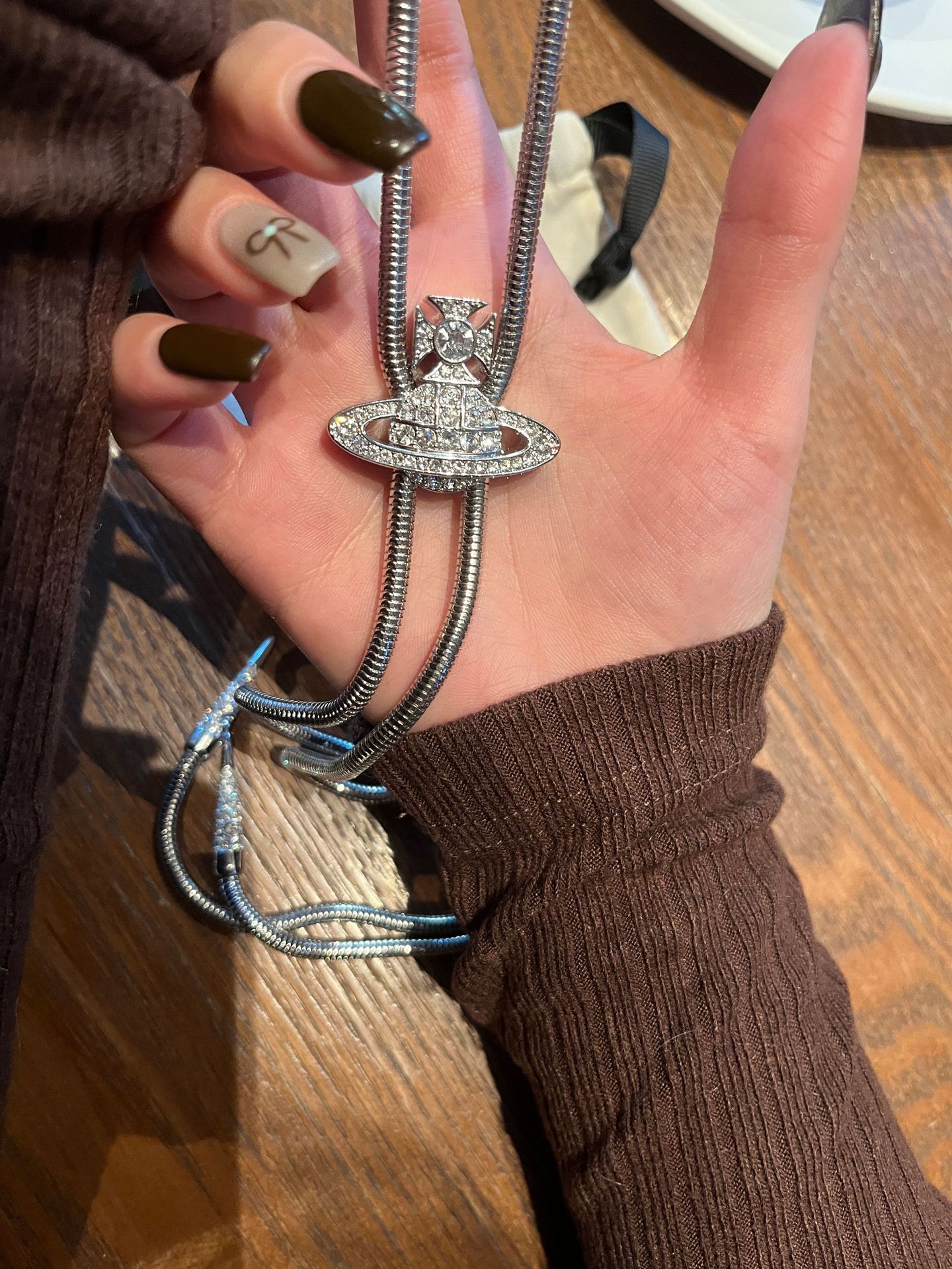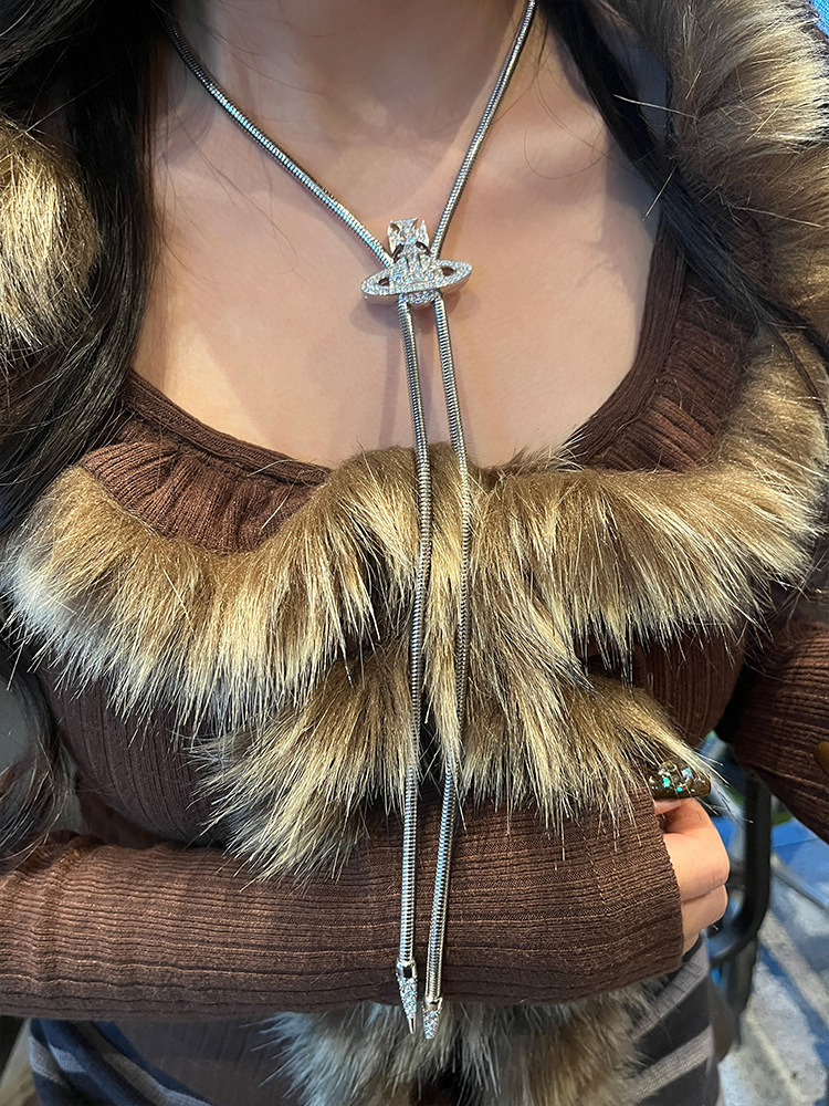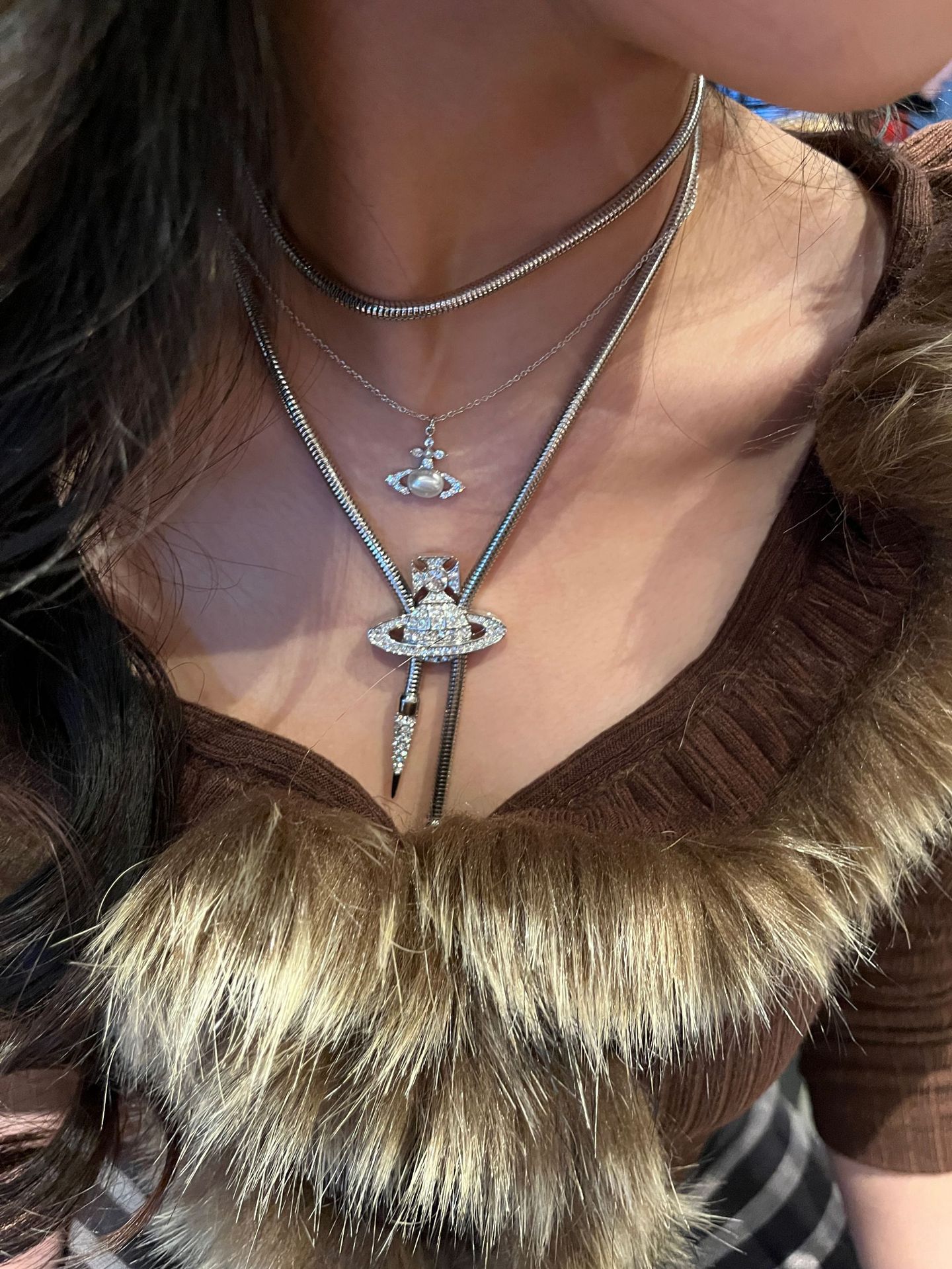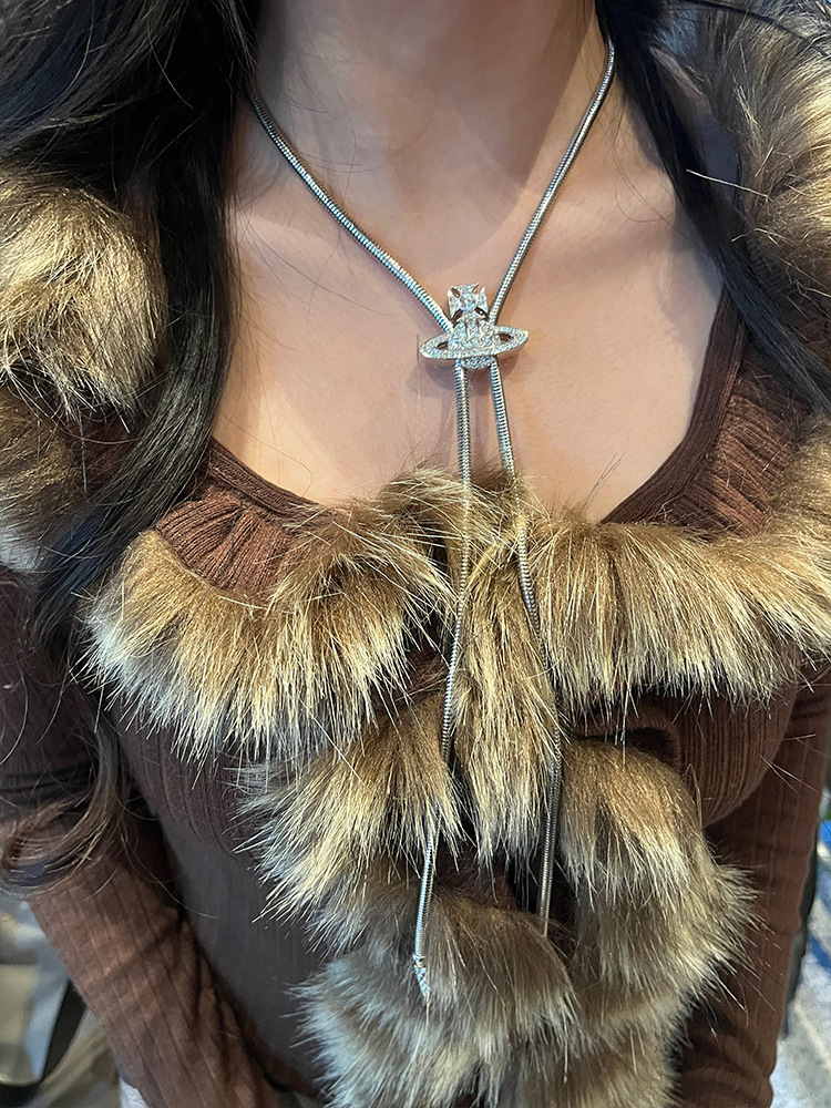 Queen Mother of the West Seiko magnetic Saturn tie knot necklace long Cuban sweater chain one two-wear clavicle chain