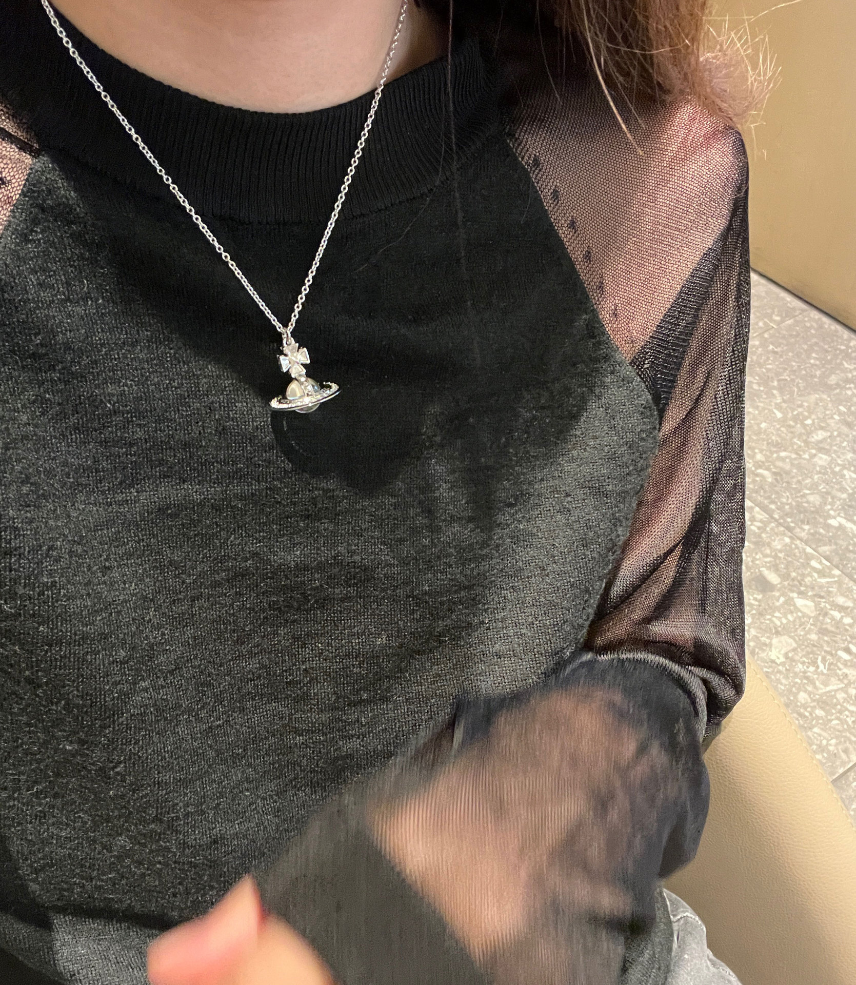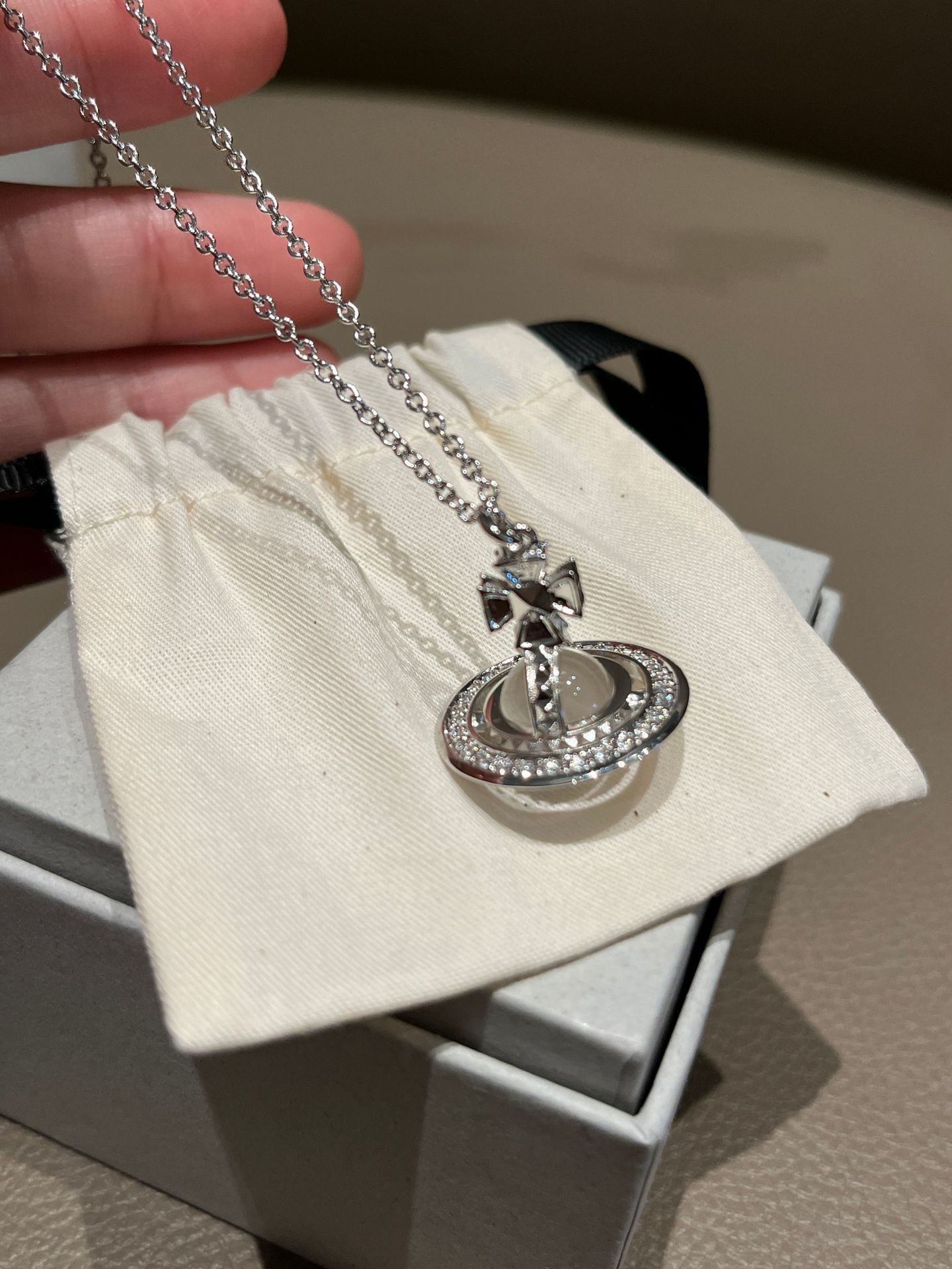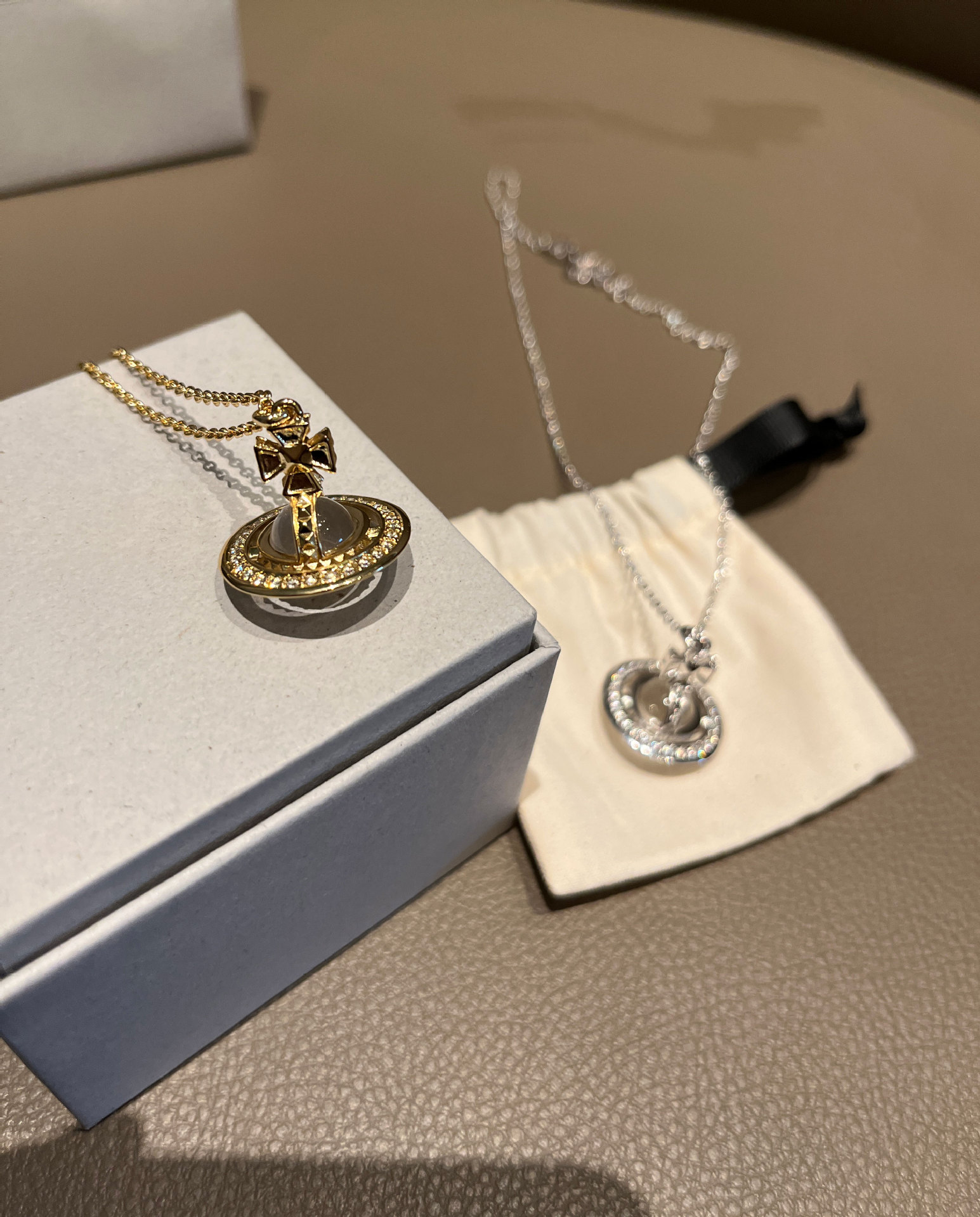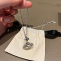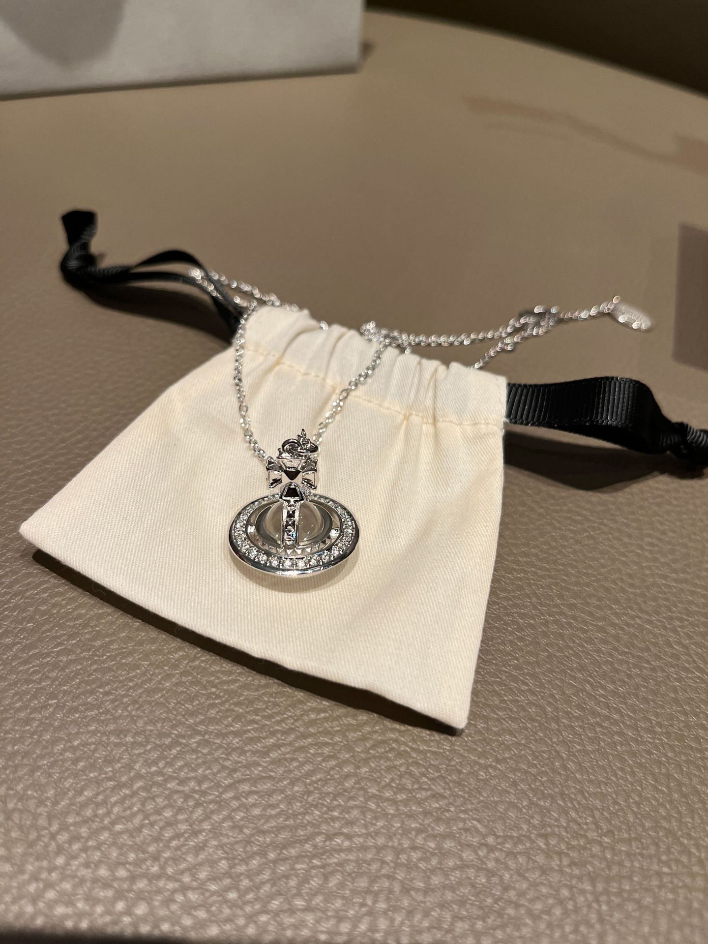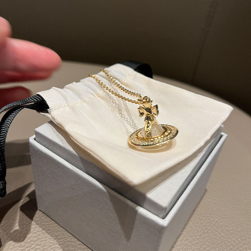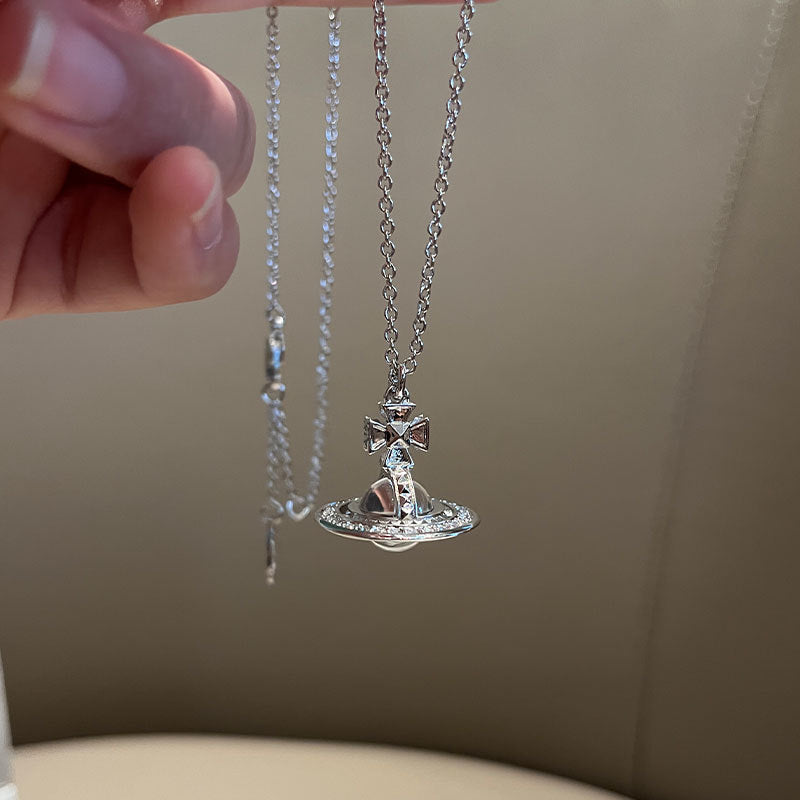 Queen Mother Pina Medium Stud All-Diamond Orb Necklace Gold Silver Pina Three-Dimensional Saturn Necklace