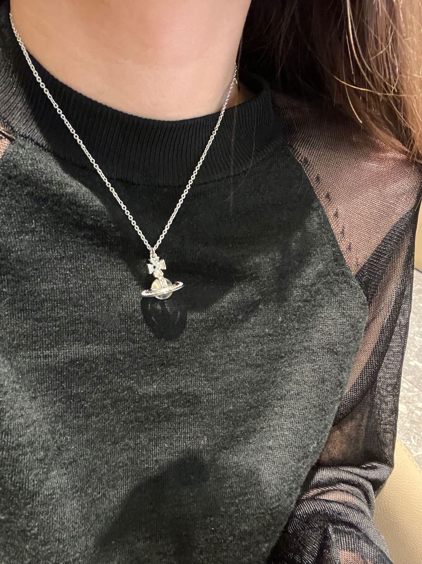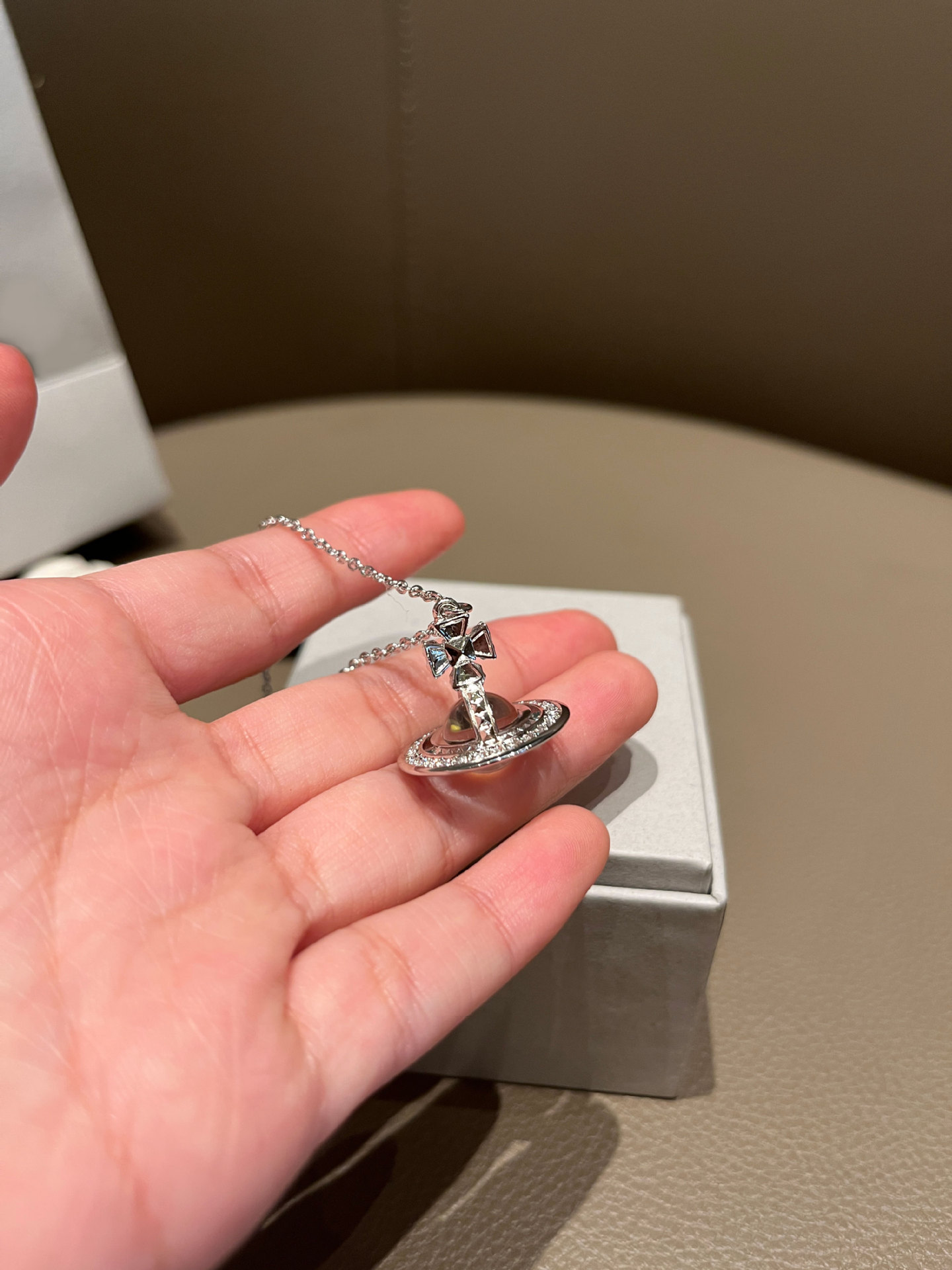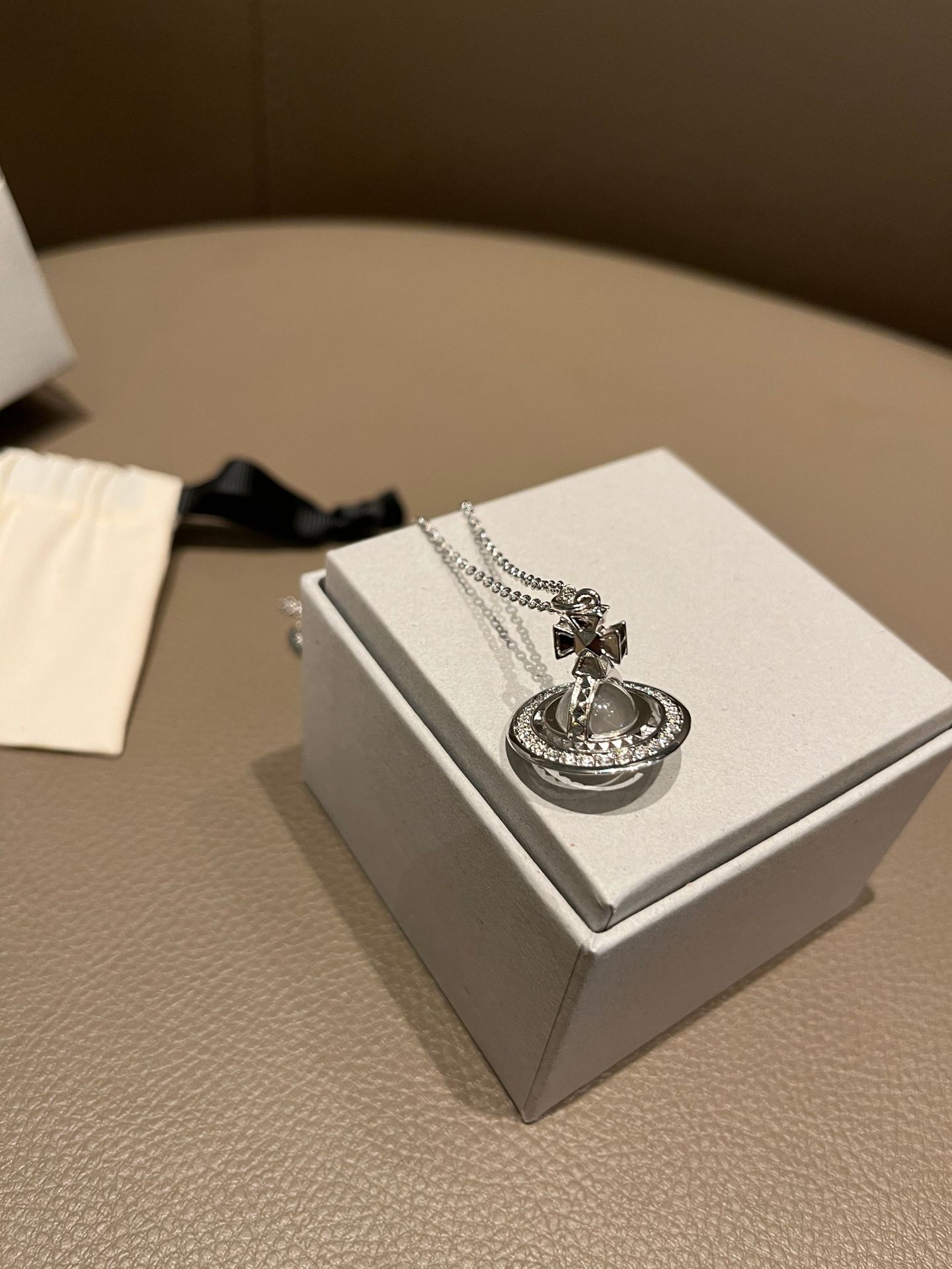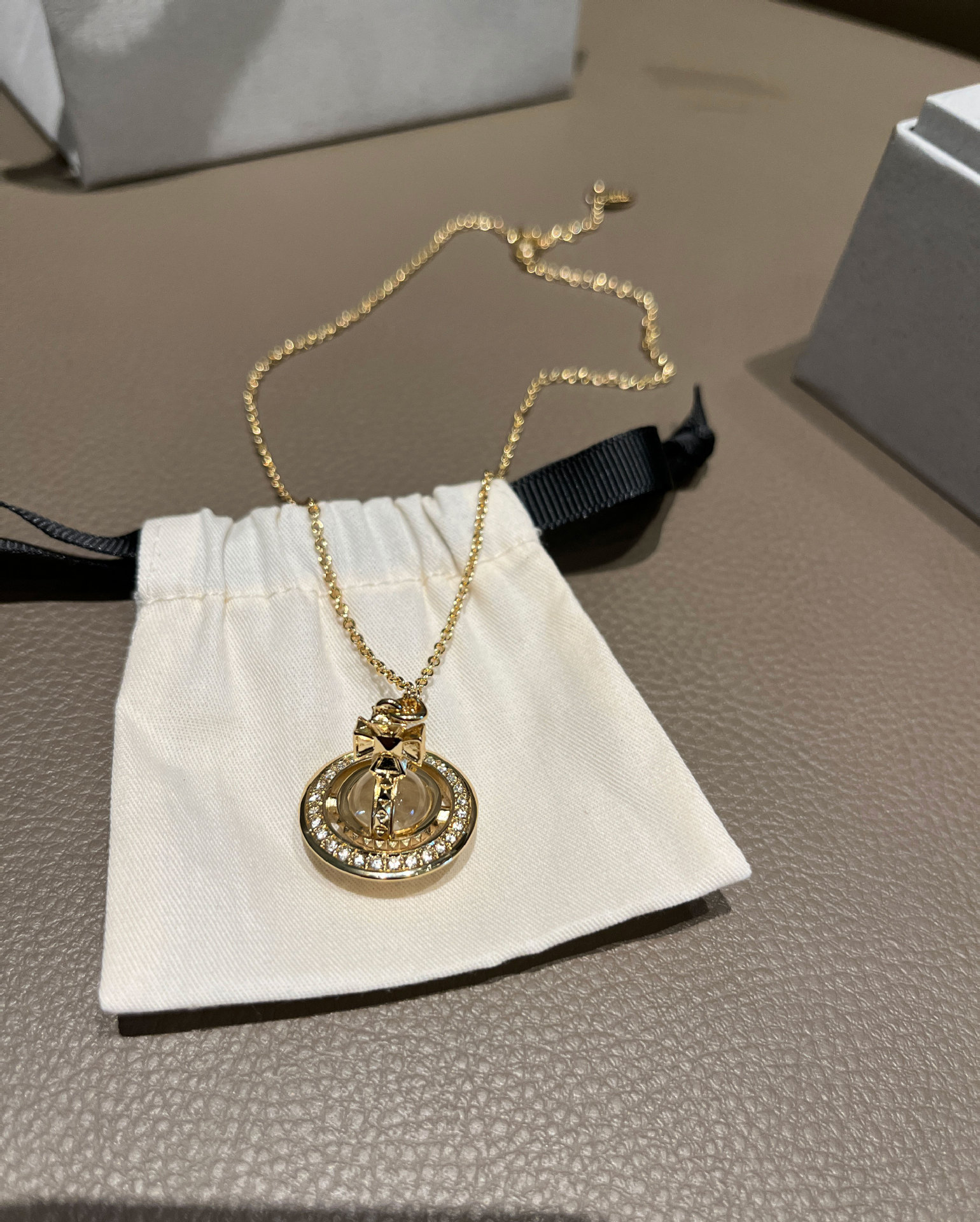 Queen Mother Pina Medium Stud All-Diamond Orb Necklace Gold Silver Pina Three-Dimensional Saturn Necklace