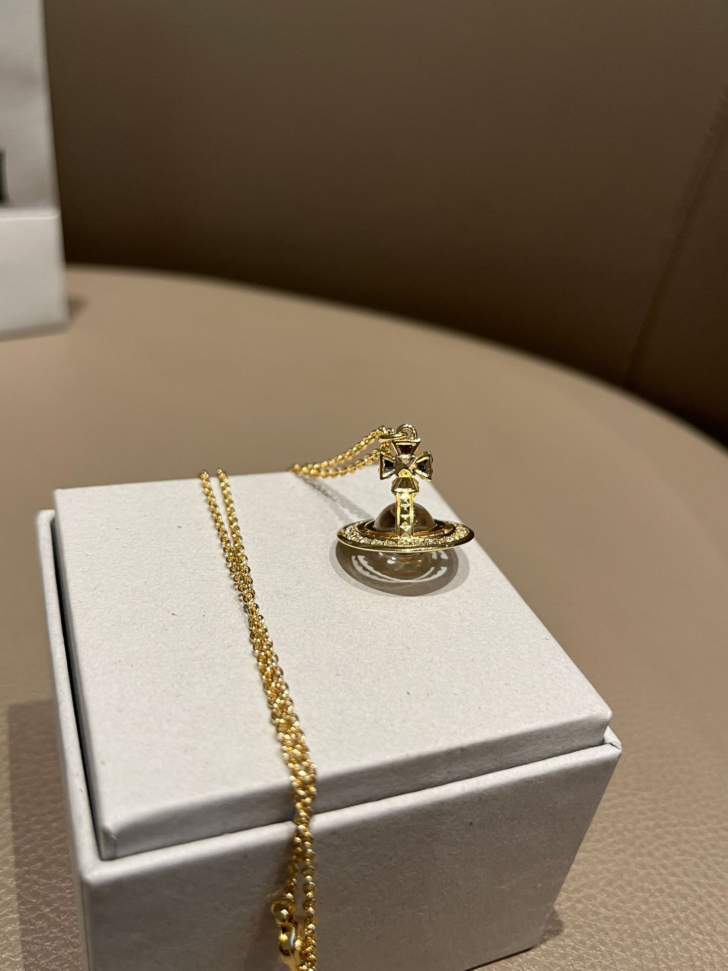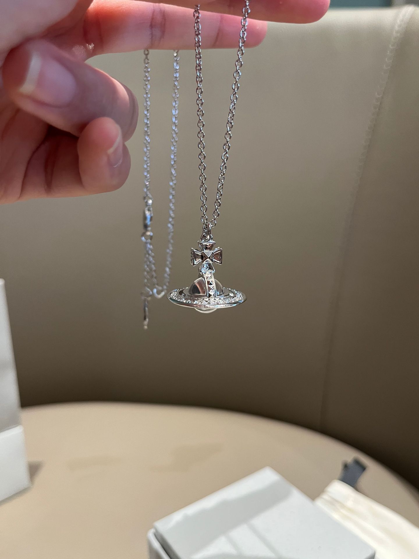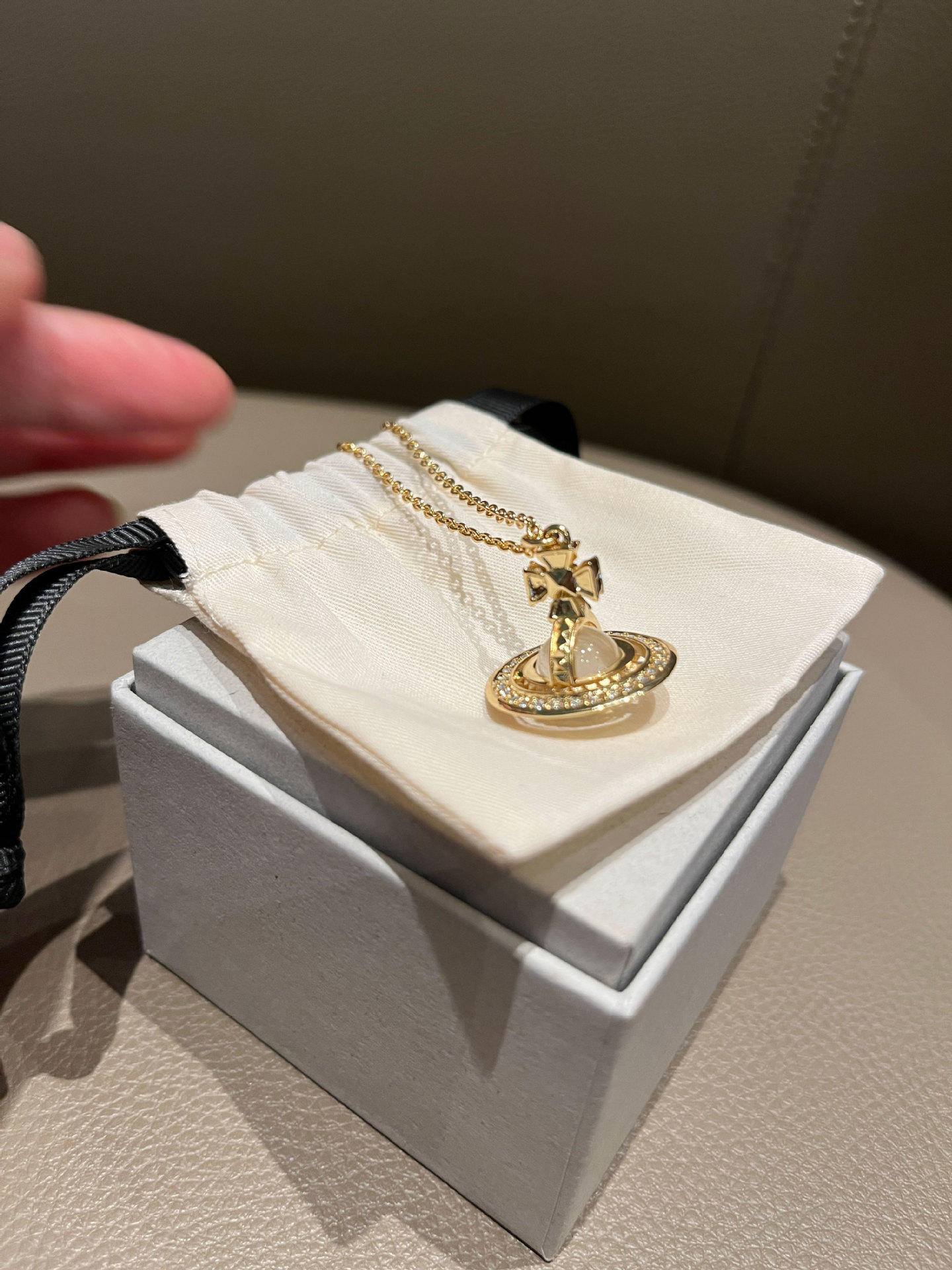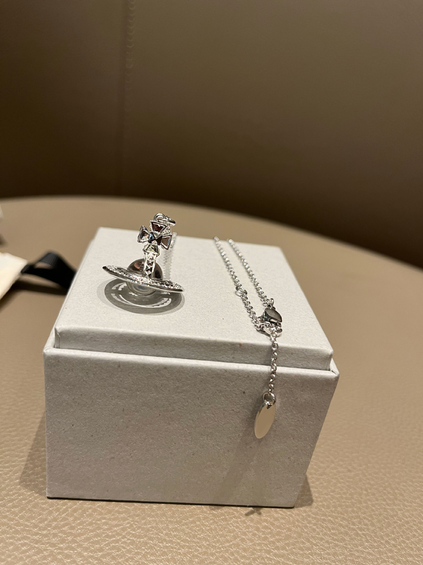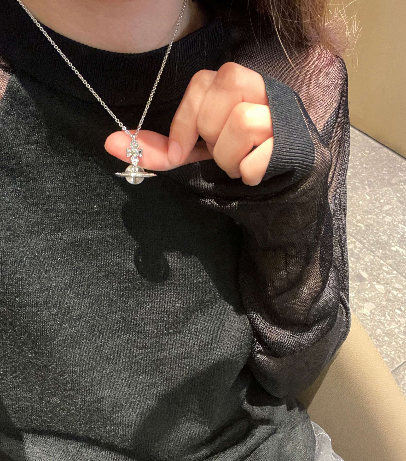 Queen Mother Pina Medium Stud All-Diamond Orb Necklace Gold Silver Pina Three-Dimensional Saturn Necklace