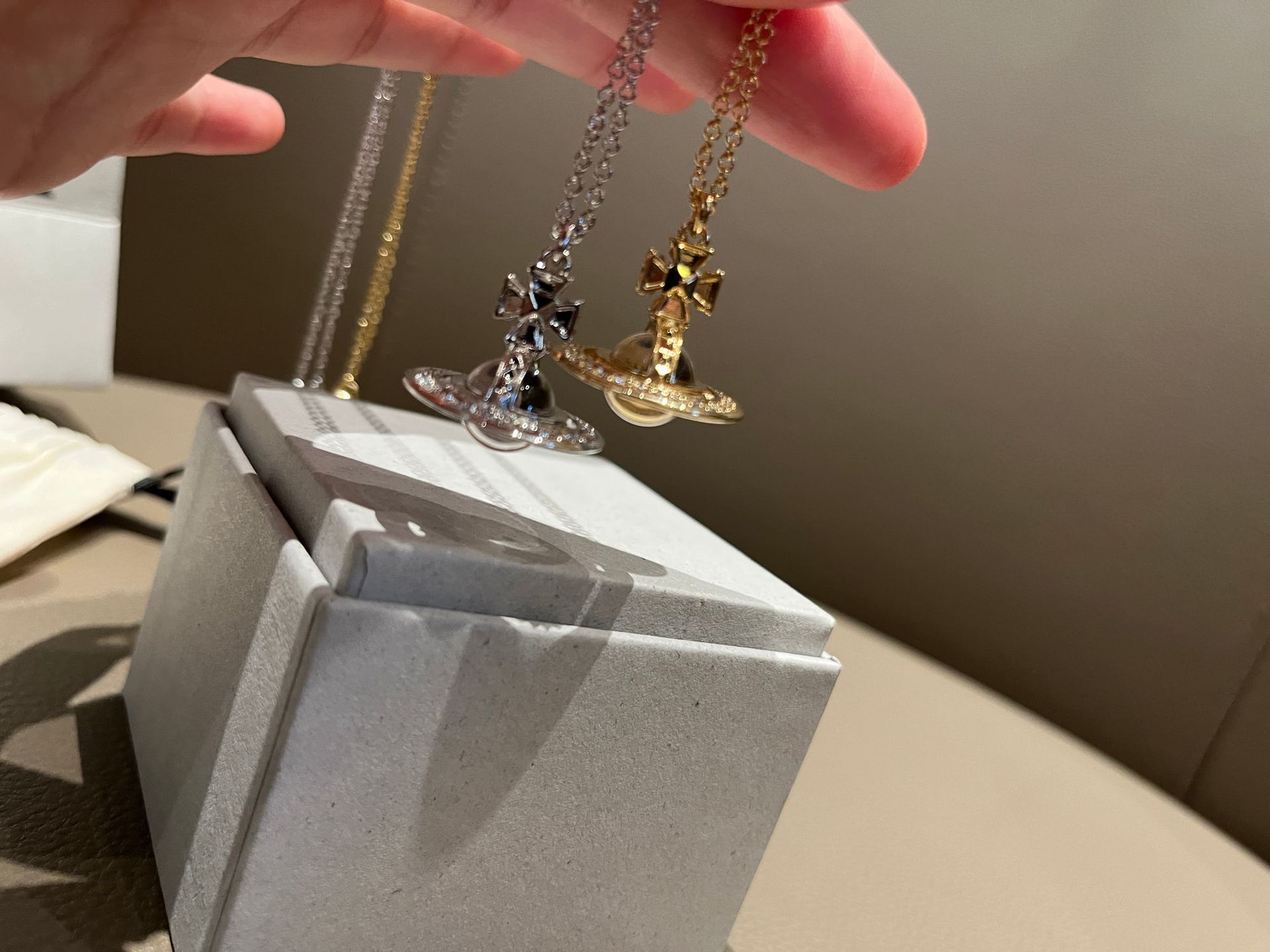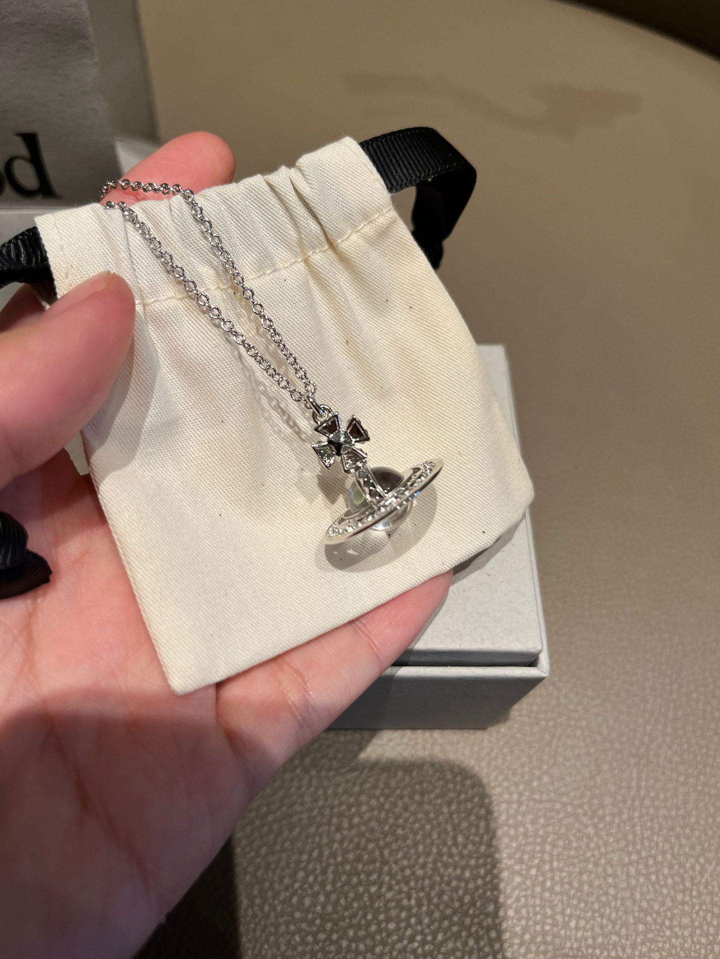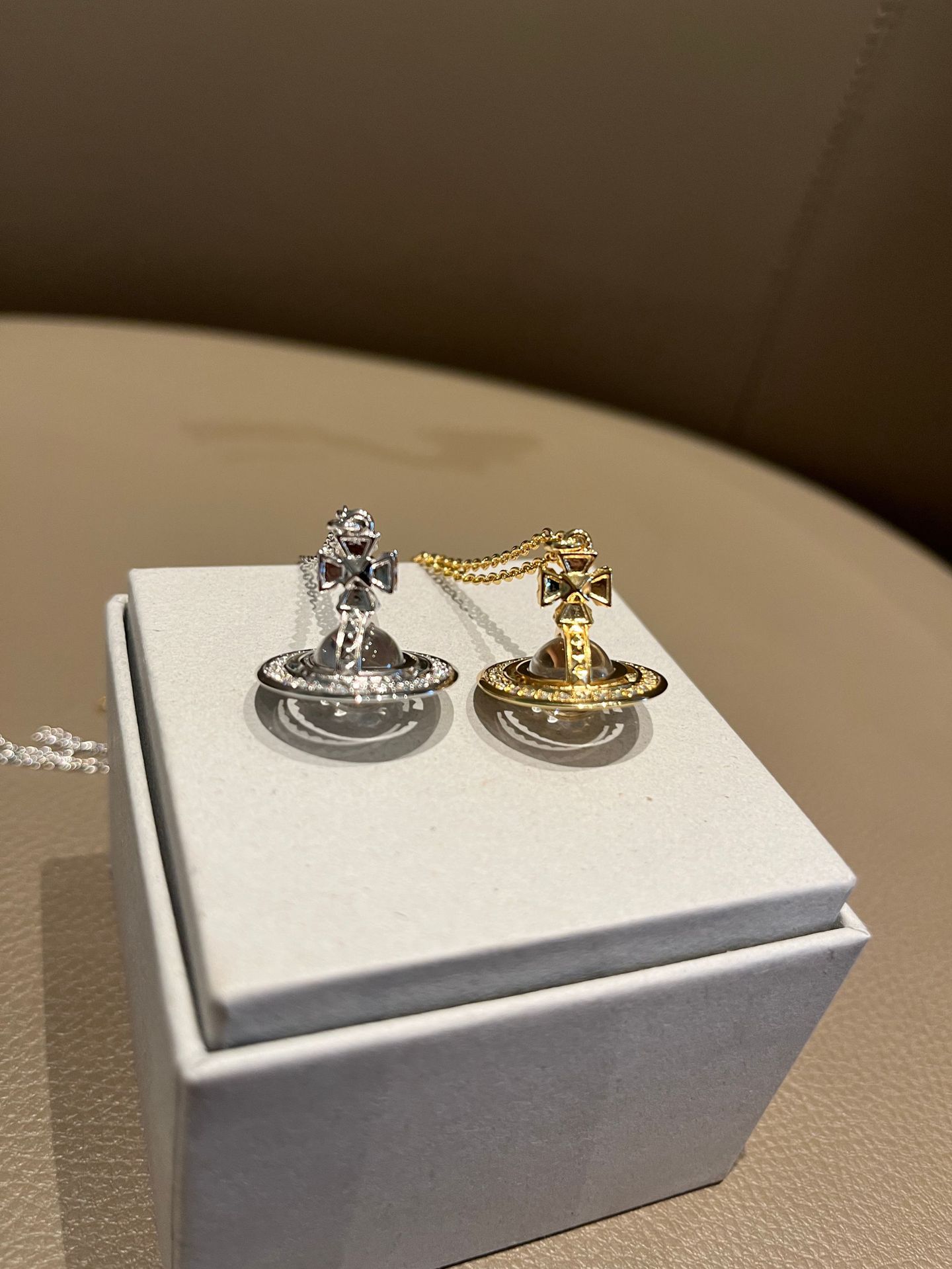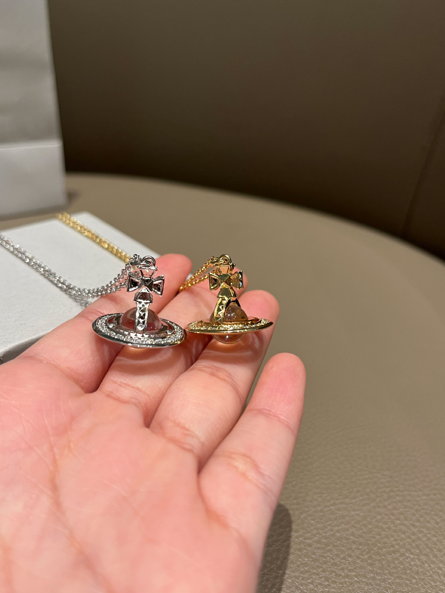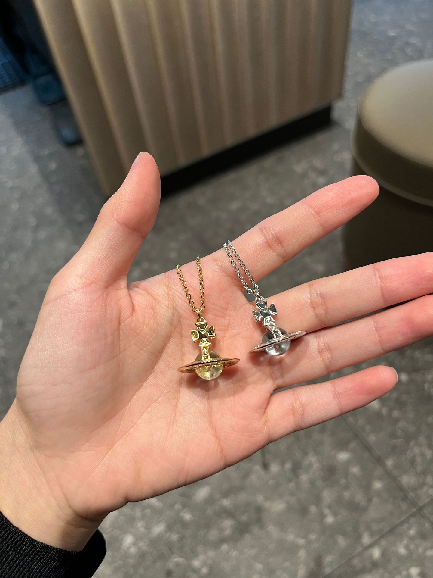 Queen Mother Pina Medium Stud All-Diamond Orb Necklace Gold Silver Pina Three-Dimensional Saturn Necklace