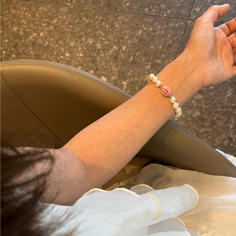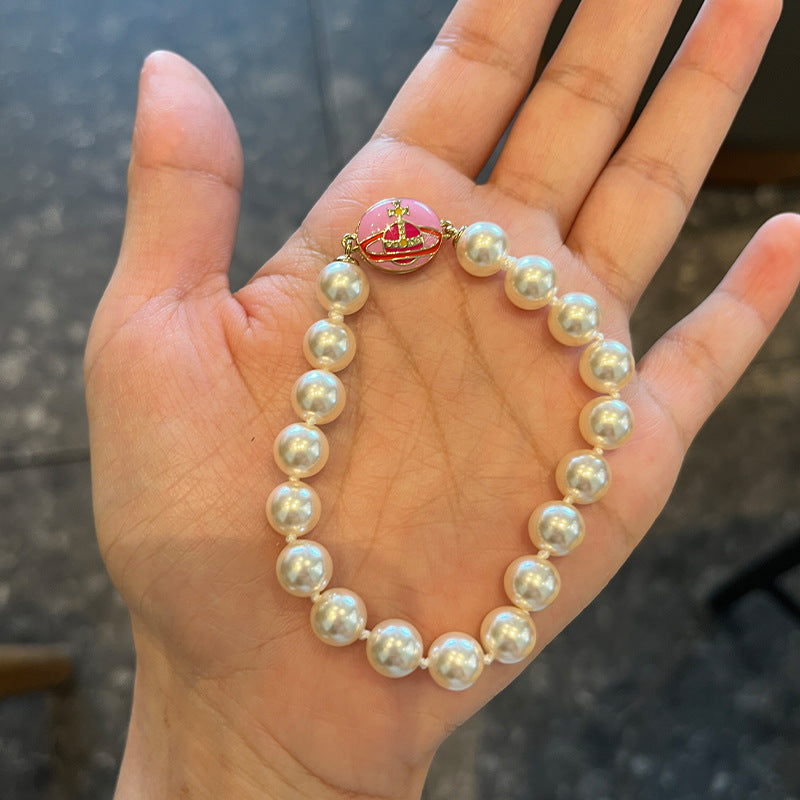 Queen Mother West color enamel clasp pearl bracelet new magnetic clasp bracelet magnetic enamel Saturn pearl bracelet