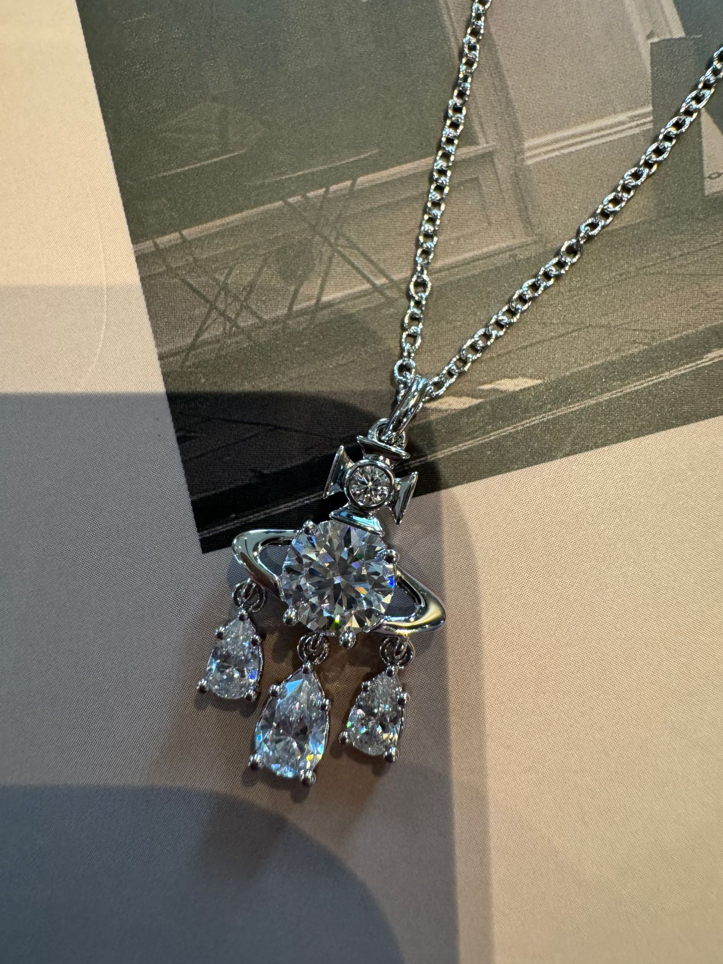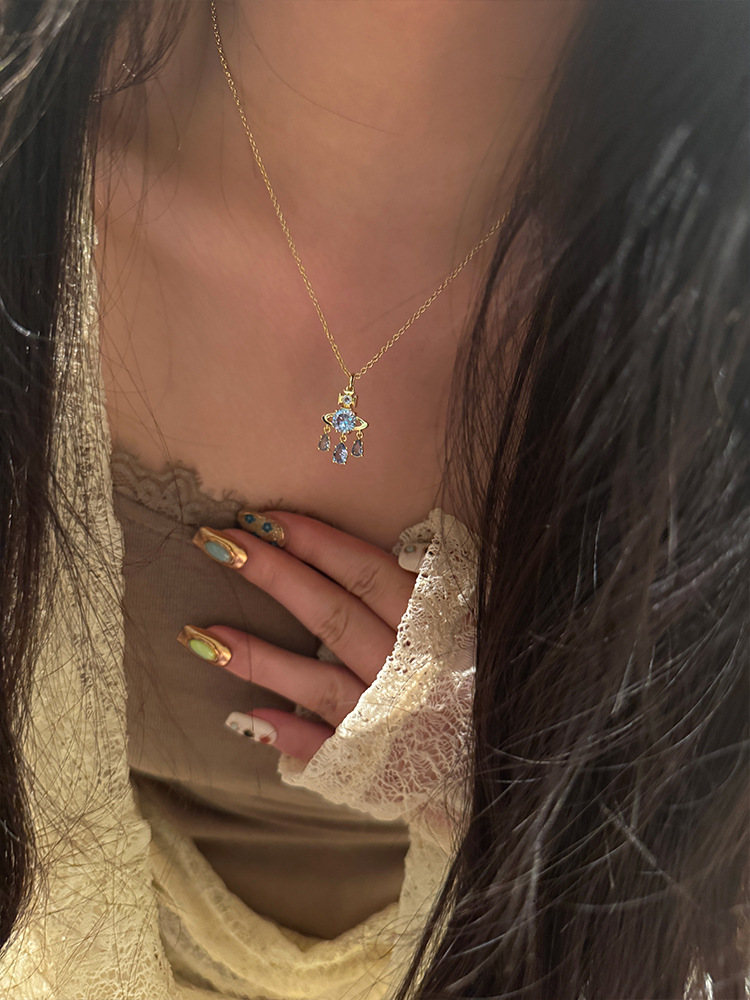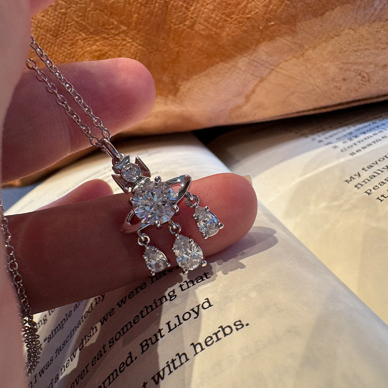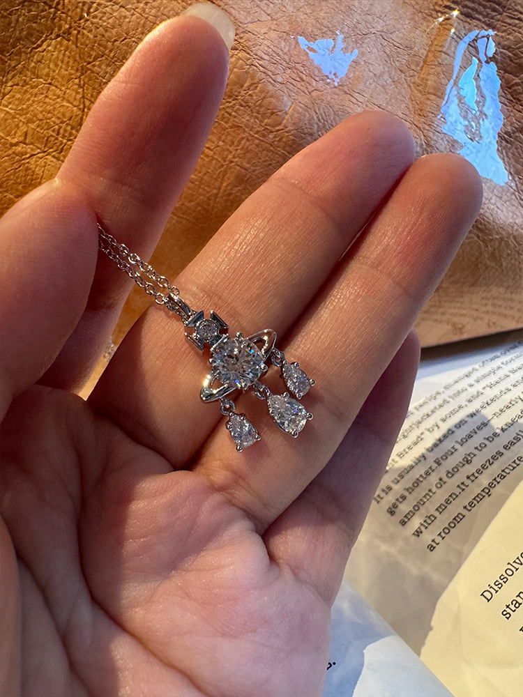 Queen Mother West Dream Catcher Saturn Necklace Trumpet Pop Crystal Diamond Mermaid Tear Pendant Clavicle Chain Live Broadcast Explosive Fashion