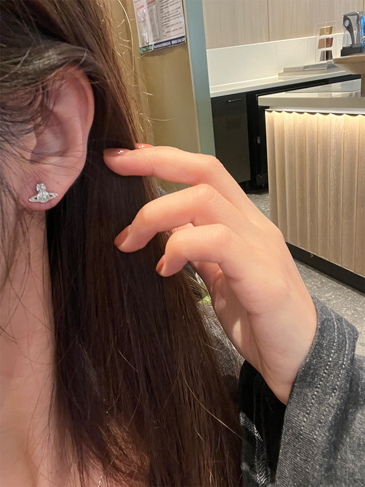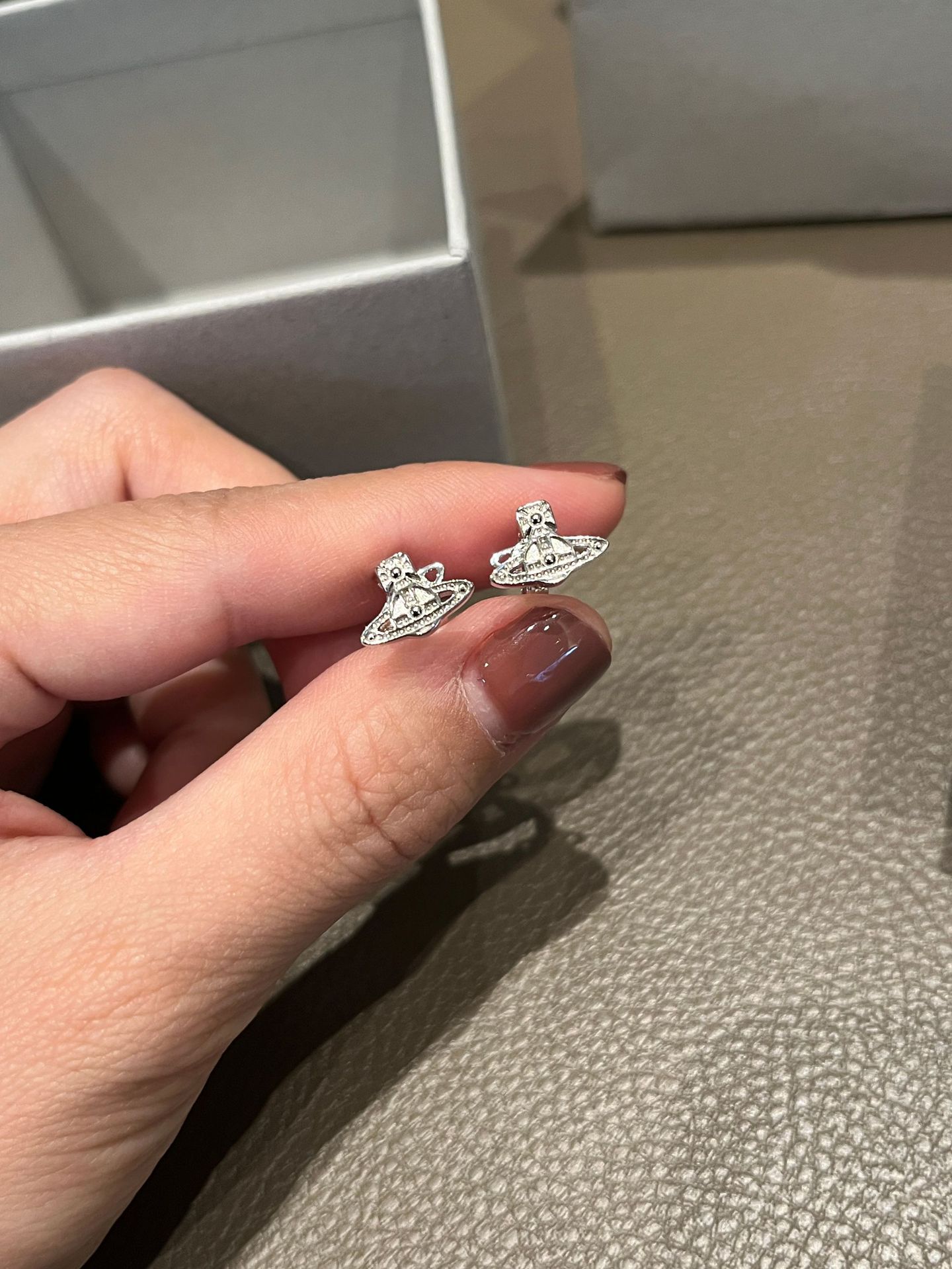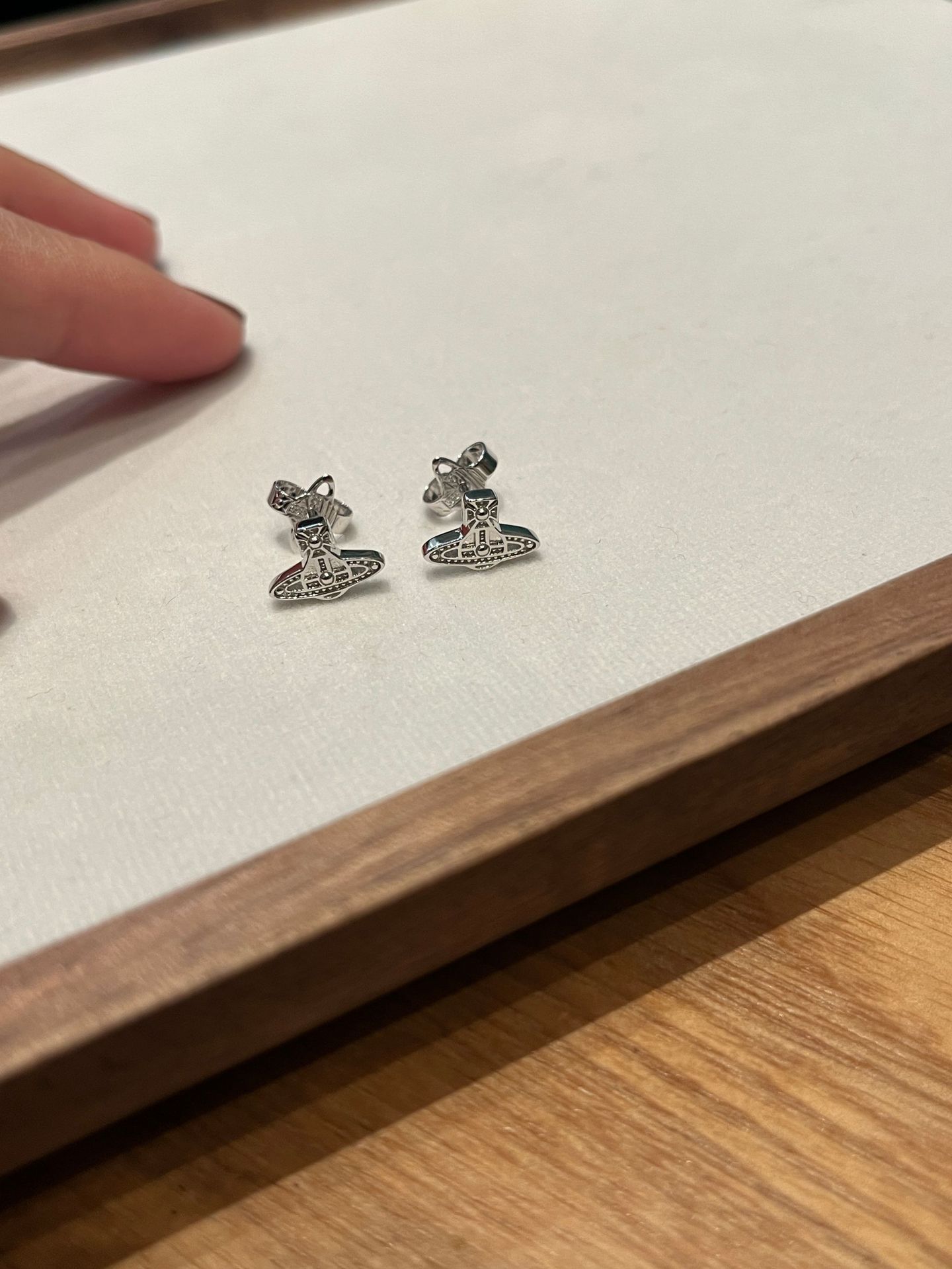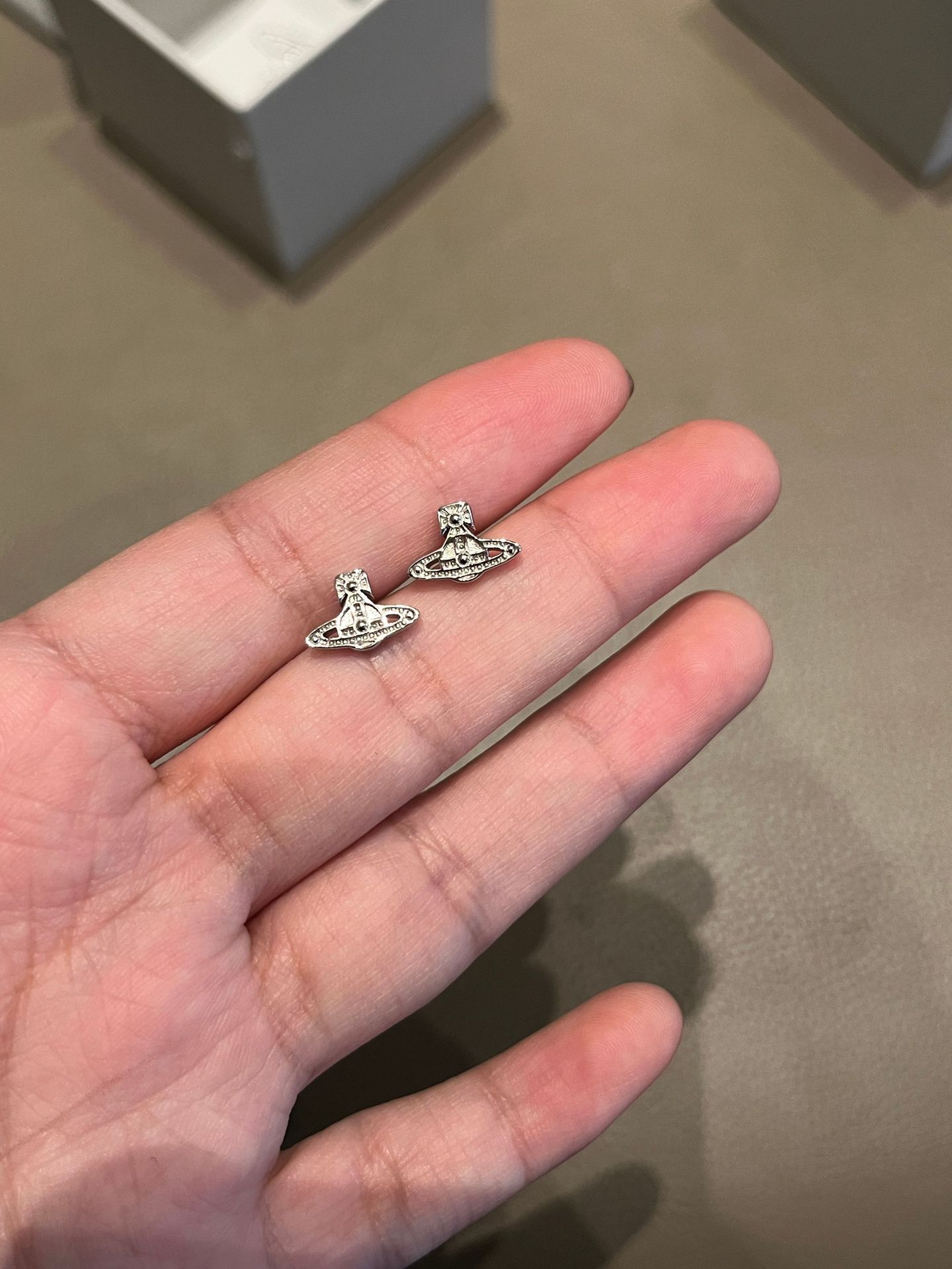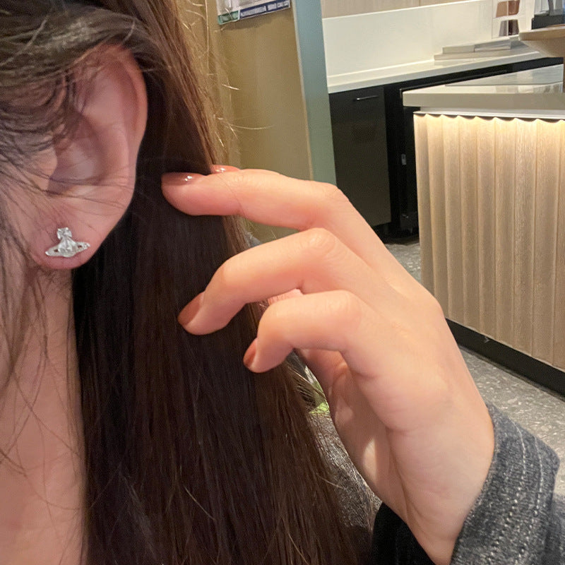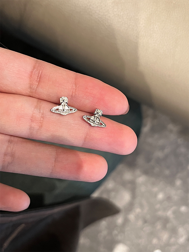 Queen Mother West OSLO Embossed Mini Saturn Stud Earrings 925 Sterling Silver Mini Flat Small Saturn Earrings
