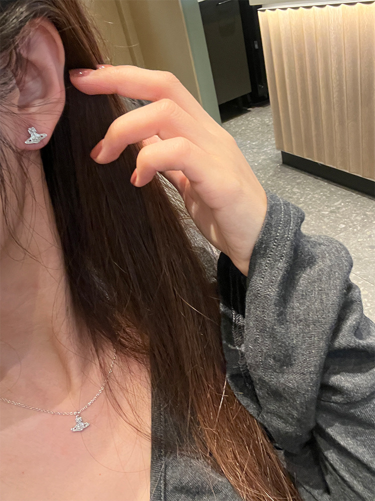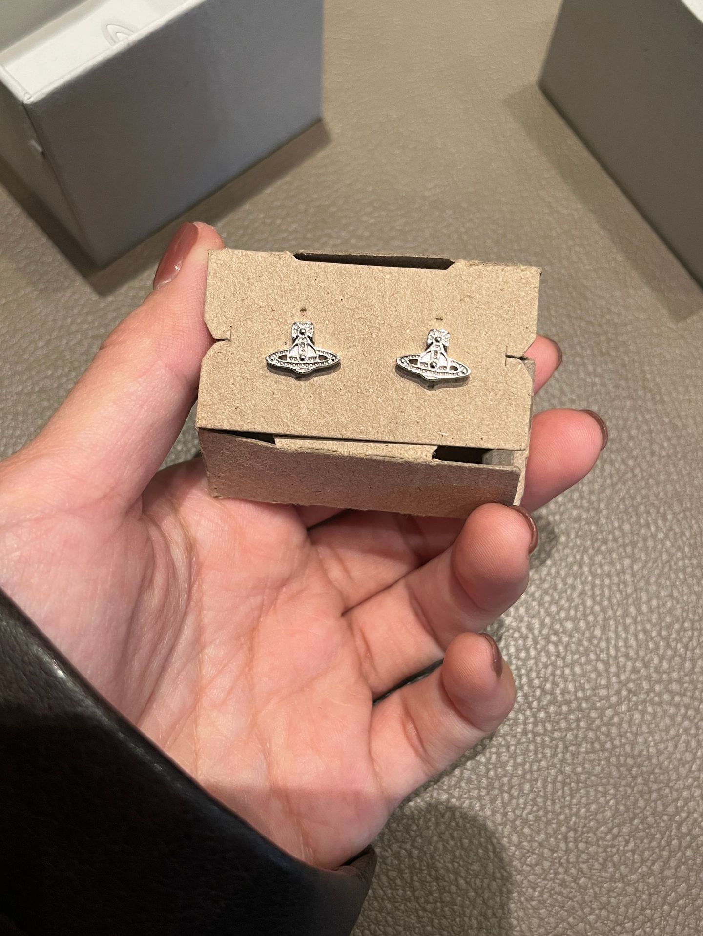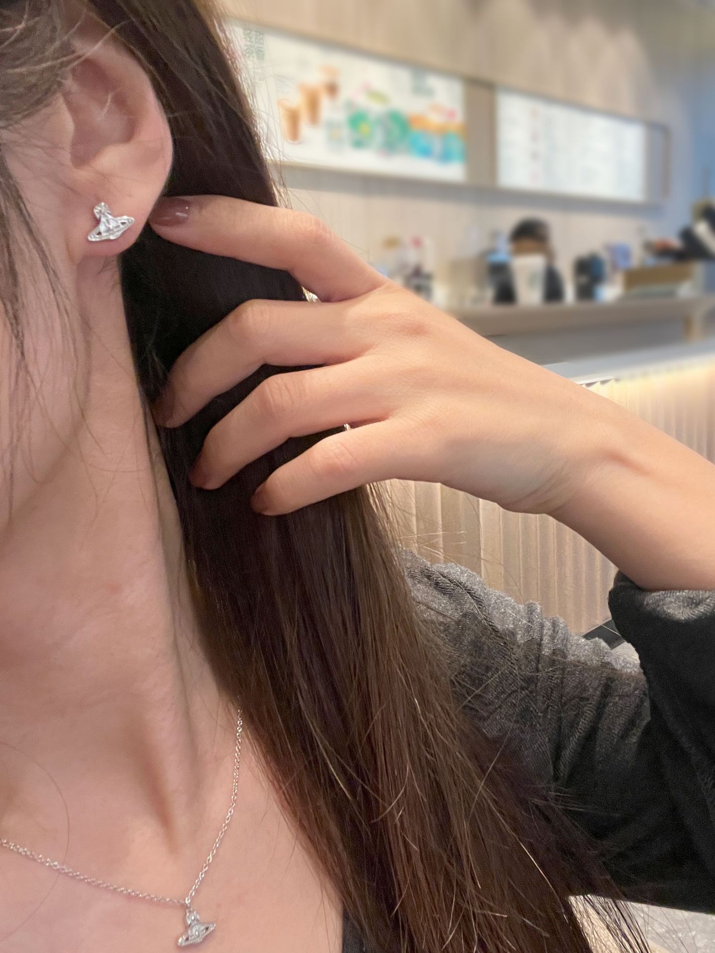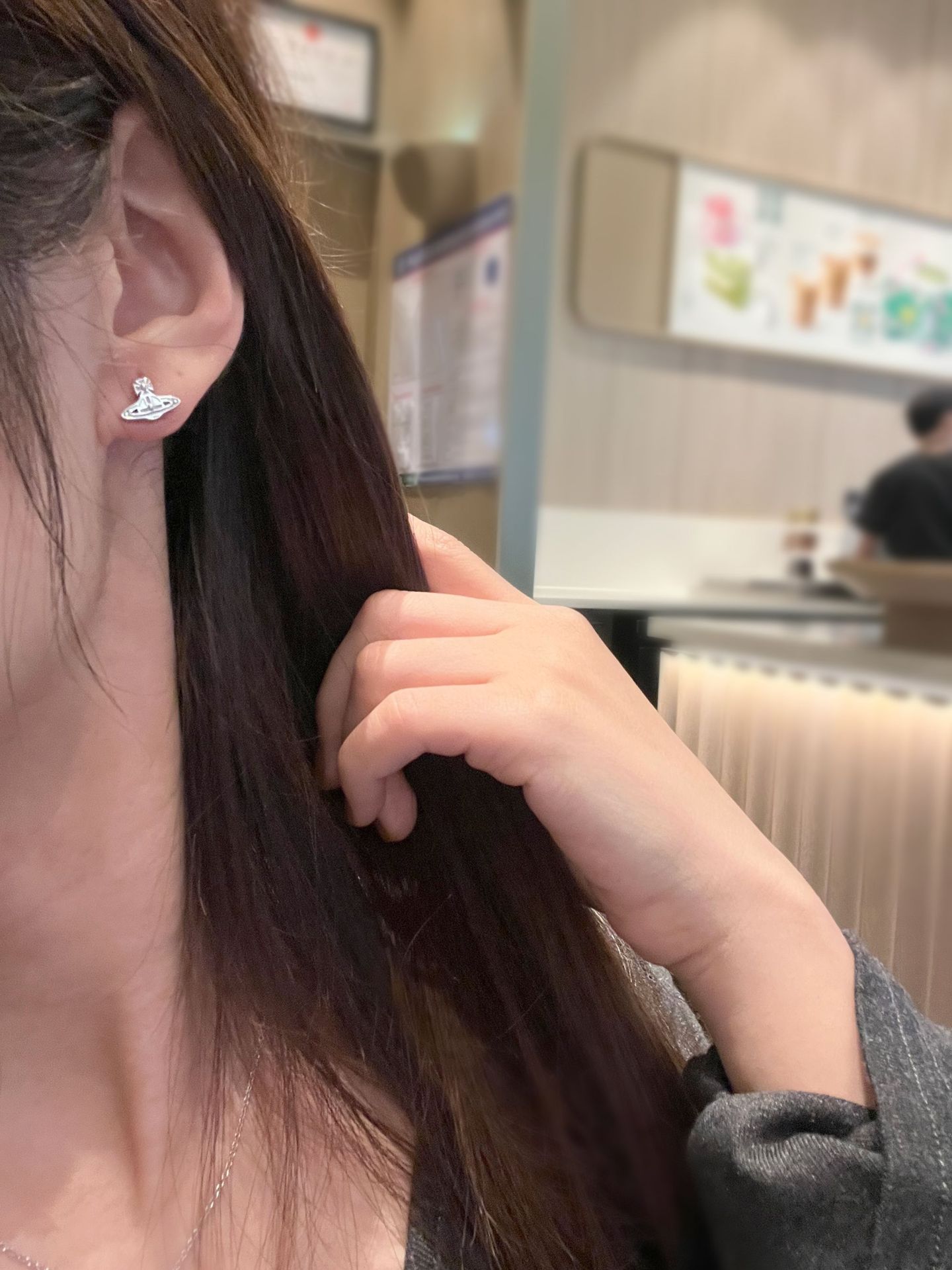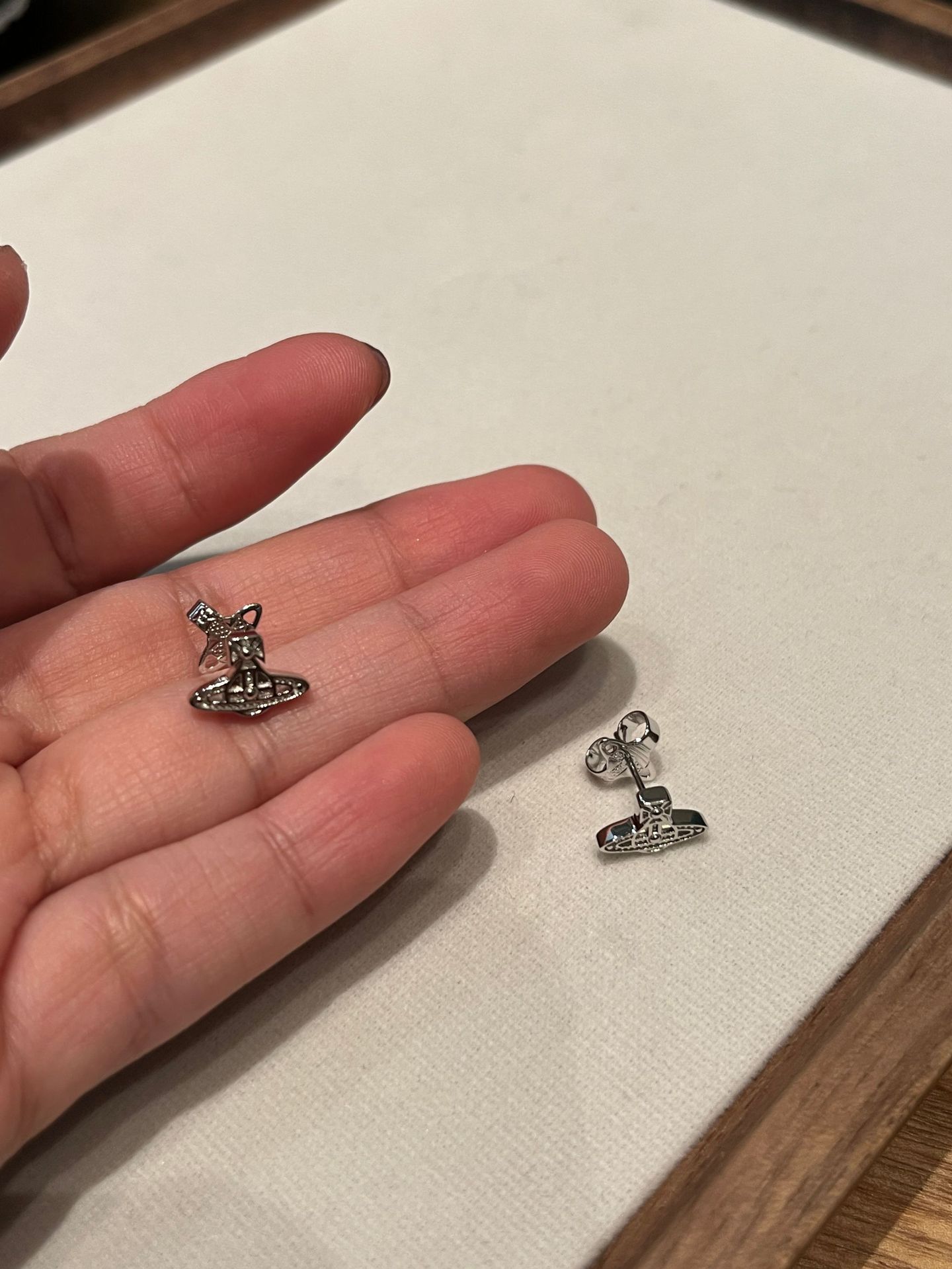 Queen Mother West OSLO Embossed Mini Saturn Stud Earrings 925 Sterling Silver Mini Flat Small Saturn Earrings
