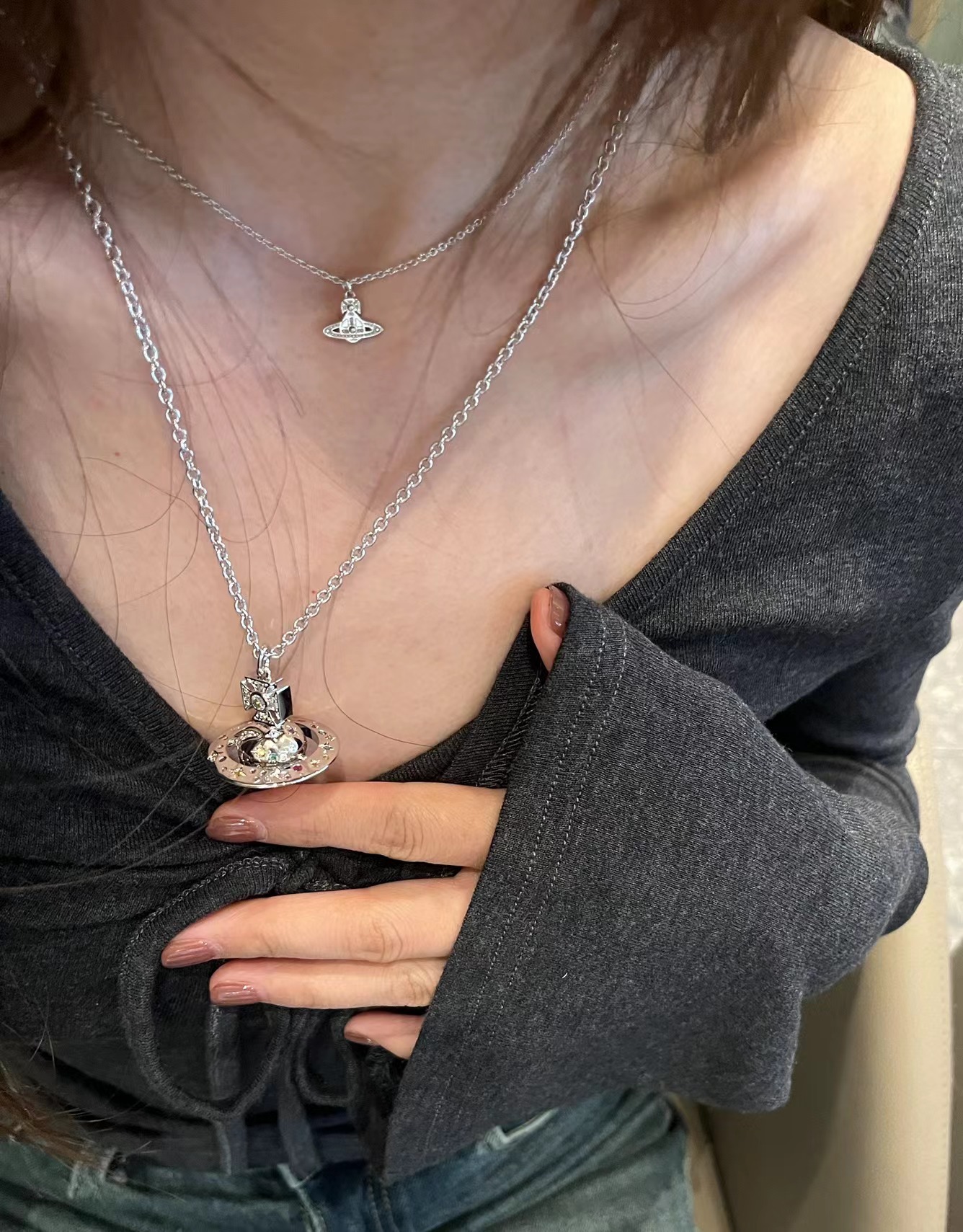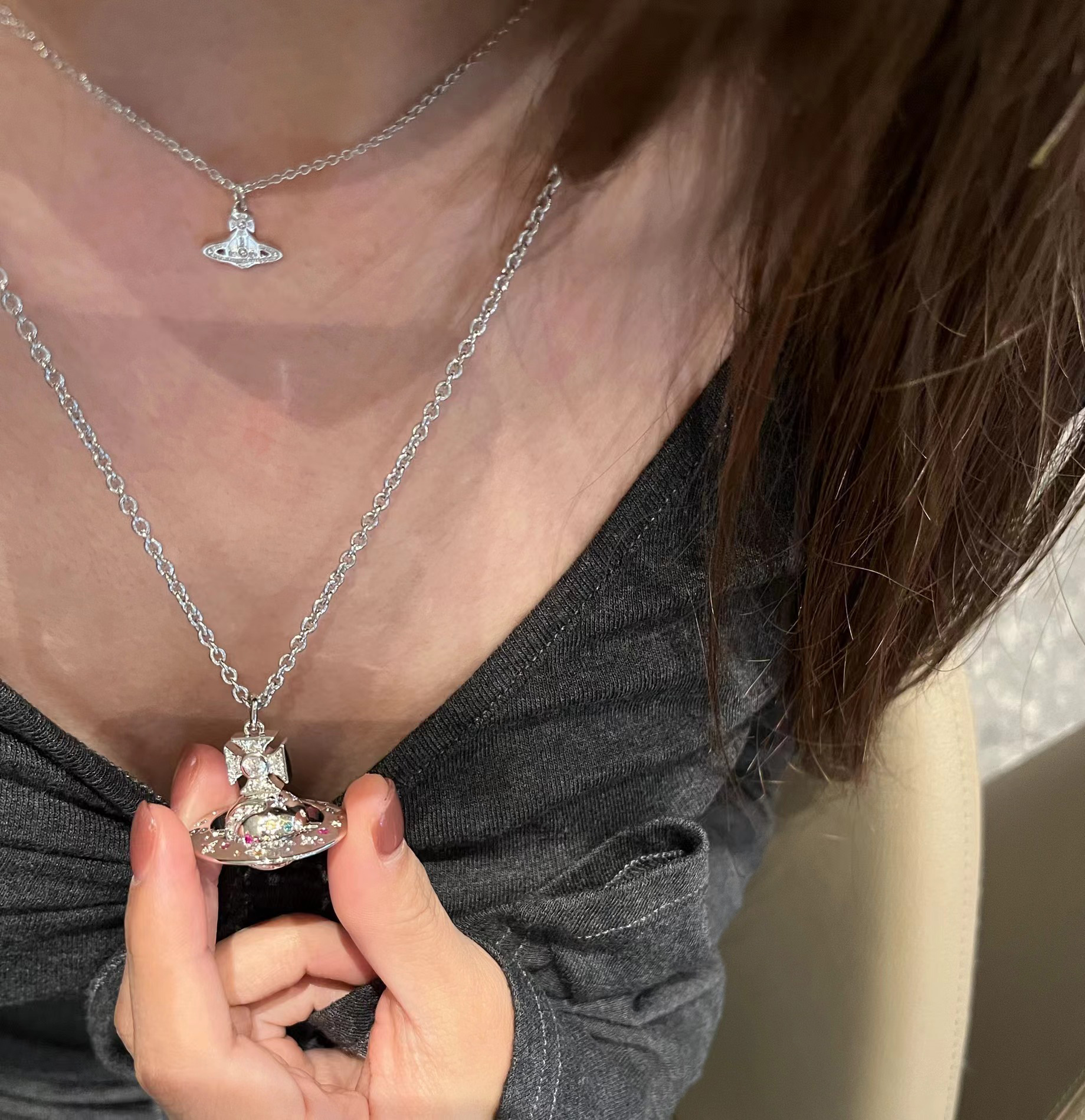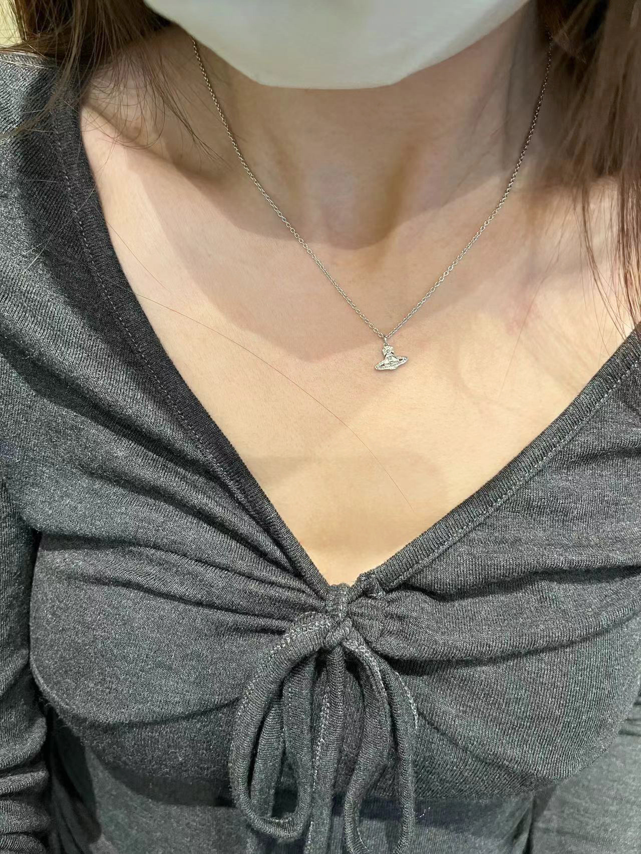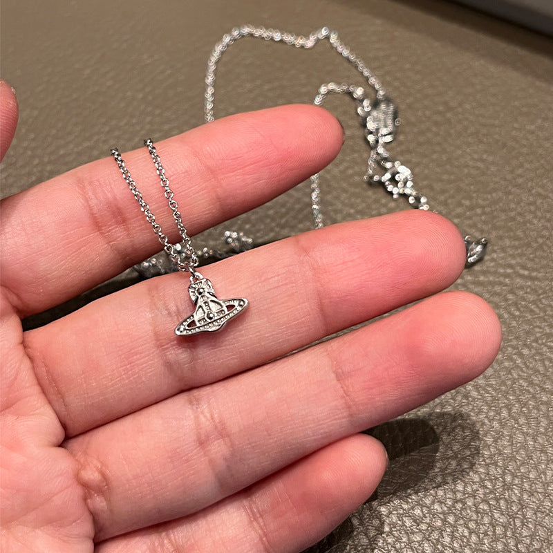 Queen Mother West OSLO Relief Mini Saturn Necklace 925 Sterling Silver Small Saturn Pendant Versatile Clavicle Chain Necklace