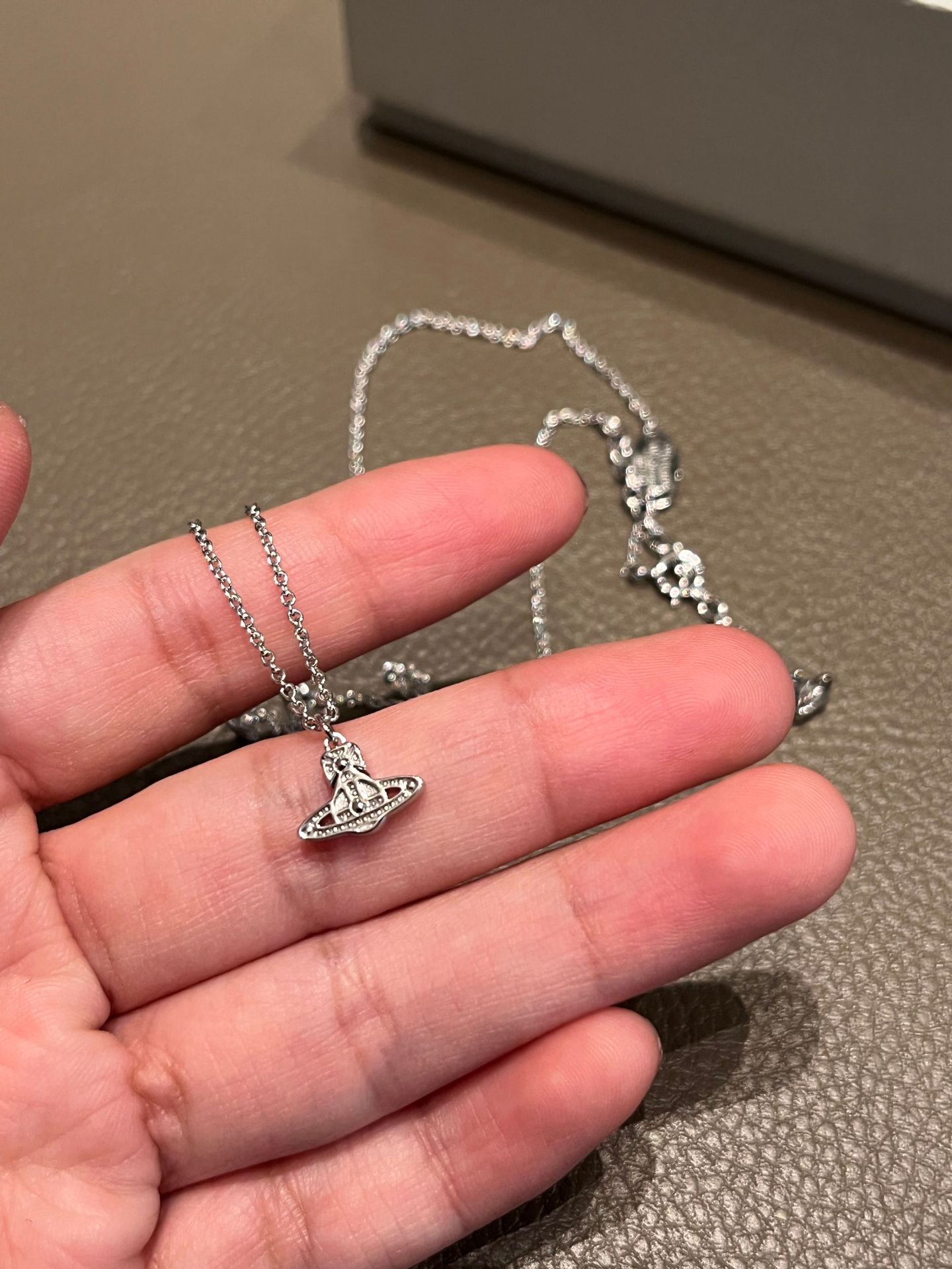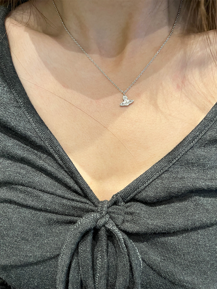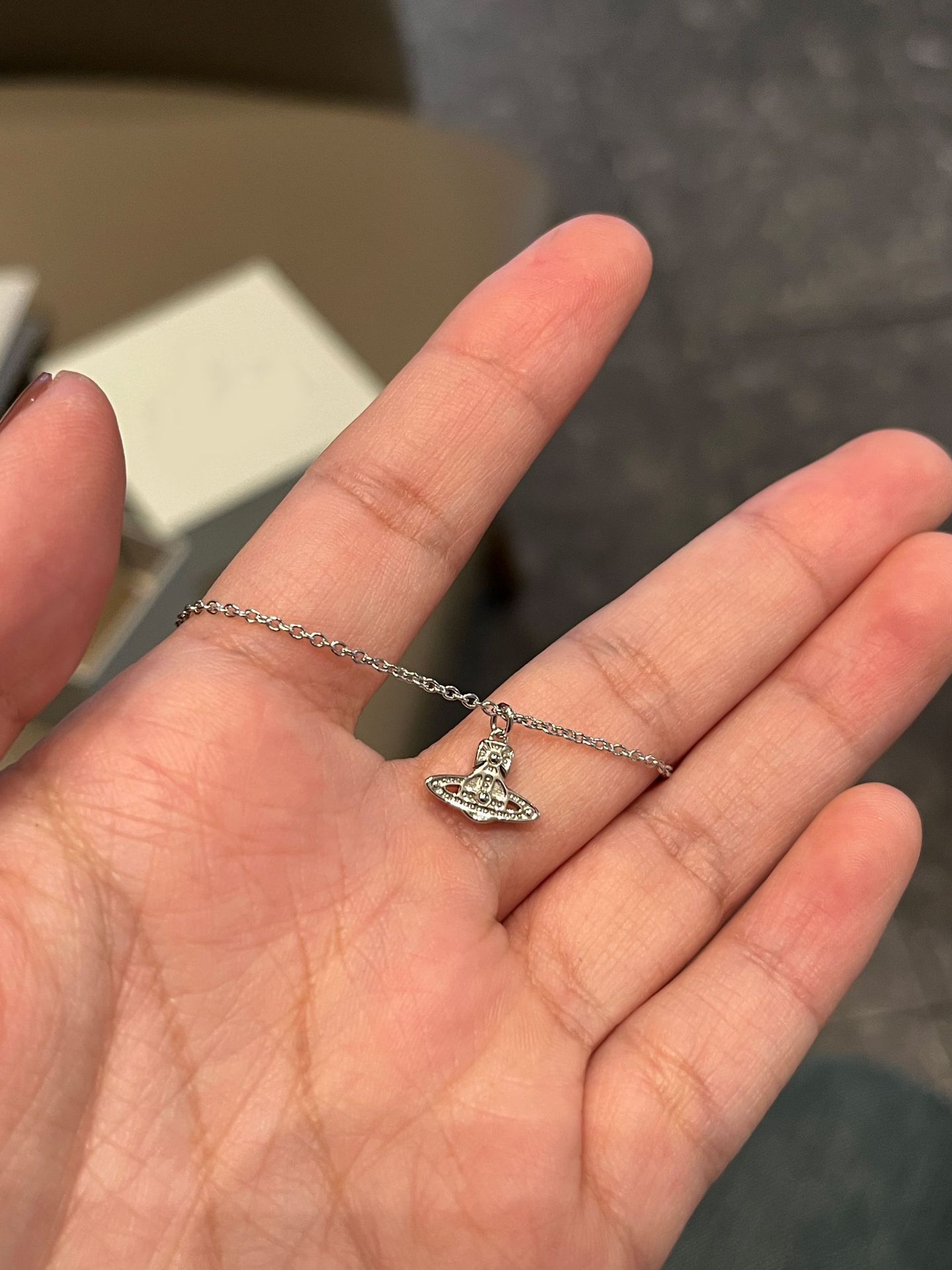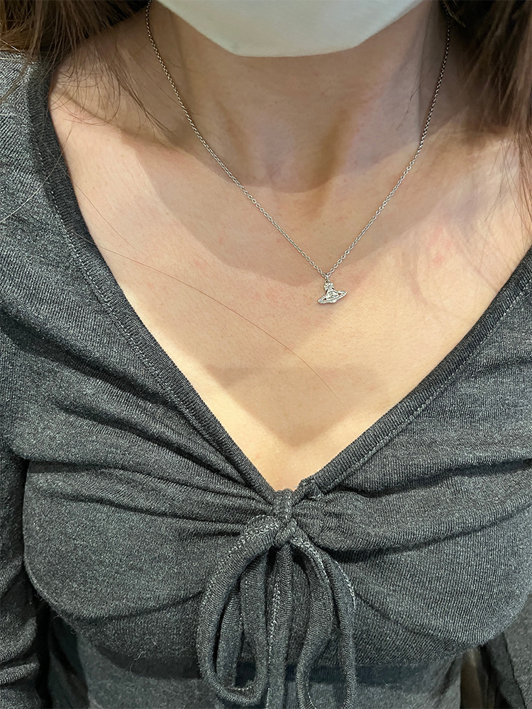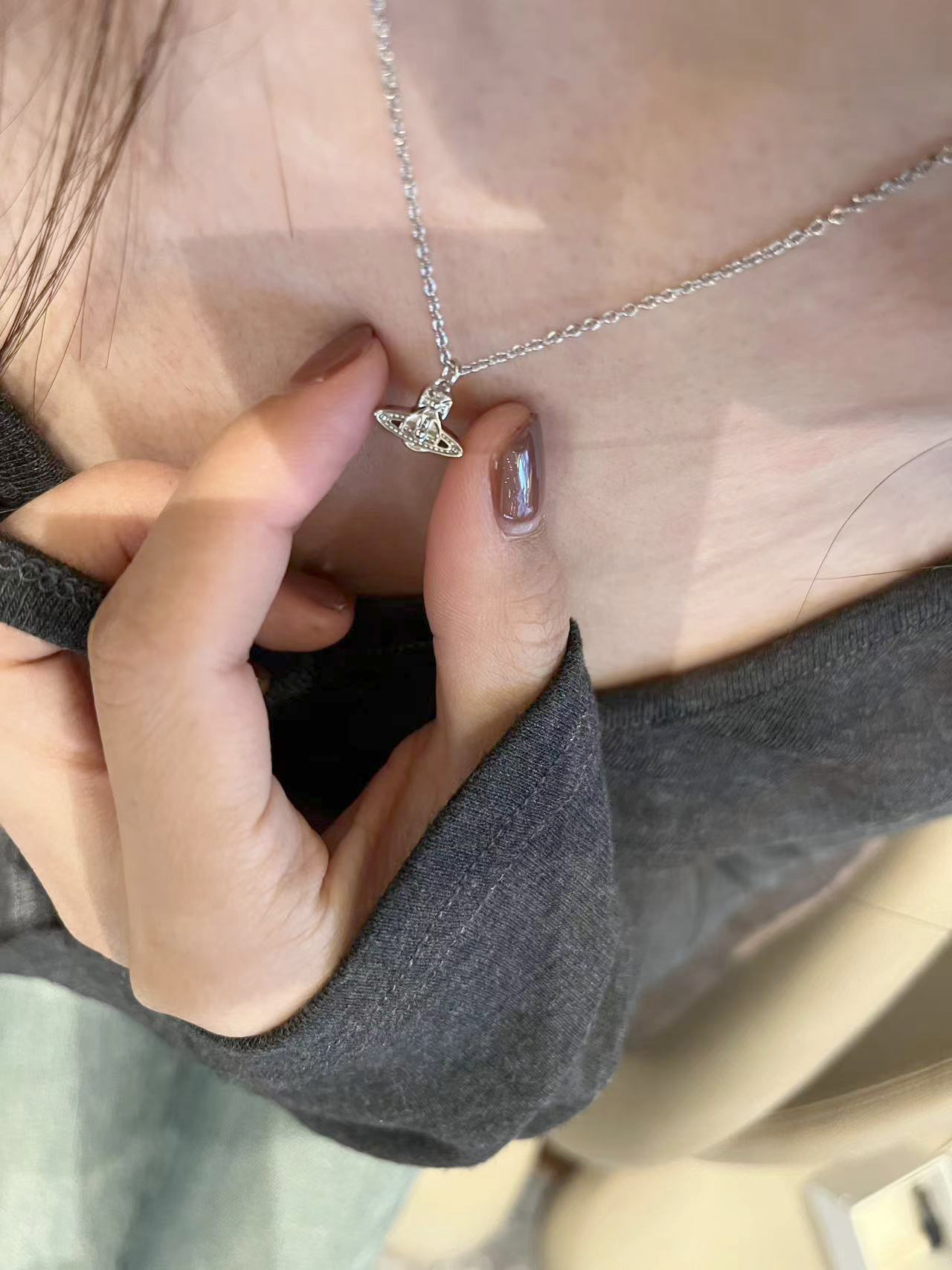 Queen Mother West OSLO Relief Mini Saturn Necklace 925 Sterling Silver Small Saturn Pendant Versatile Clavicle Chain Necklace