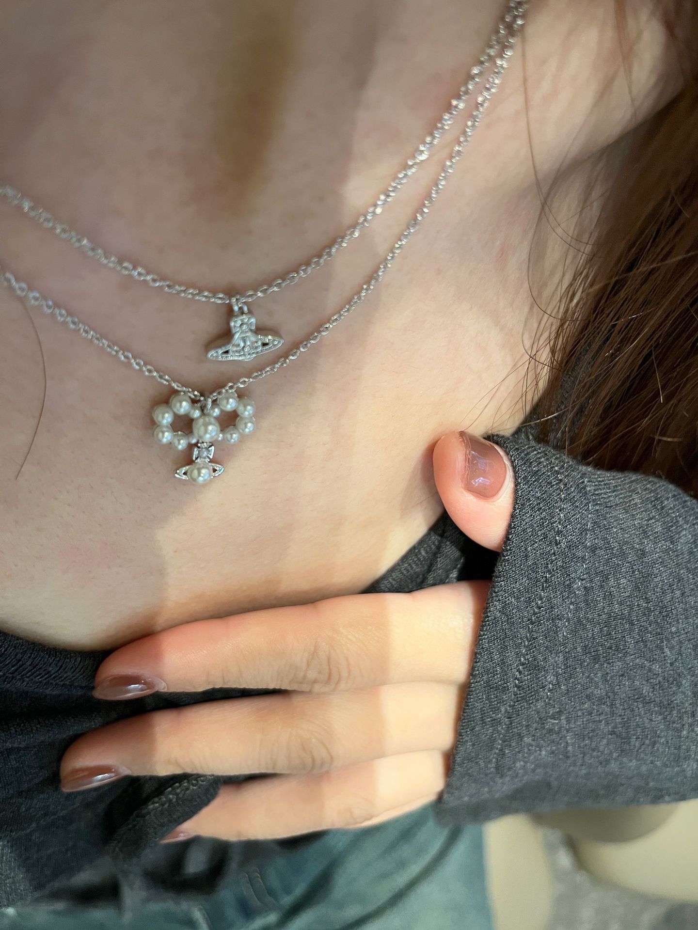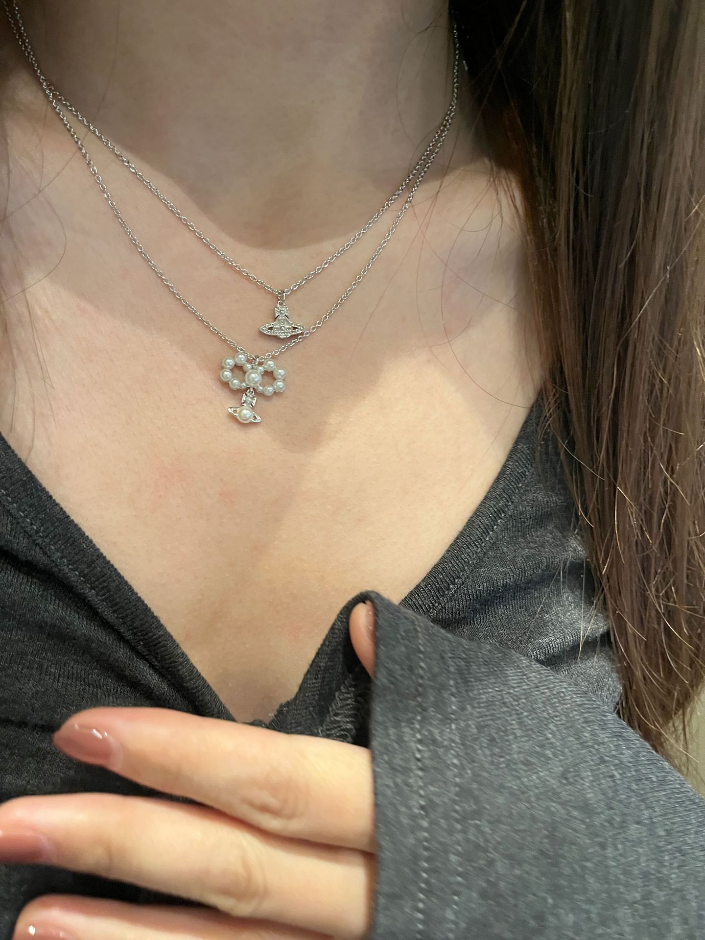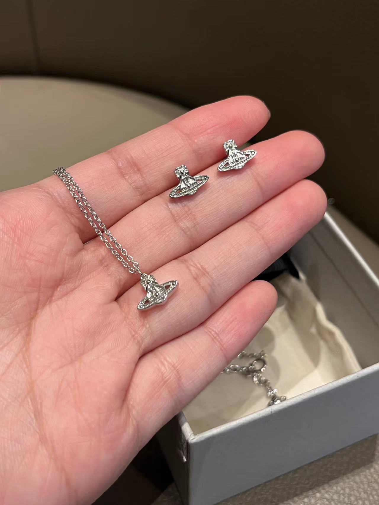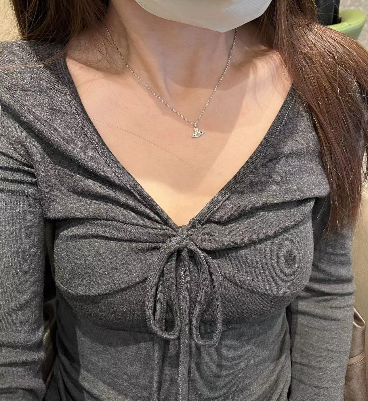 Queen Mother West OSLO Relief Mini Saturn Necklace 925 Sterling Silver Small Saturn Pendant Versatile Clavicle Chain Necklace