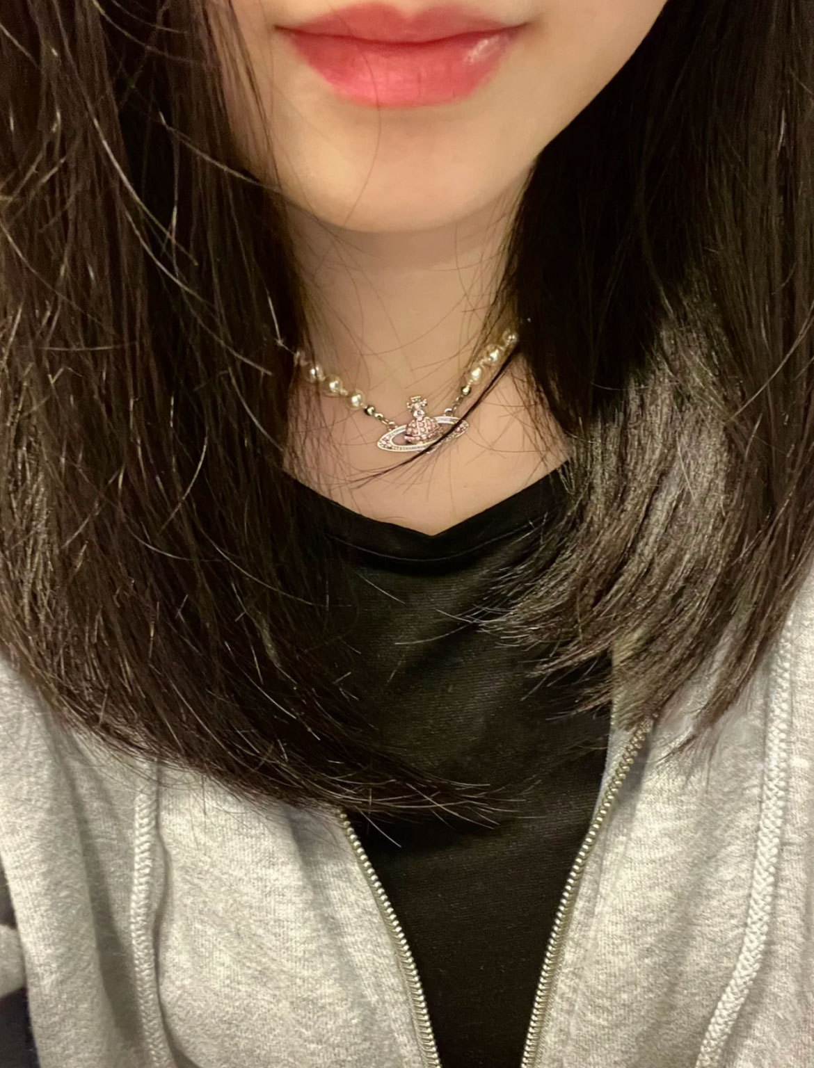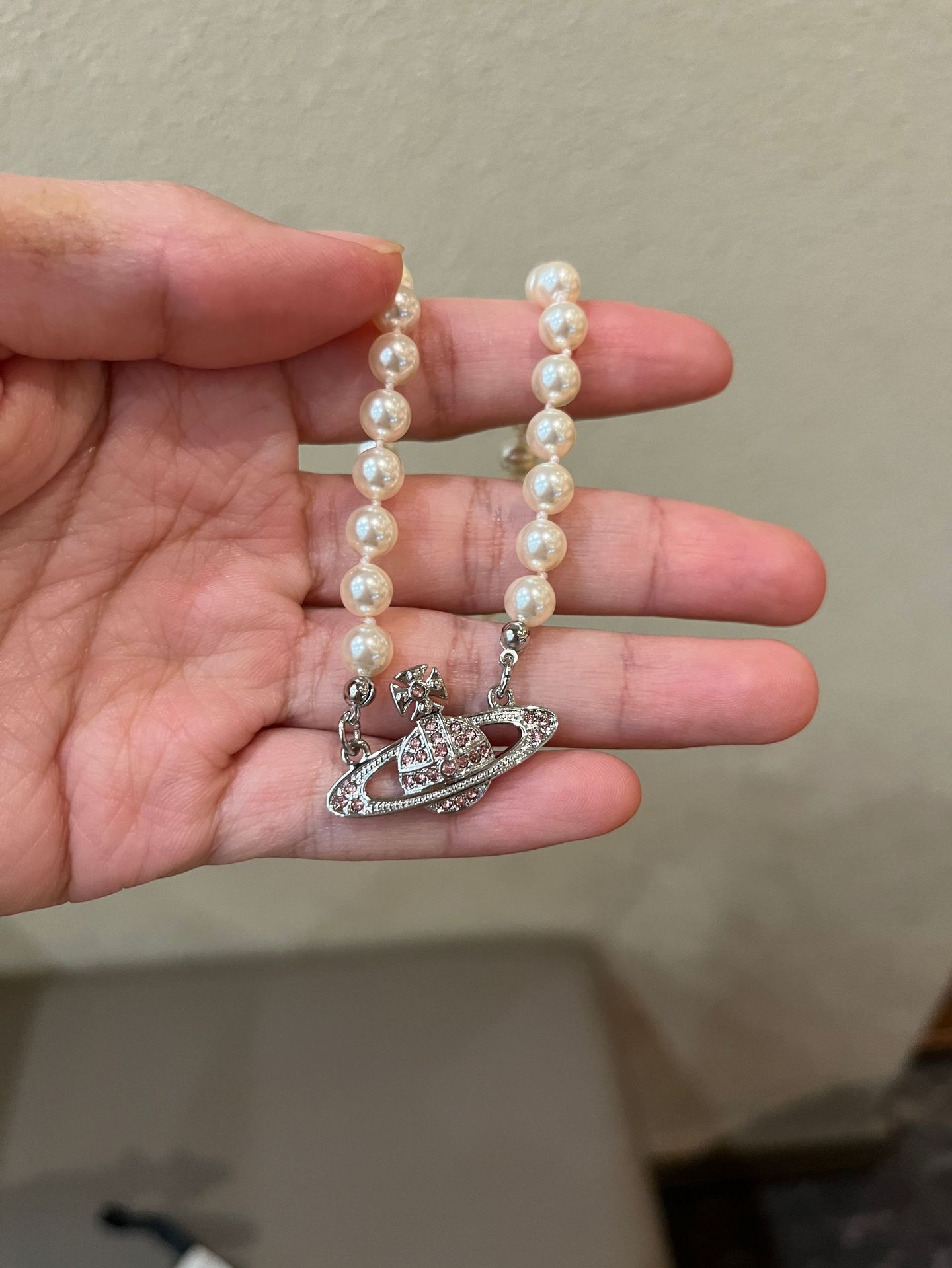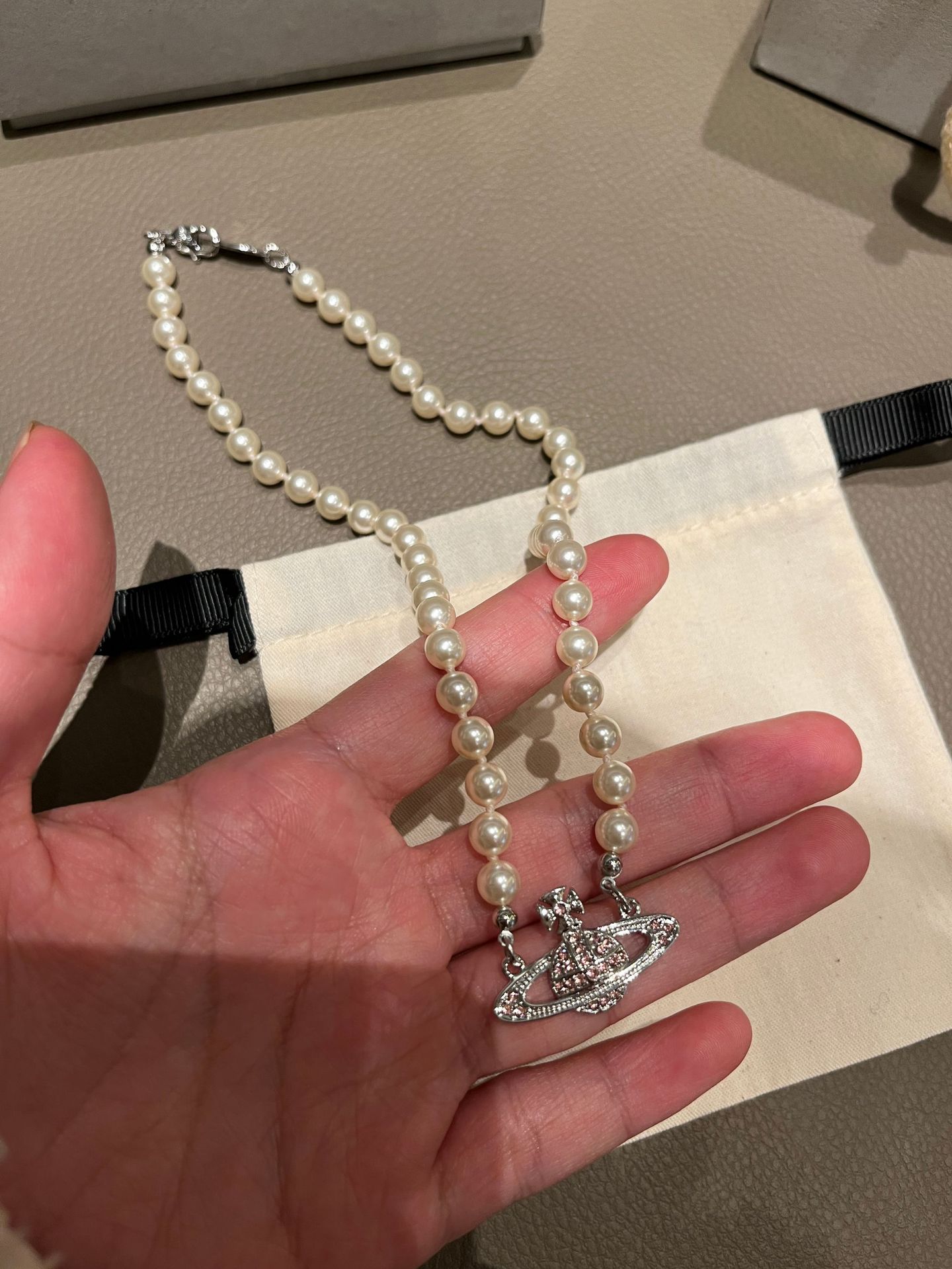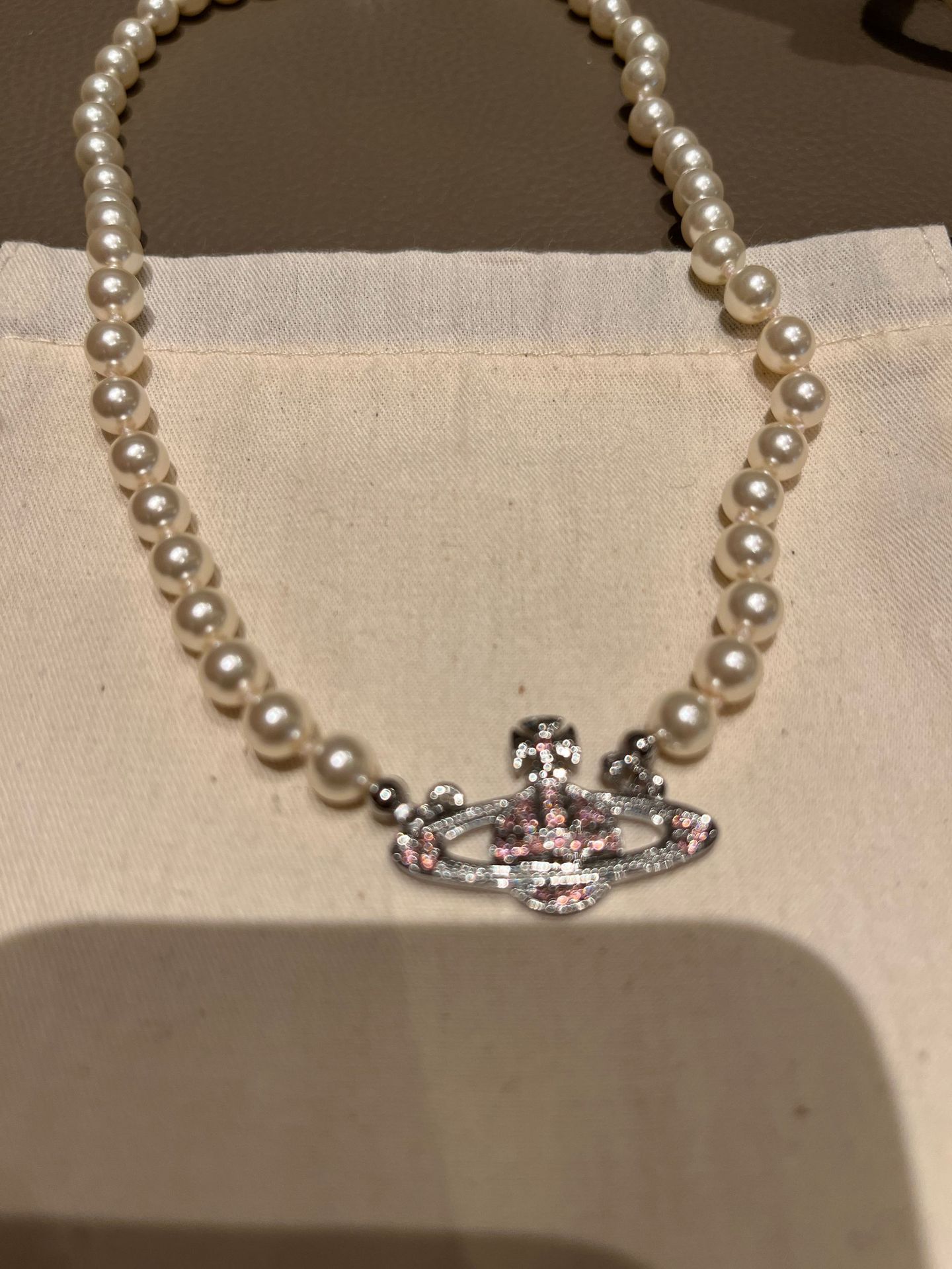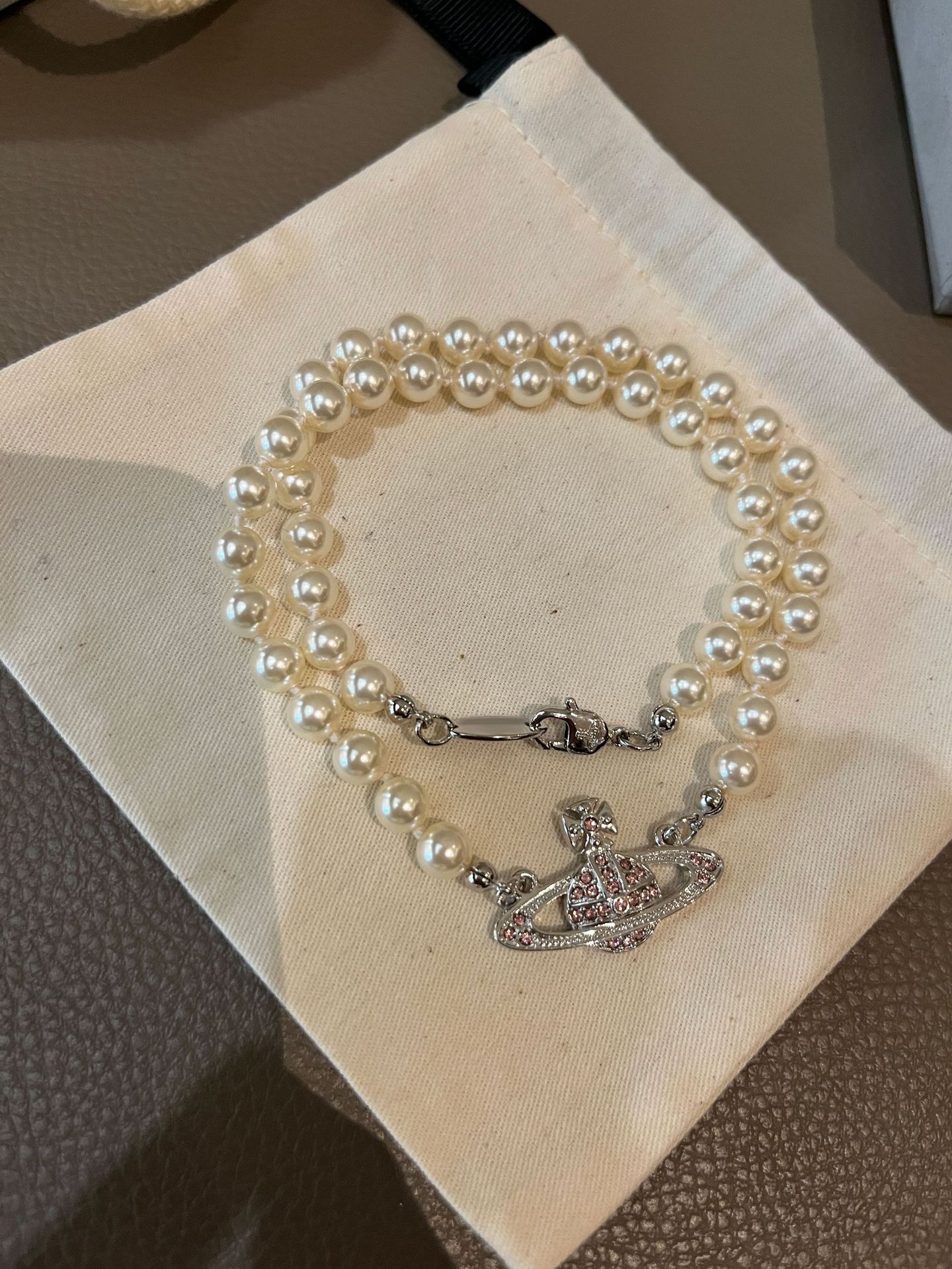 Queen Mother West Pink Diamond Saturn Pearl Necklace Pink Planet Pendant Women's Clavicle Chain Can Be Stacked and Versatile