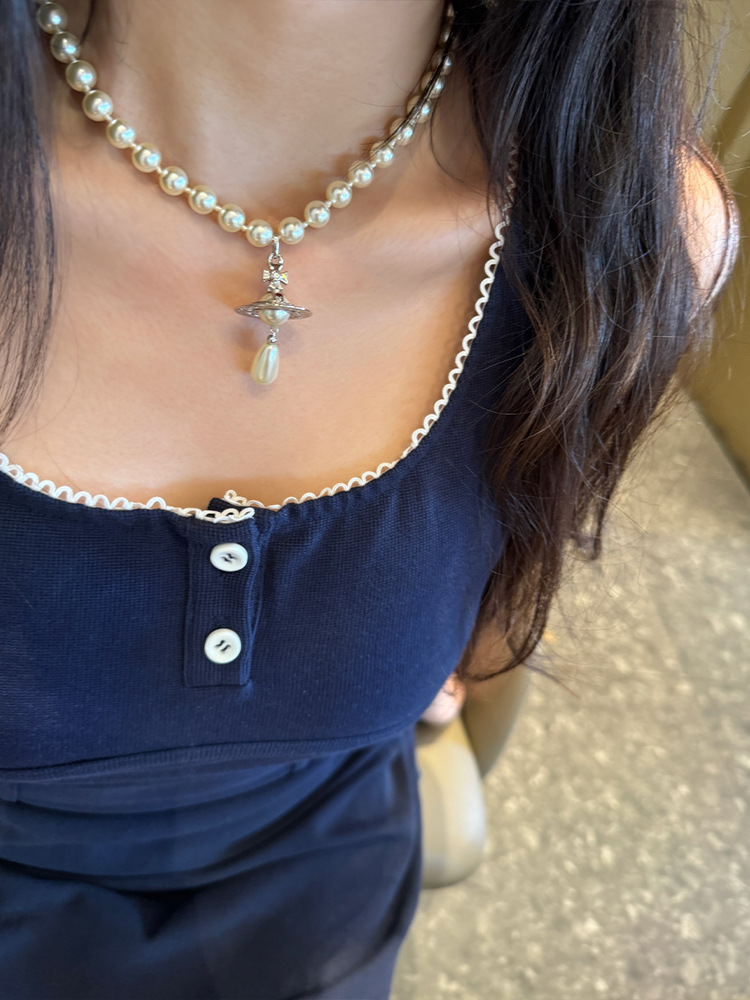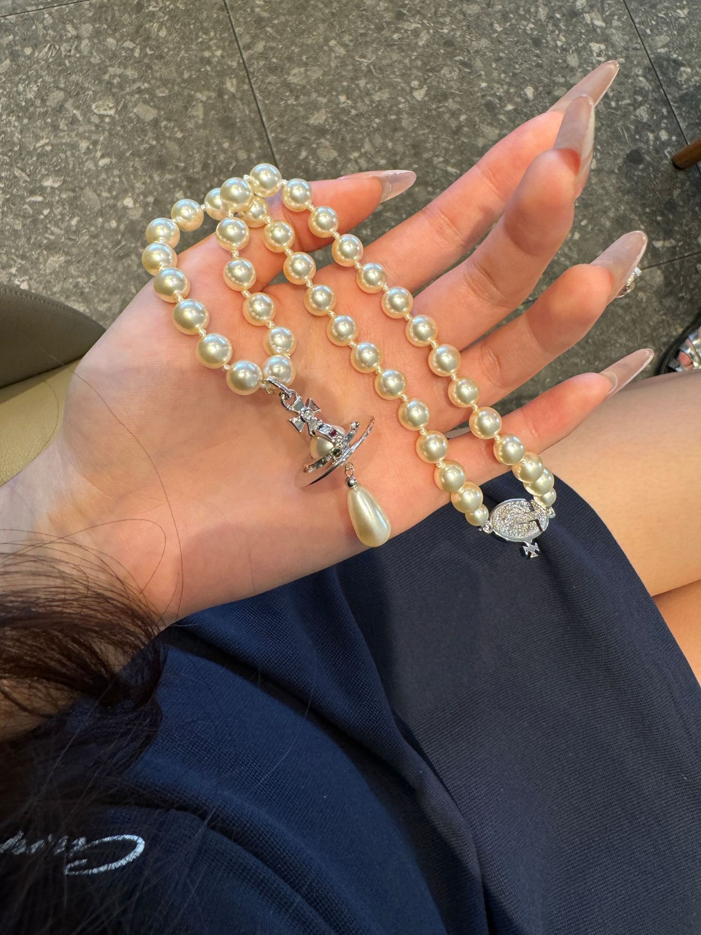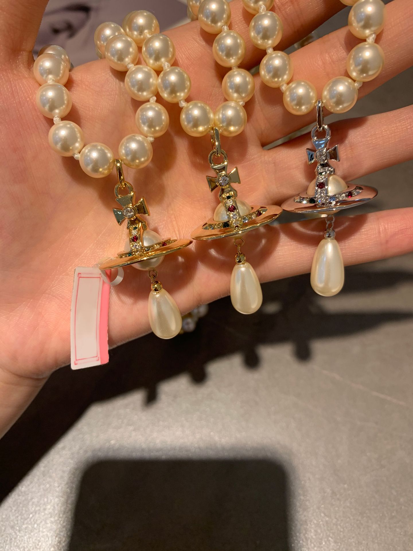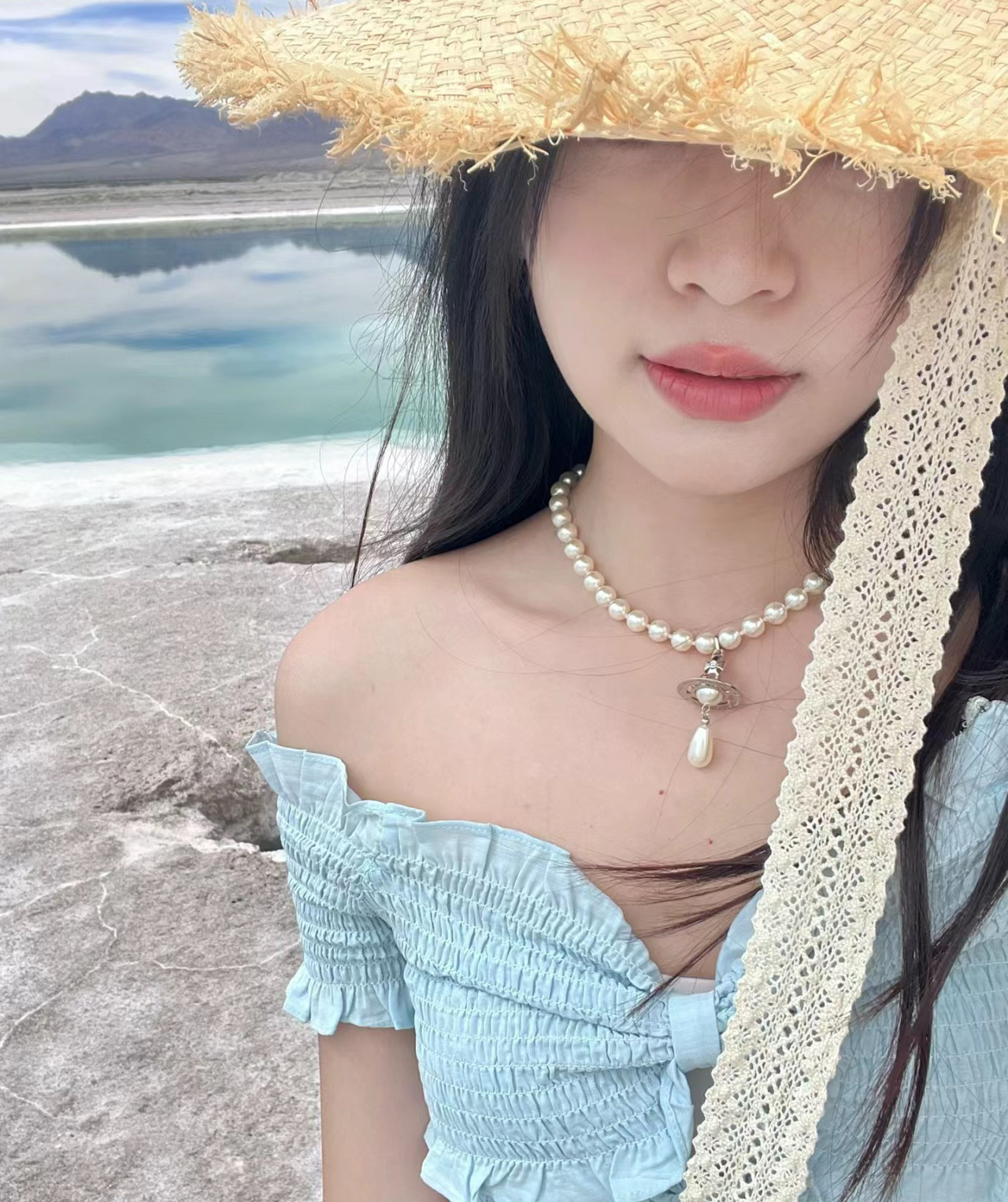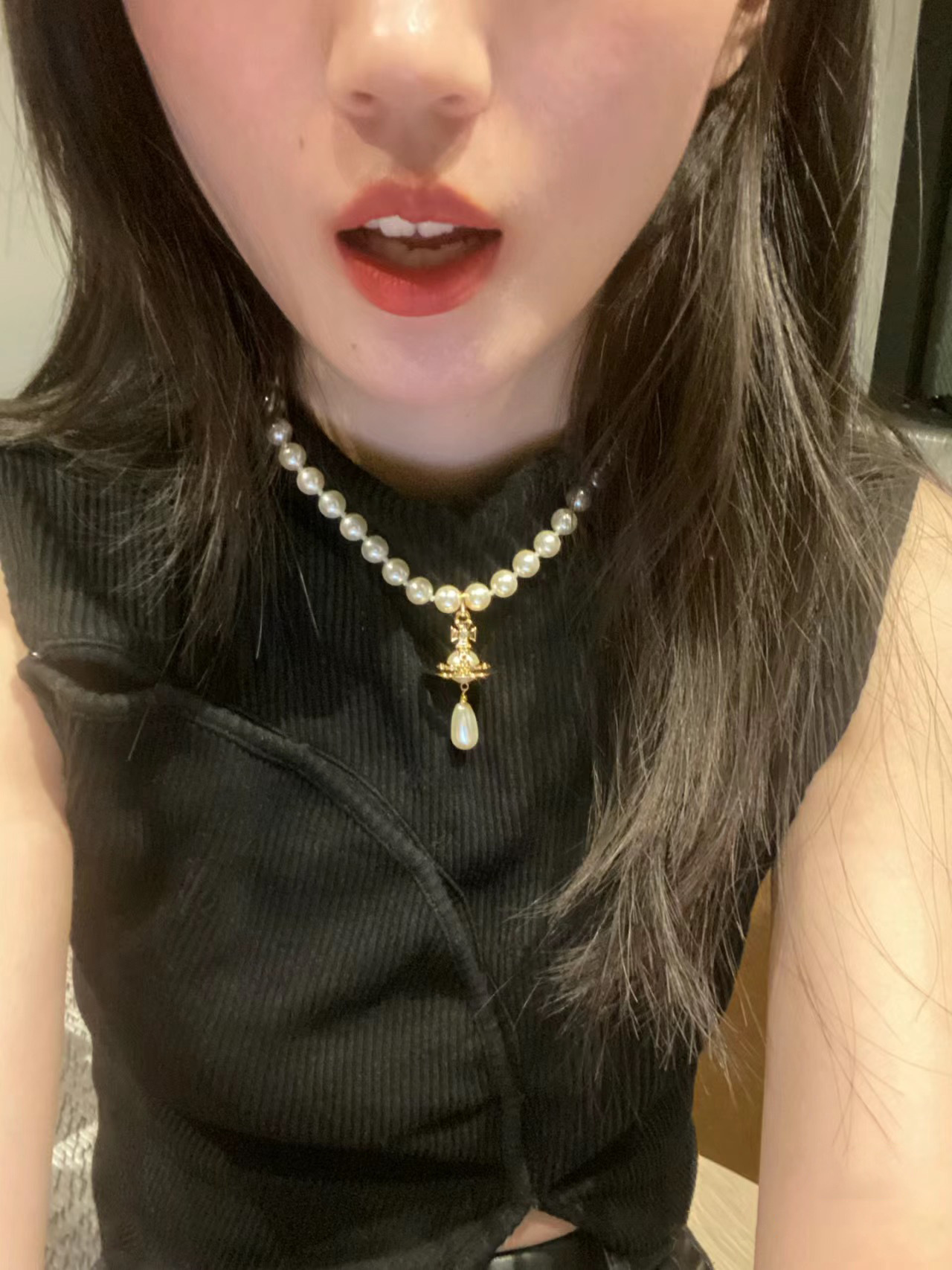 Queen Mother West Water Drop Pearl Pendant Three-dimensional Saturn UFO Pearl Necklace Choker Vintage Female Clavicle Chain