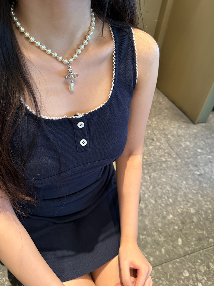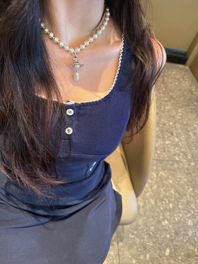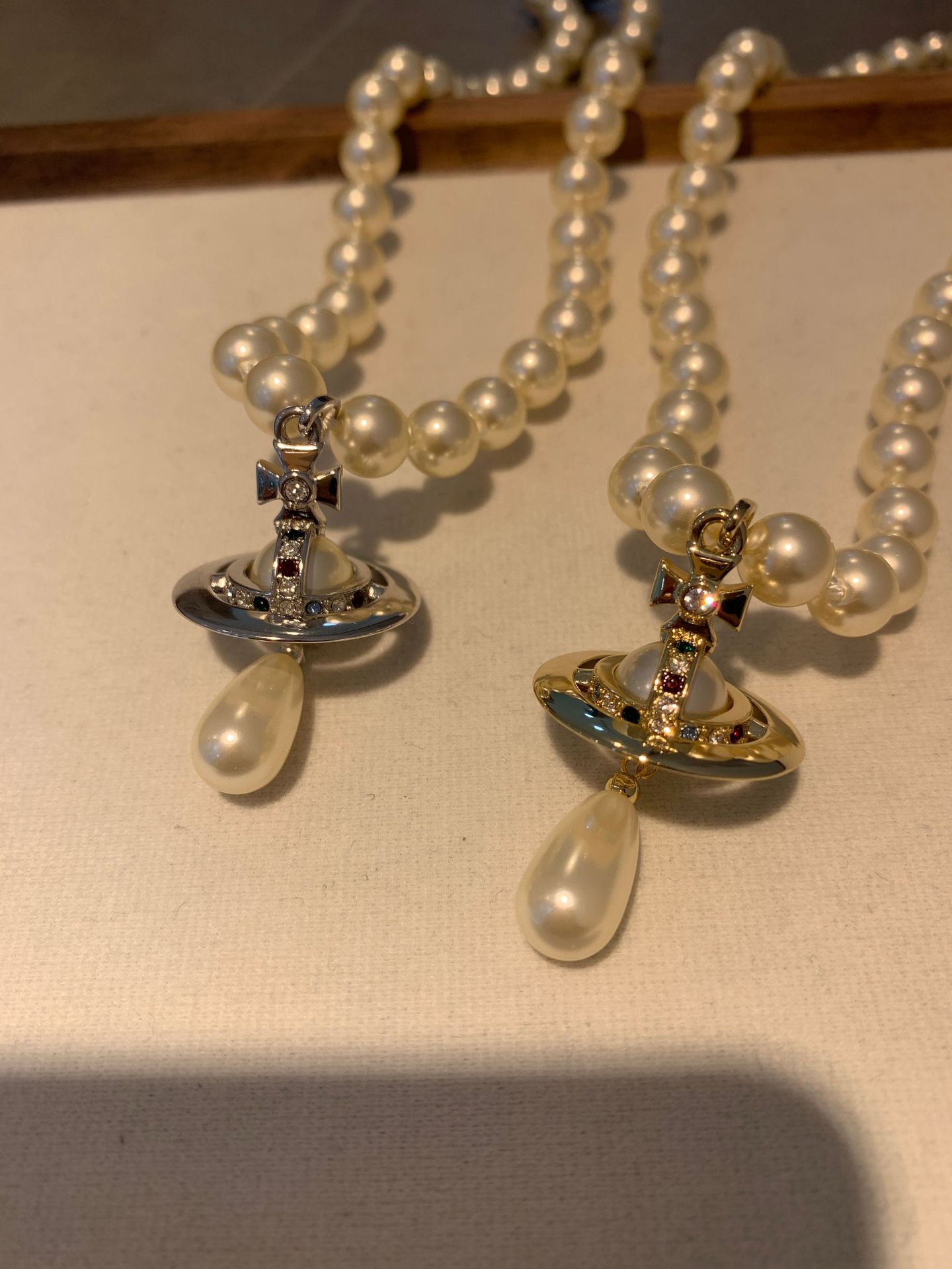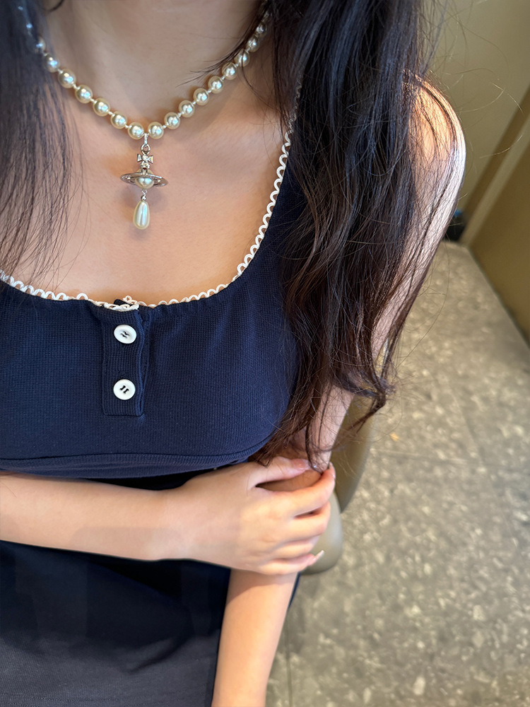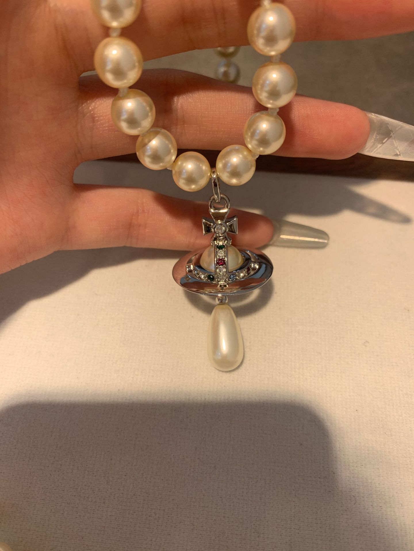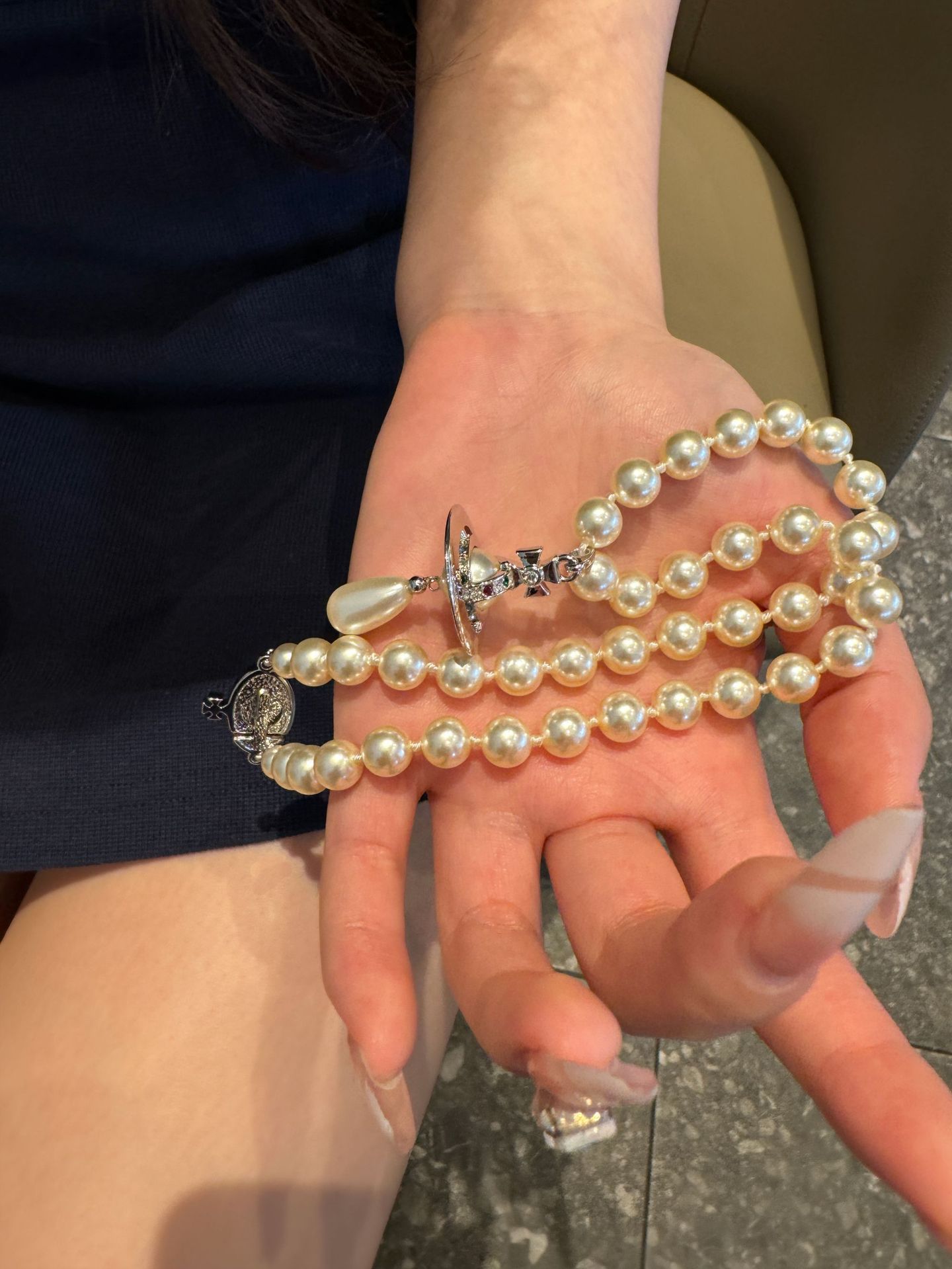 Queen Mother West Water Drop Pearl Pendant Three-dimensional Saturn UFO Pearl Necklace Choker Vintage Female Clavicle Chain