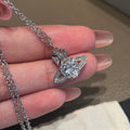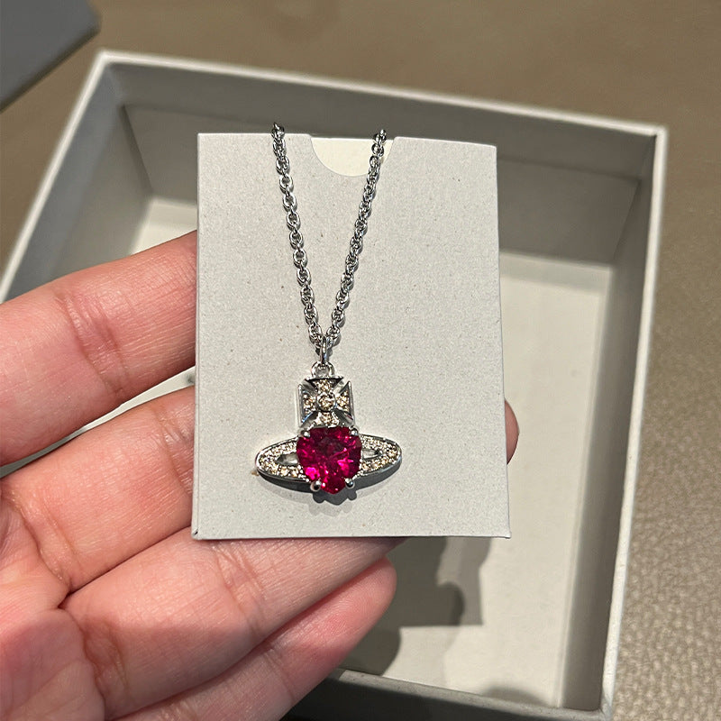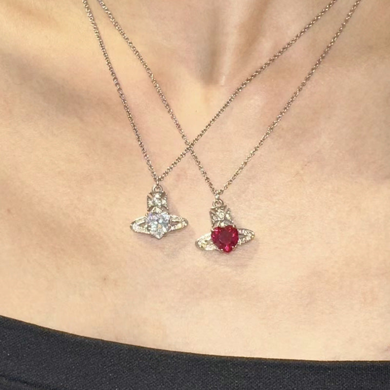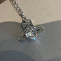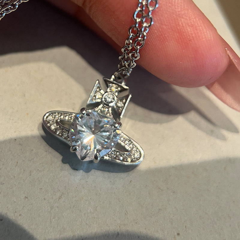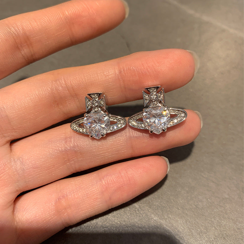 QUEEN MOTHER WEST WHITE HEART DIAMOND SATURN NECKLACE STUD EARRINGS ARIELLA CLASSIC FULL DIAMOND PLANET PENDANT EARRINGS