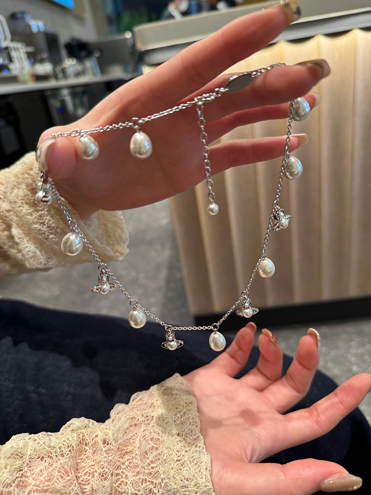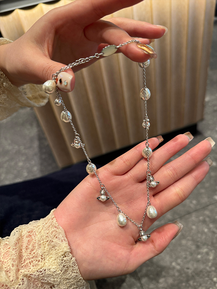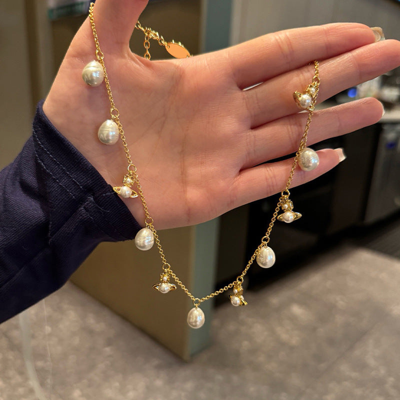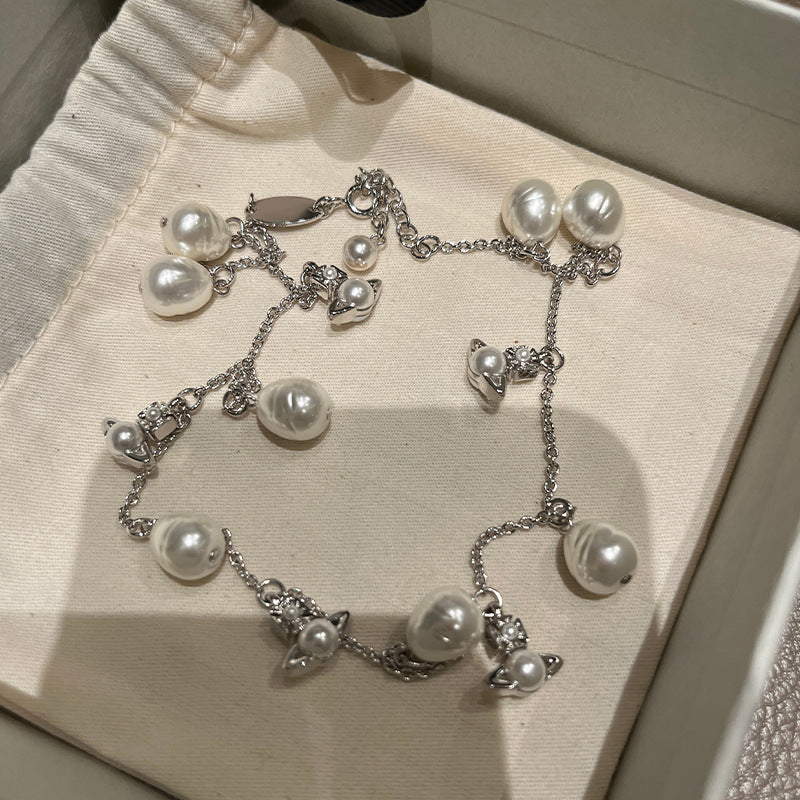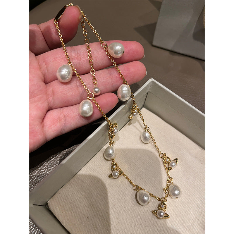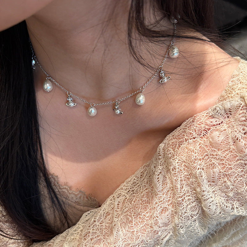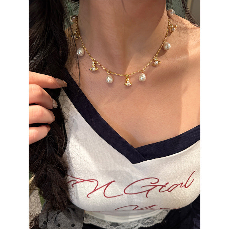 Queen Mother West's new baroque pearl small Saturn necklace Seiko strong light pearl fashionable stacking clavicle chain