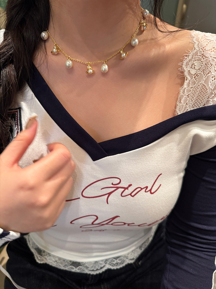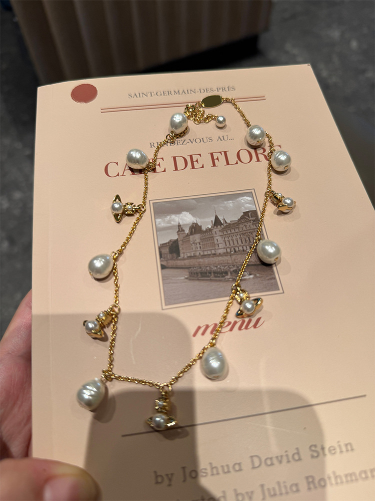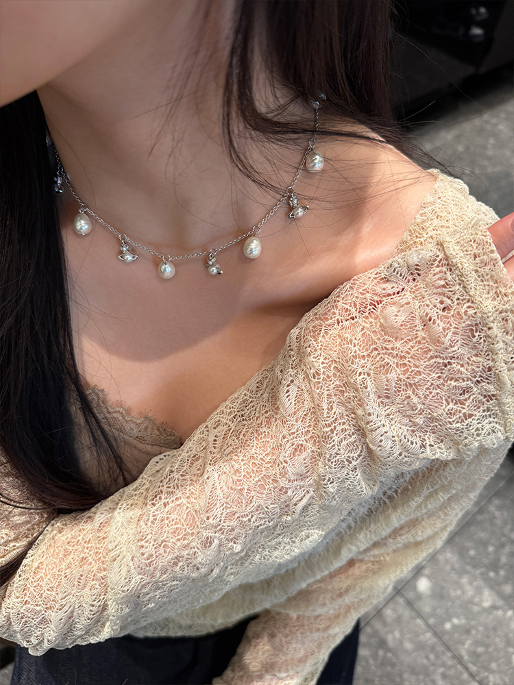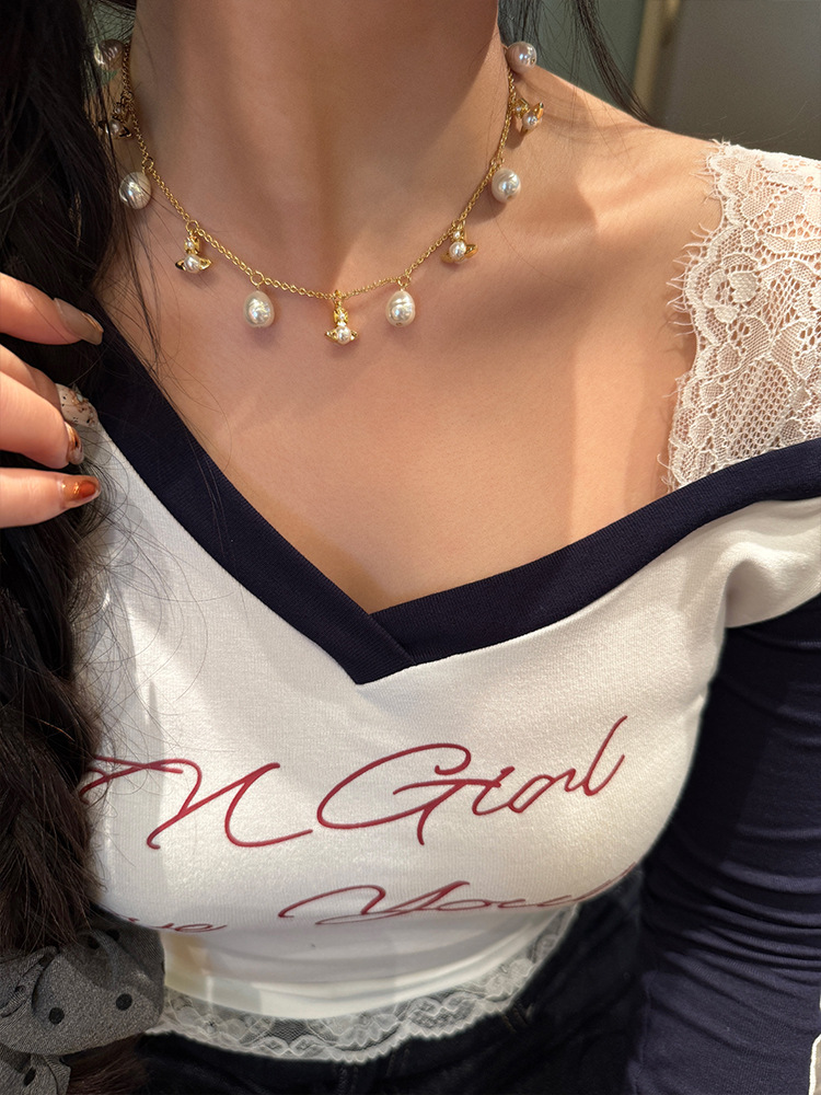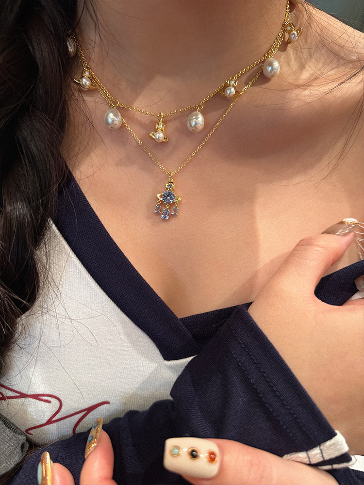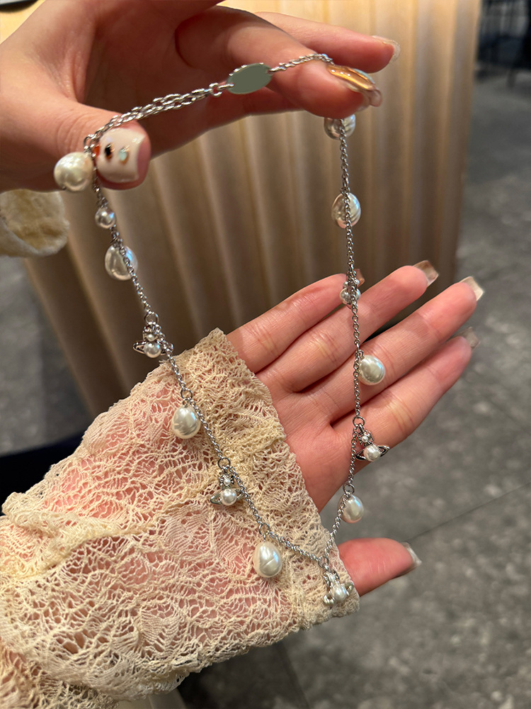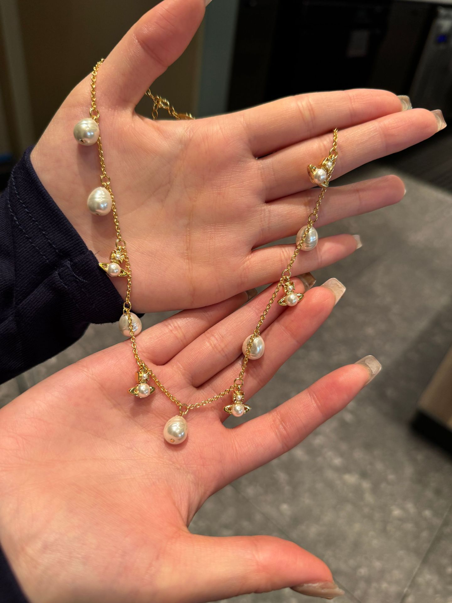 Queen Mother West's new baroque pearl small Saturn necklace Seiko strong light pearl fashionable stacking clavicle chain