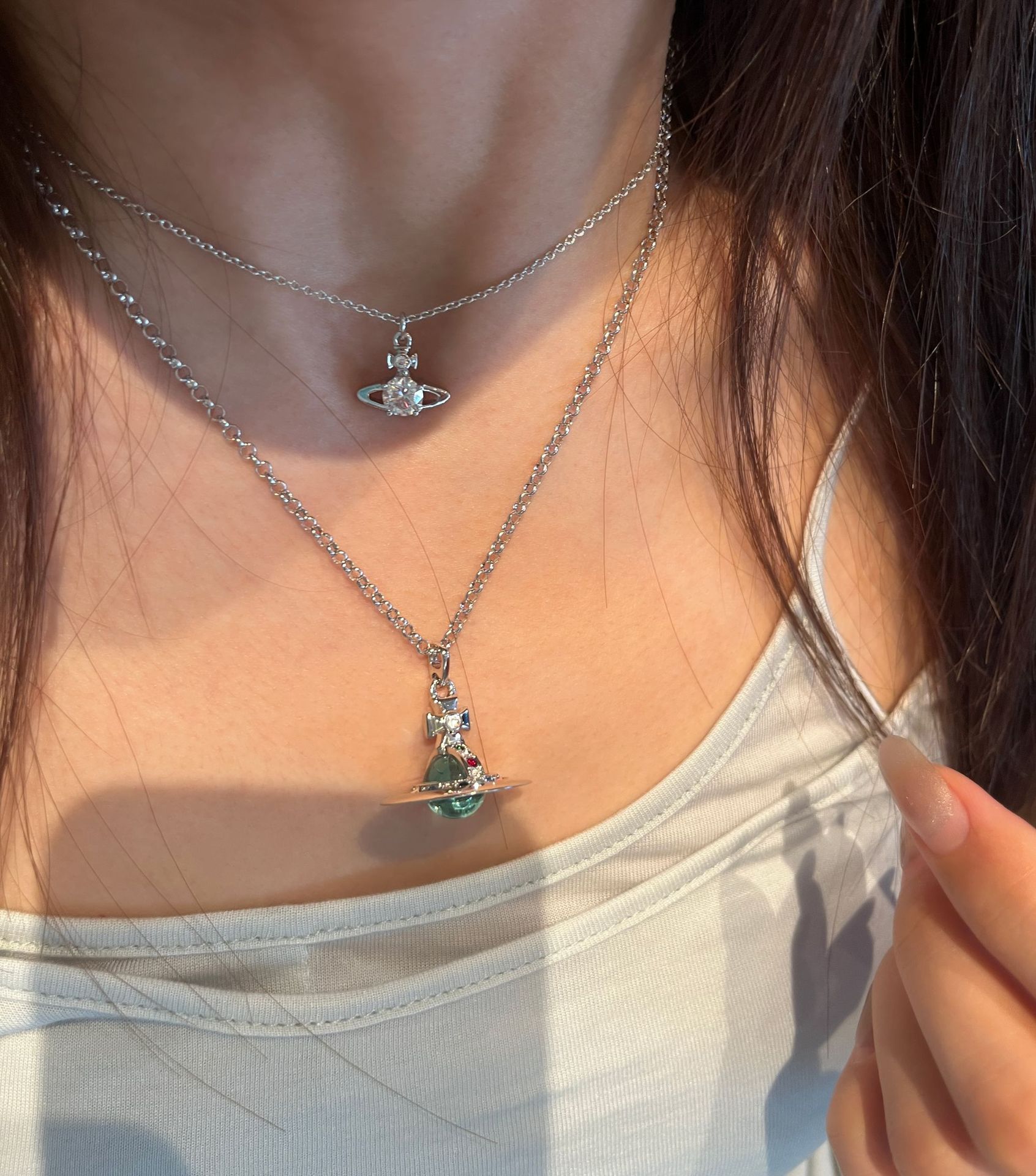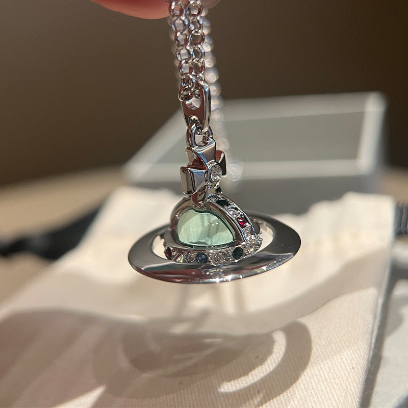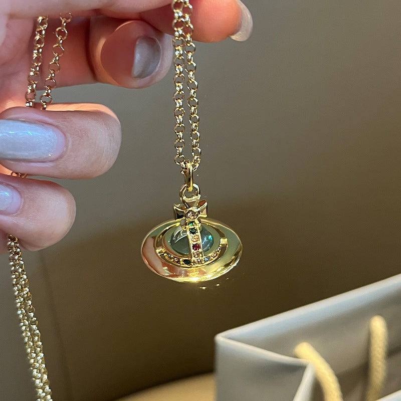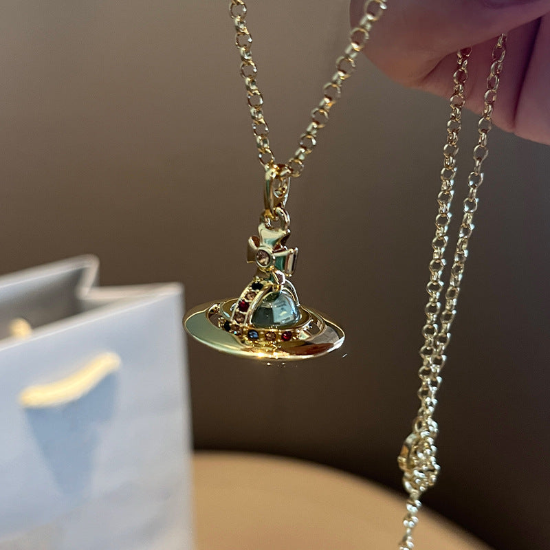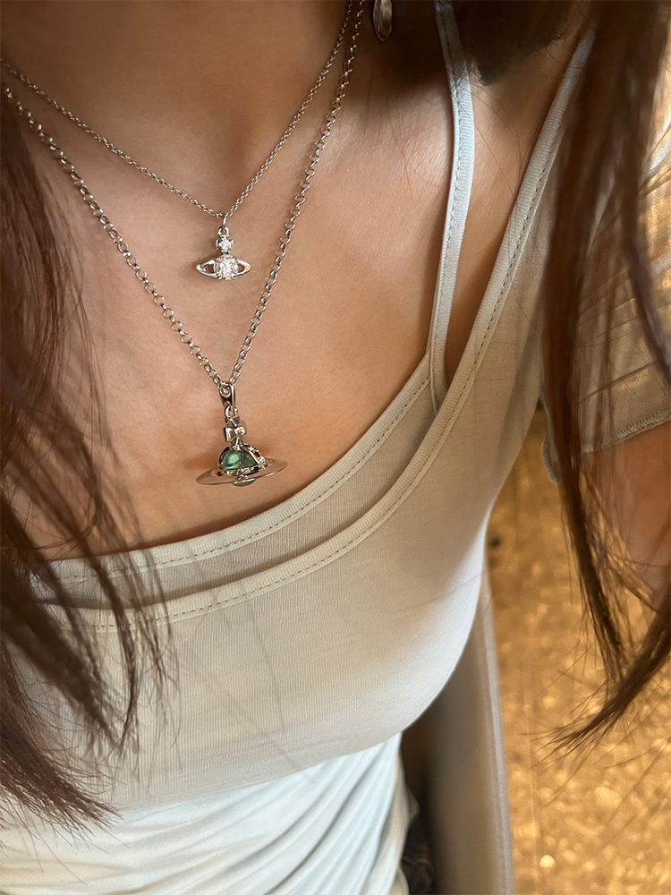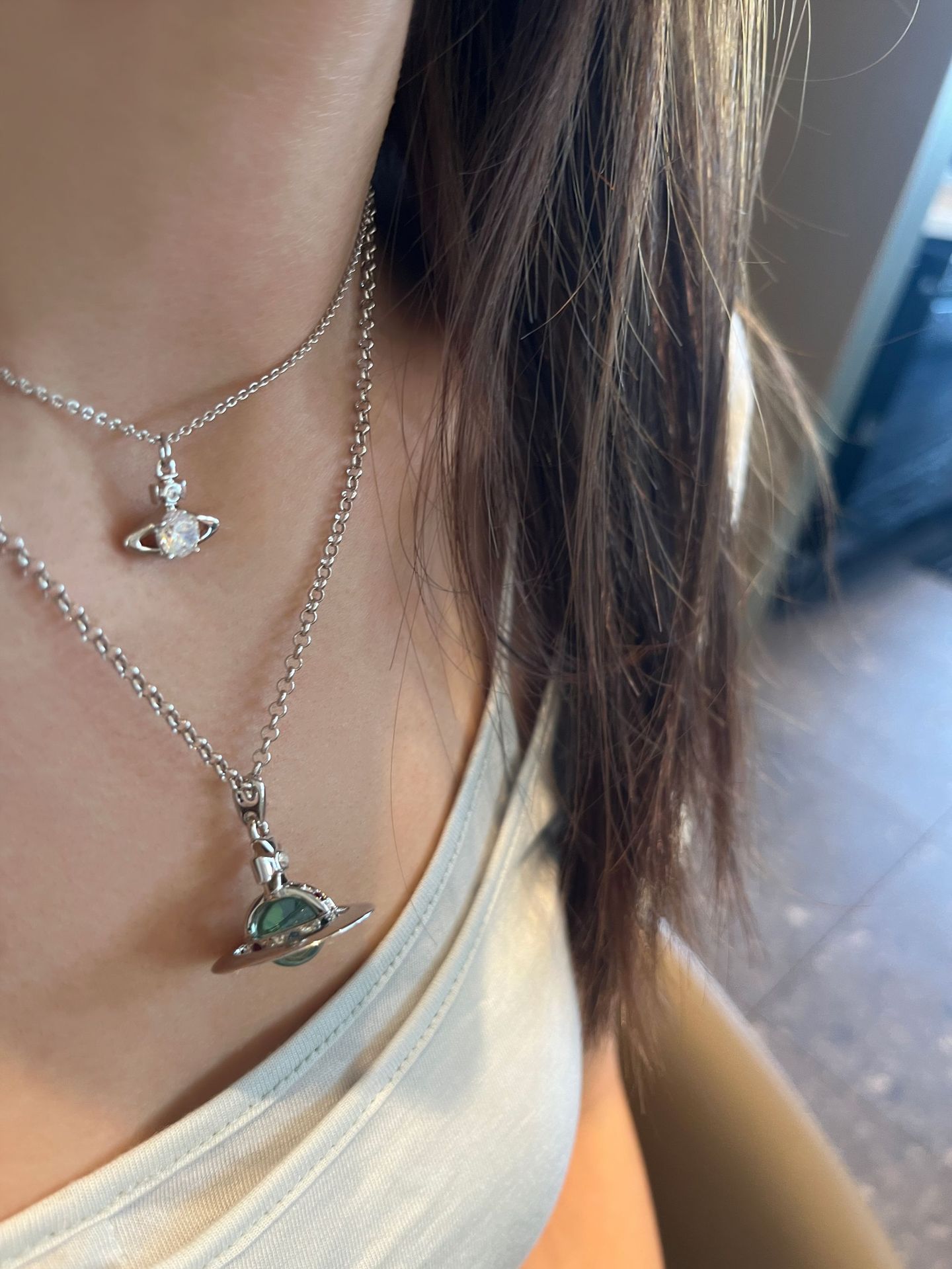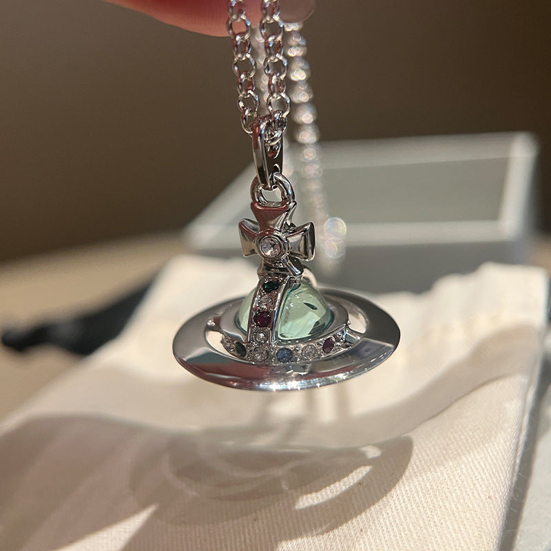 Queen West Medium Mint Green Orb Necklace Three-dimensional Saturn Chain Diamond Planet Flyer Fashion Jewelry