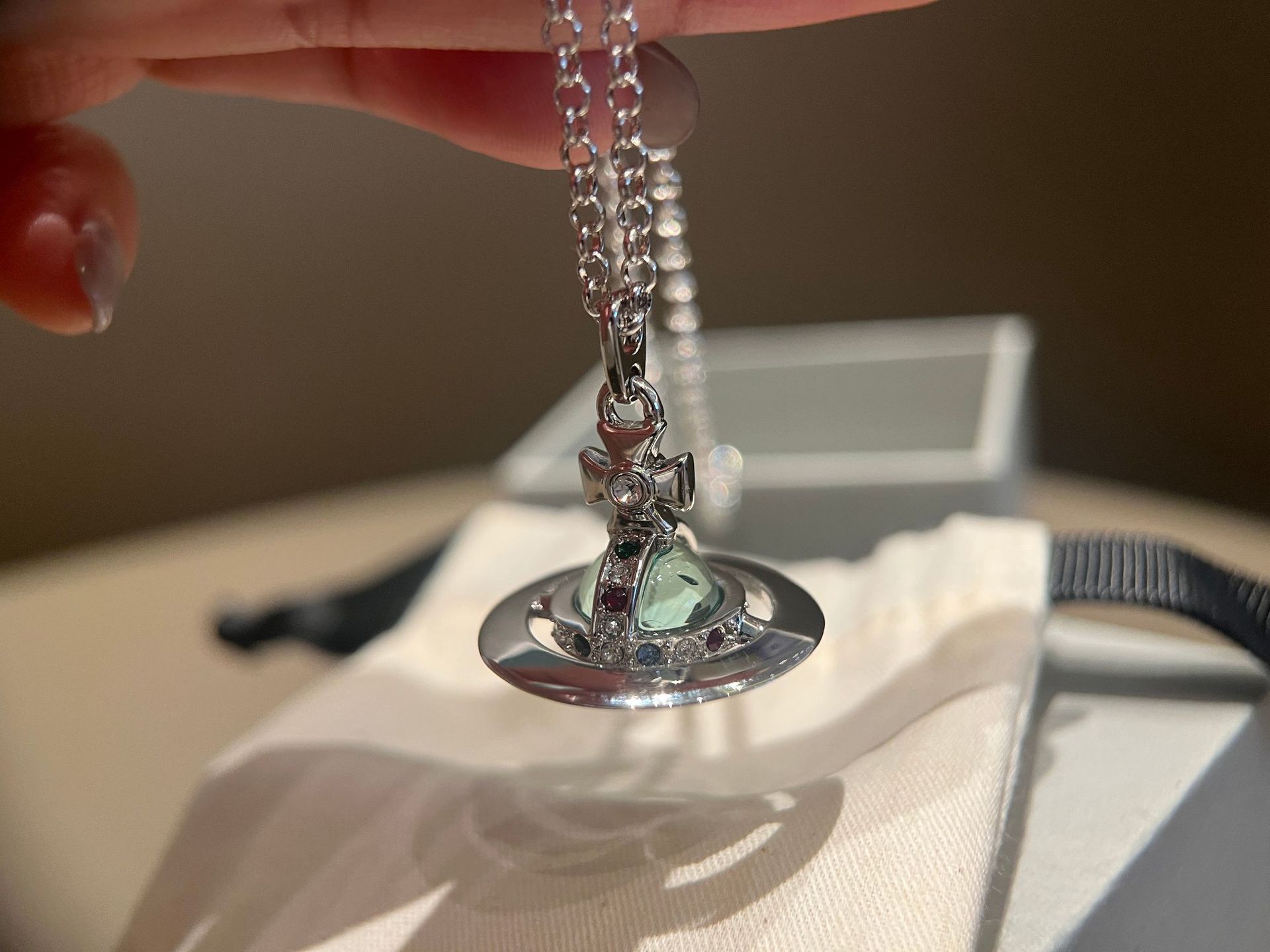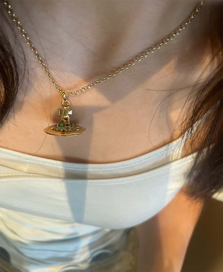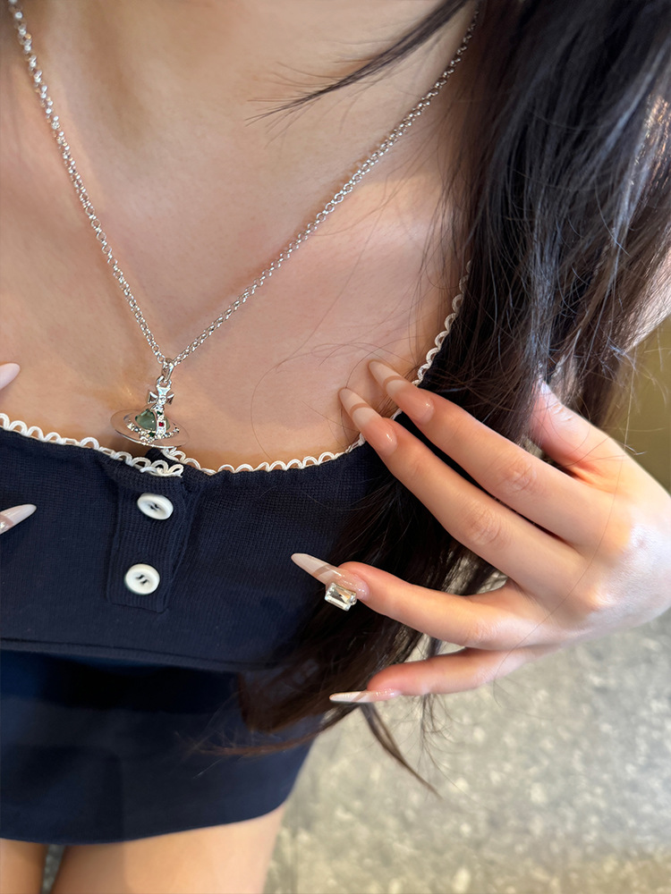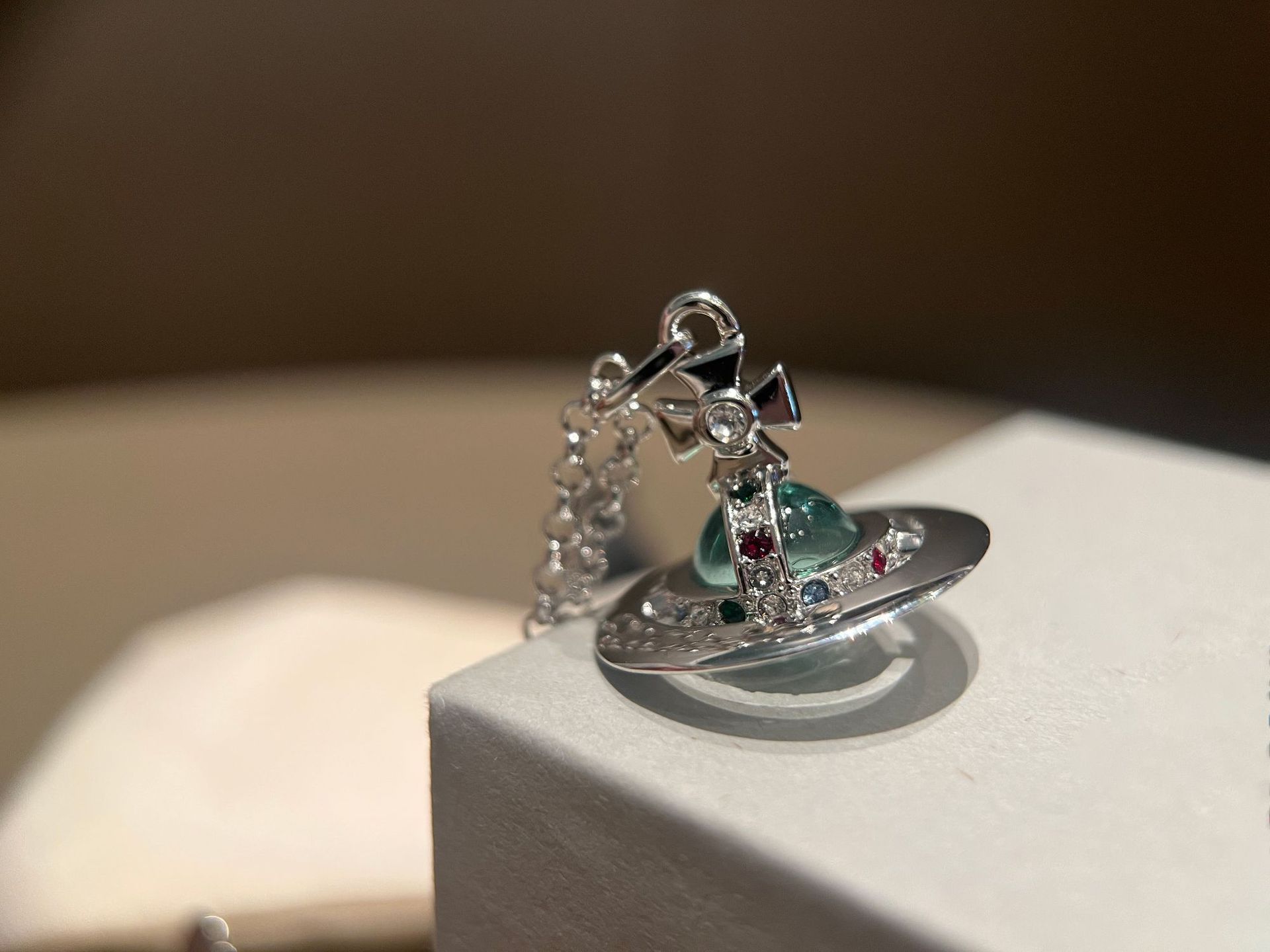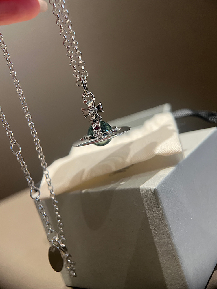 Queen West Medium Mint Green Orb Necklace Three-dimensional Saturn Chain Diamond Planet Flyer Fashion Jewelry