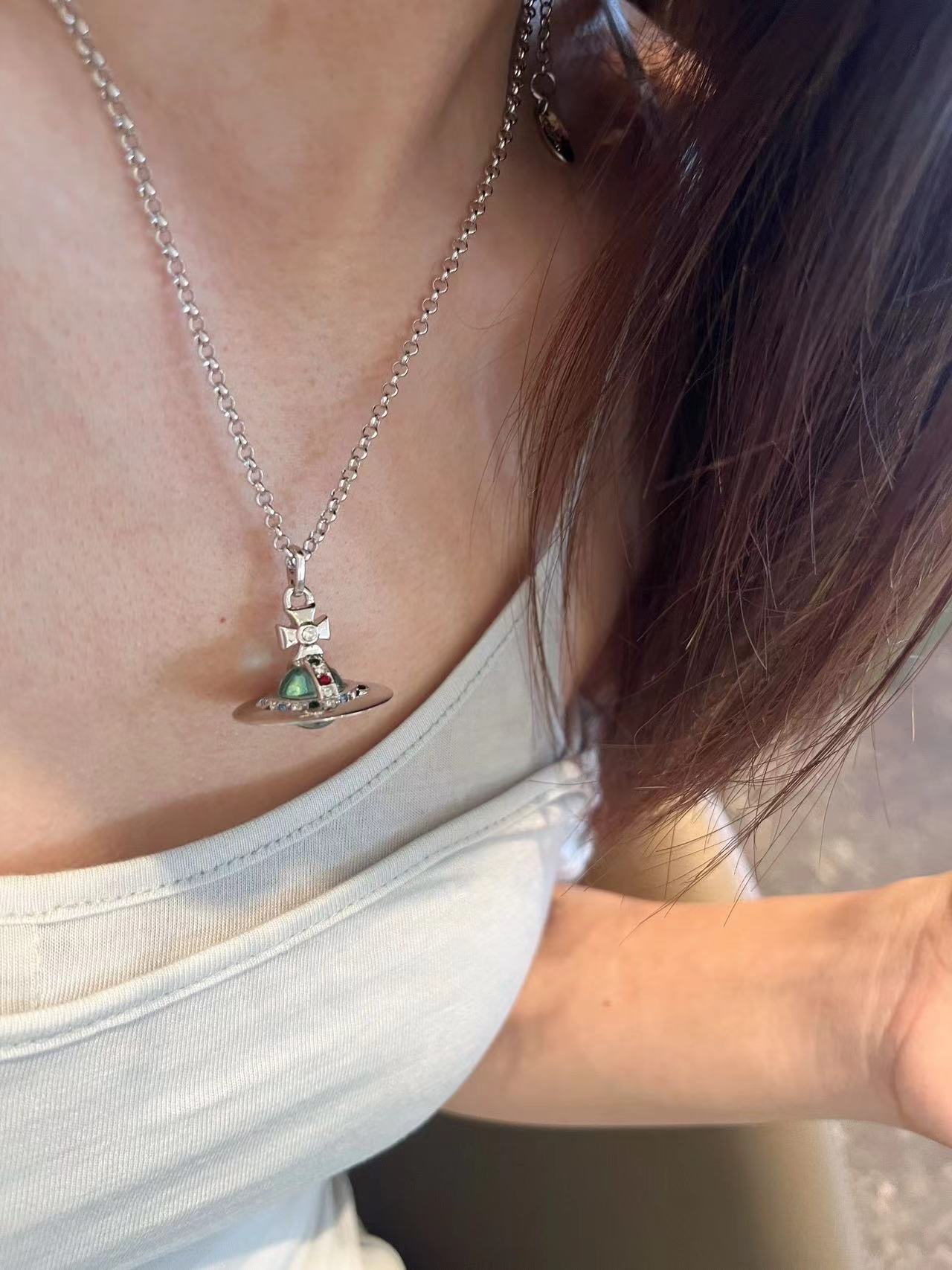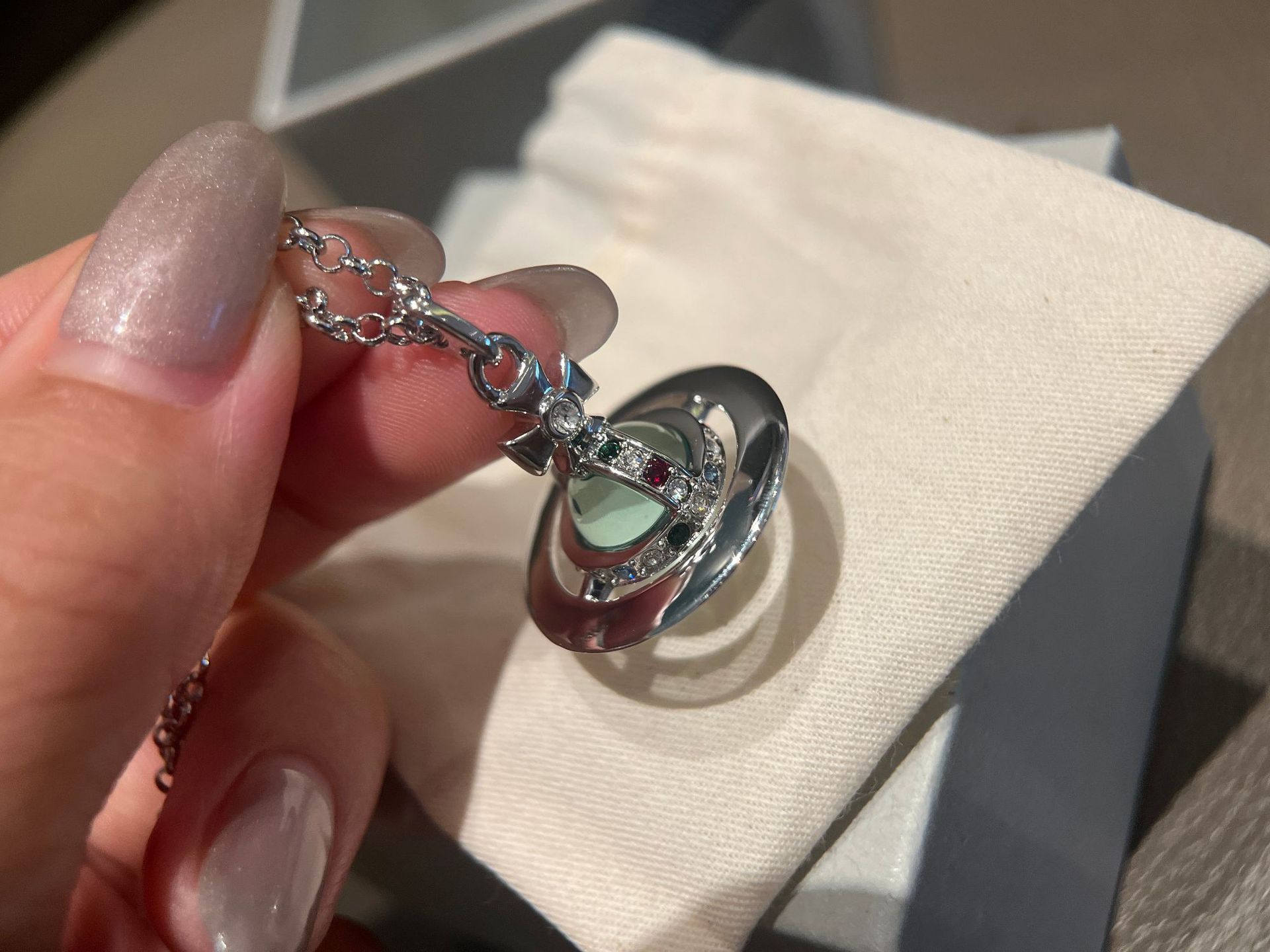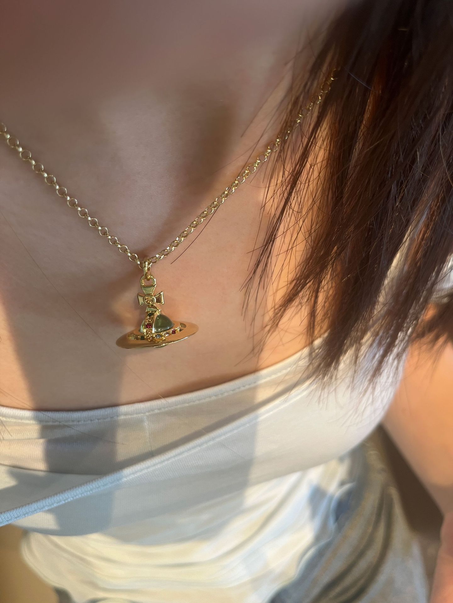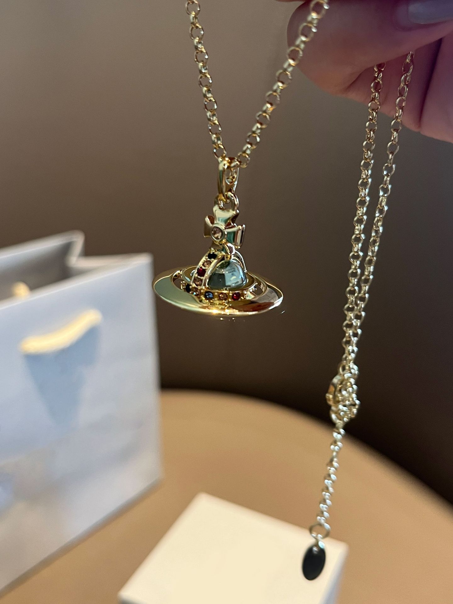 Queen West Medium Mint Green Orb Necklace Three-dimensional Saturn Chain Diamond Planet Flyer Fashion Jewelry
